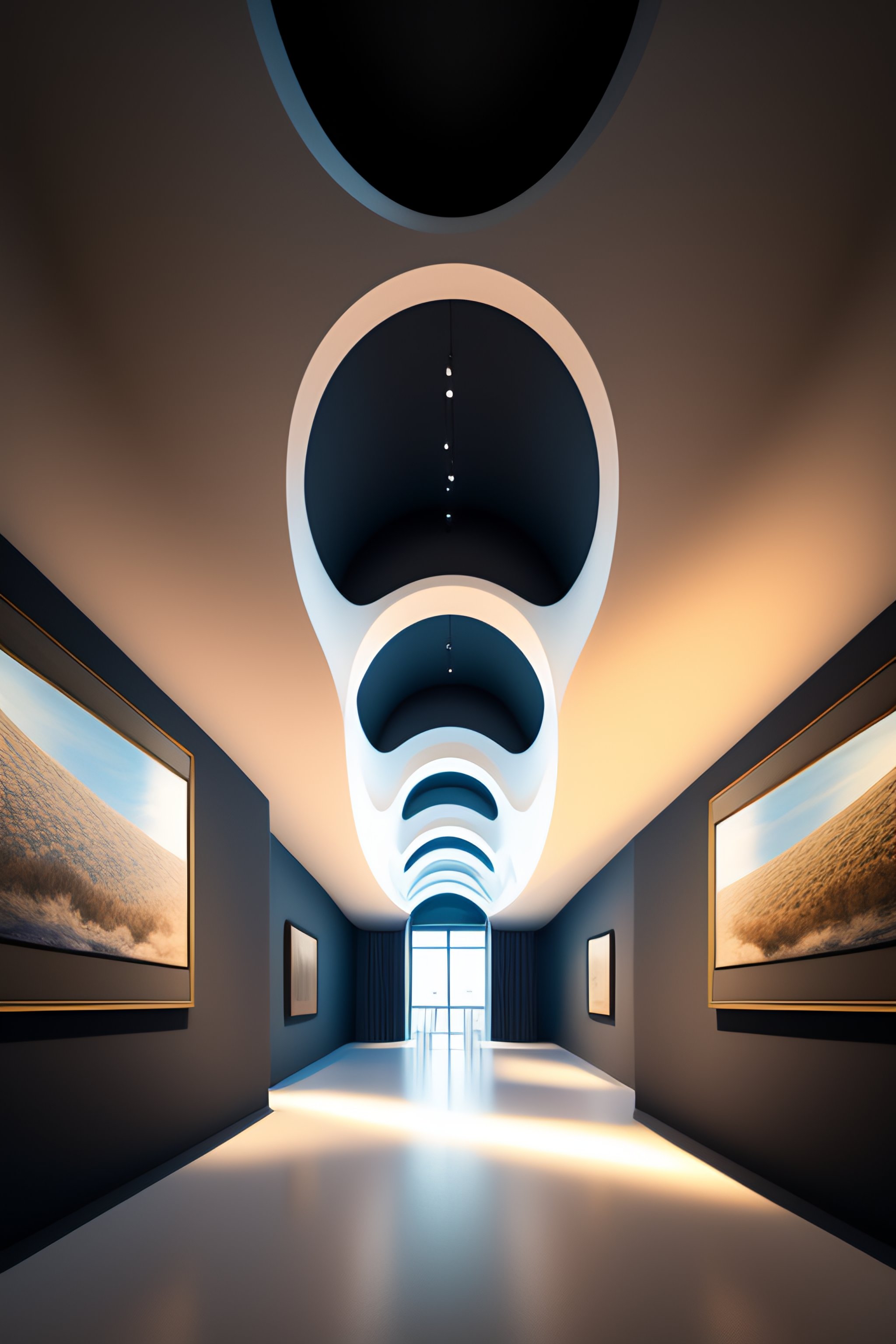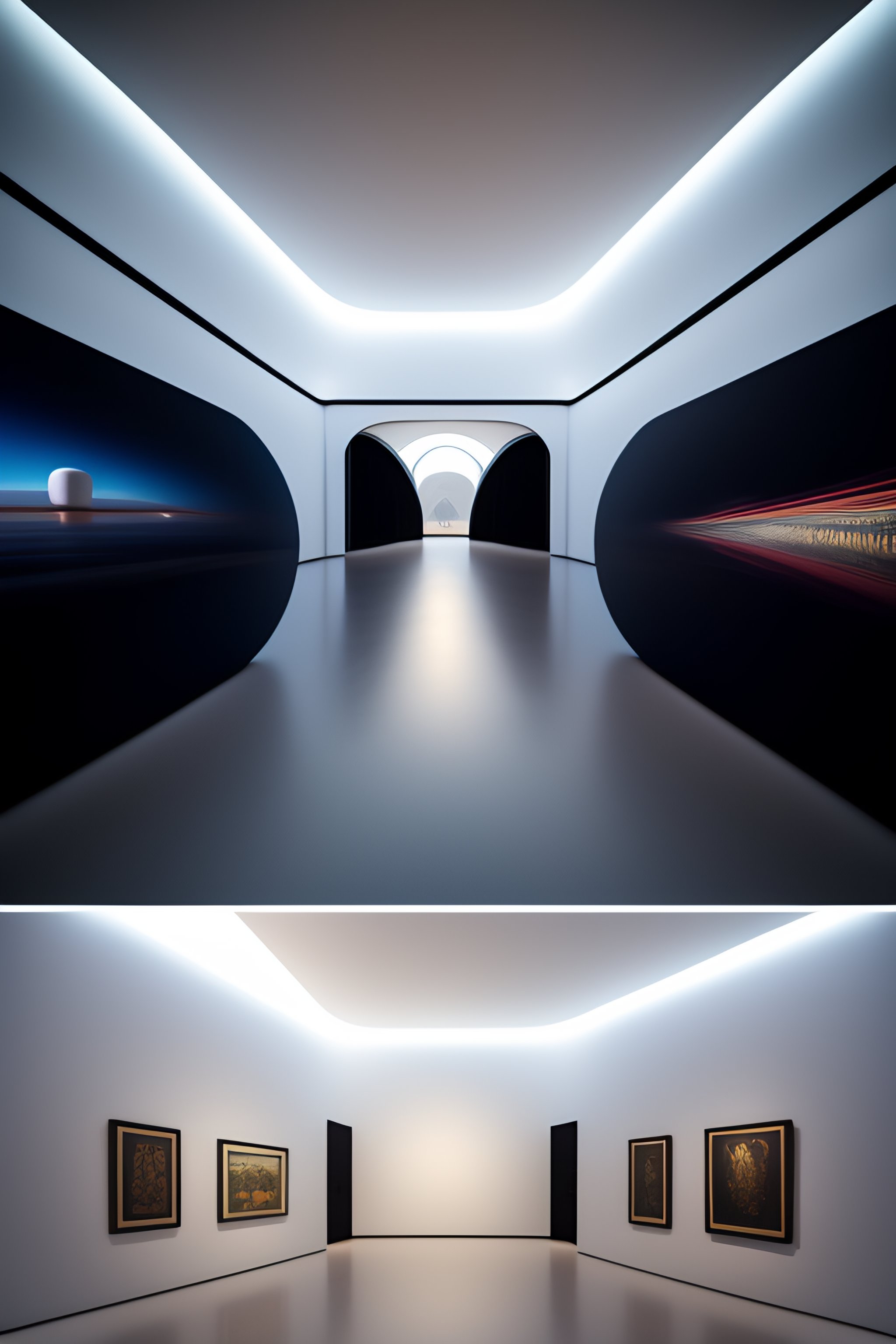 Seamless equirectangular projection of a 360 view inside an art gallery made by zaha hadid