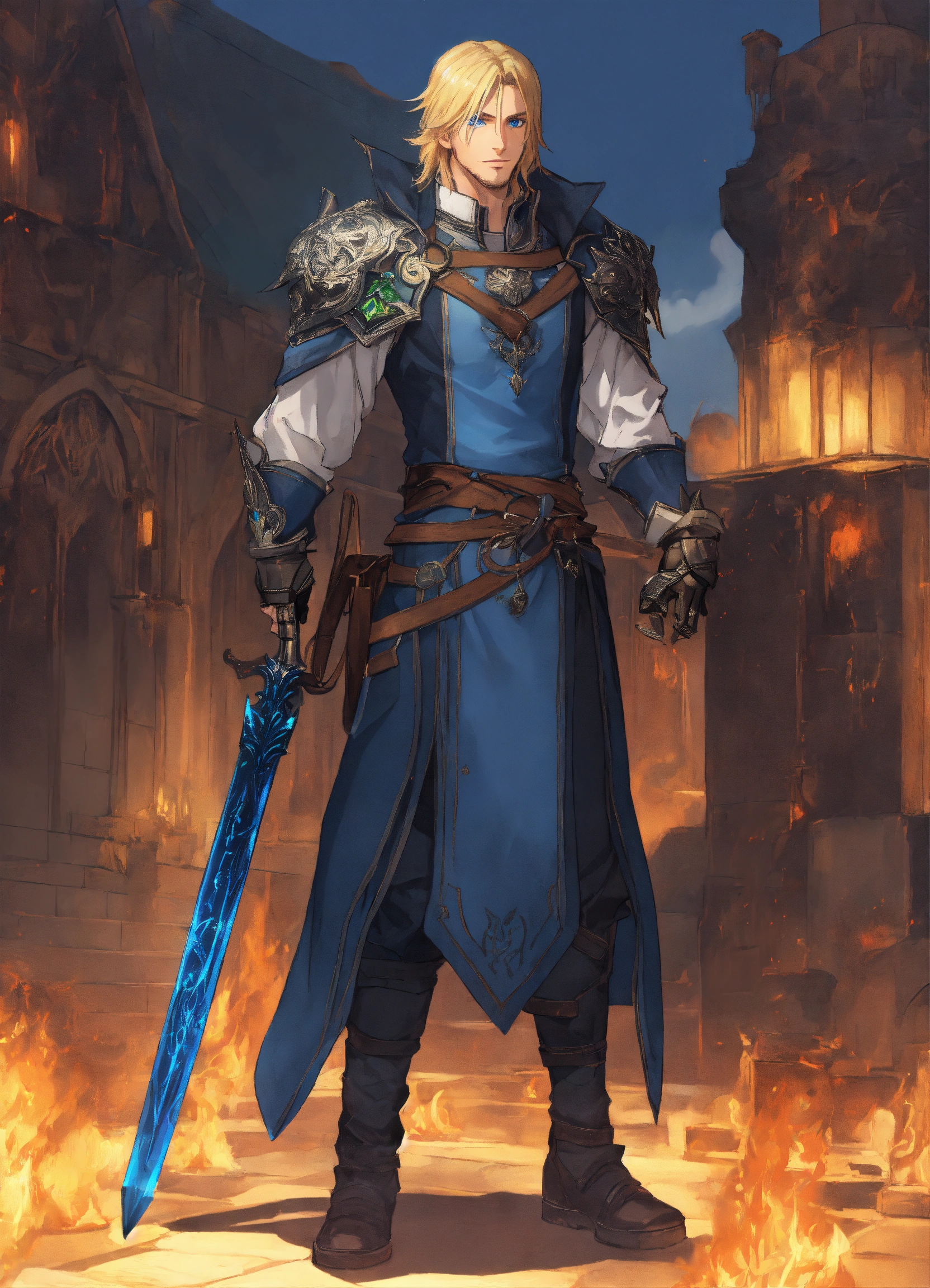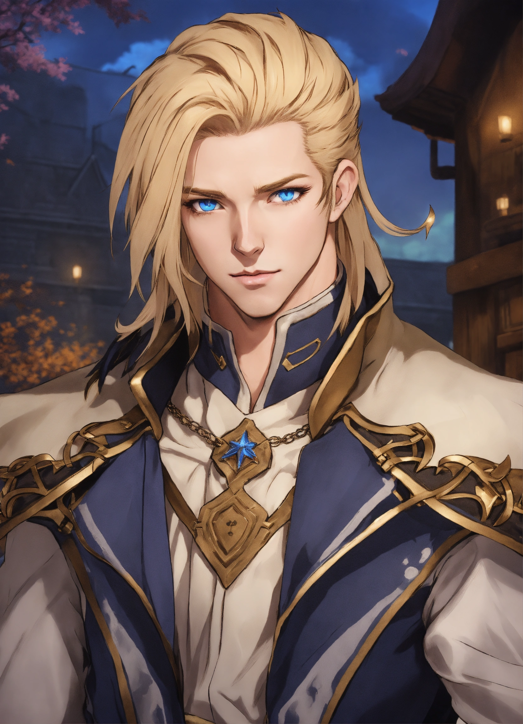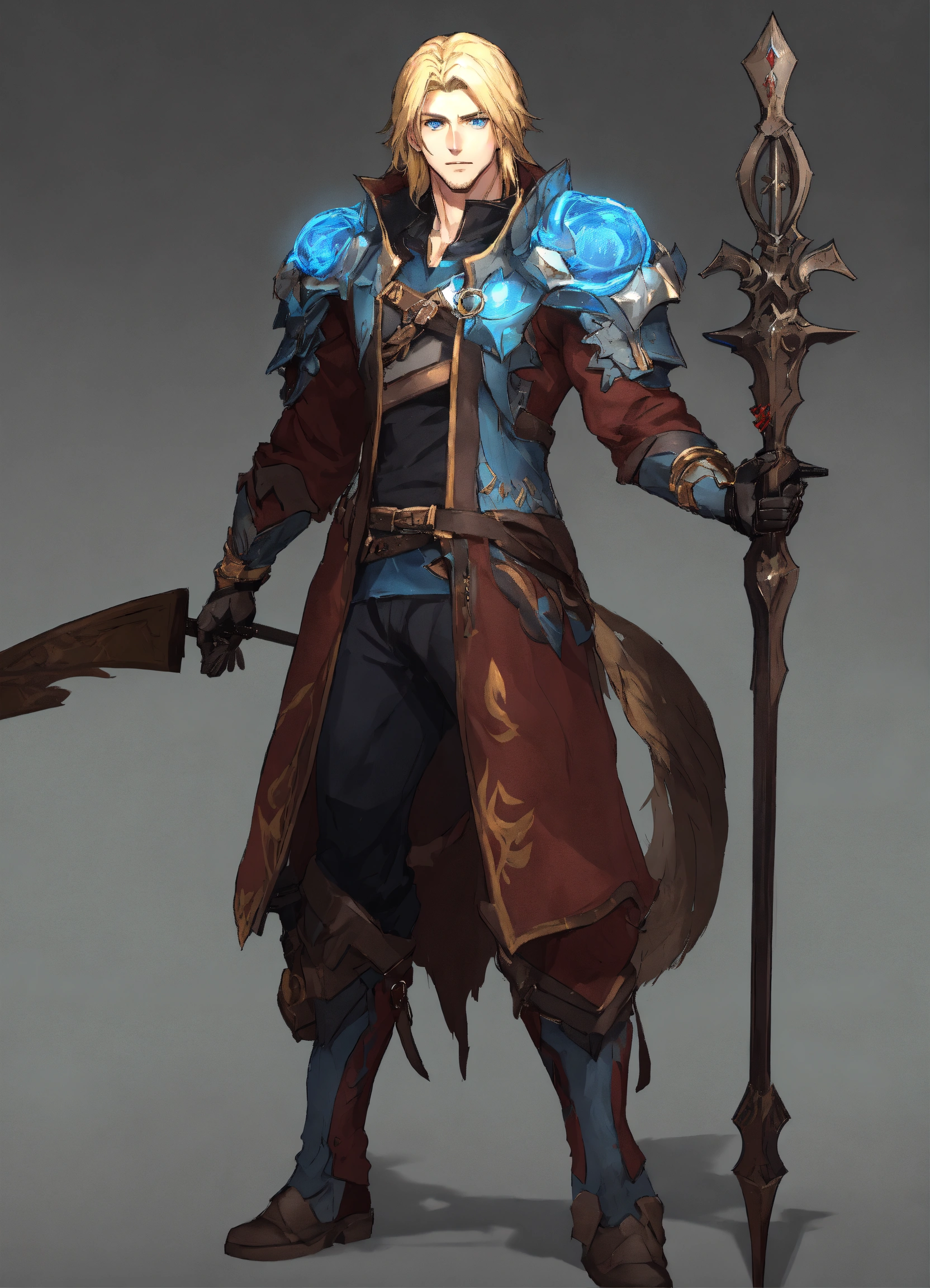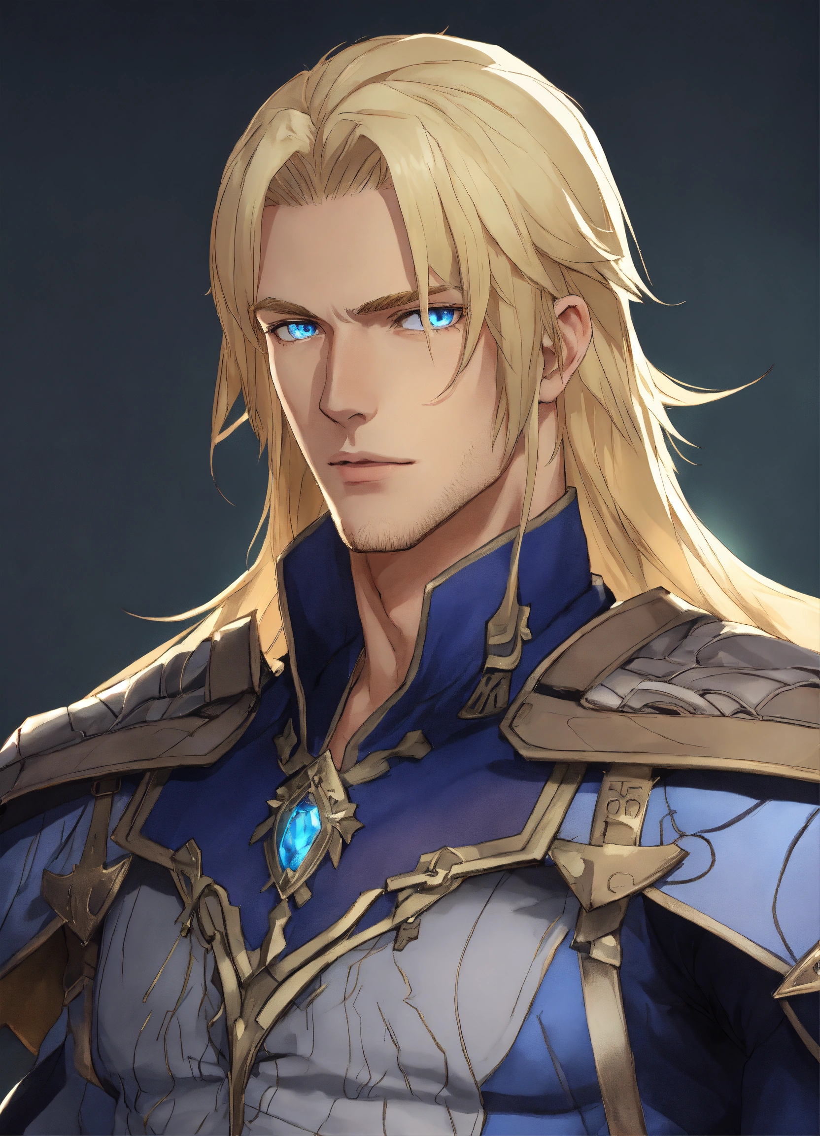 Man, 35 years old, blond, shoulder-length straight hair. blue eyes. athletic build. height 190. necromancer. anime reskin style