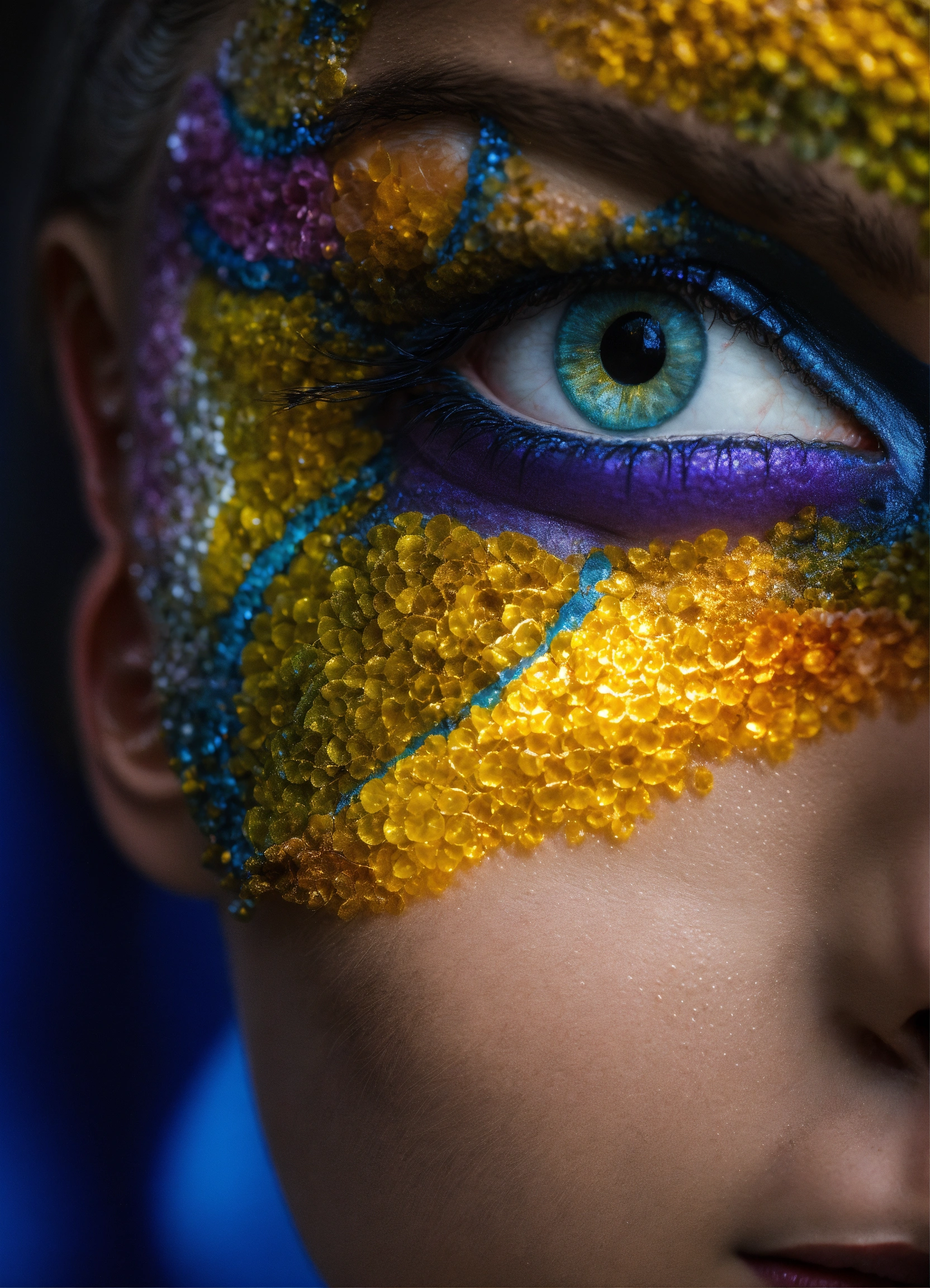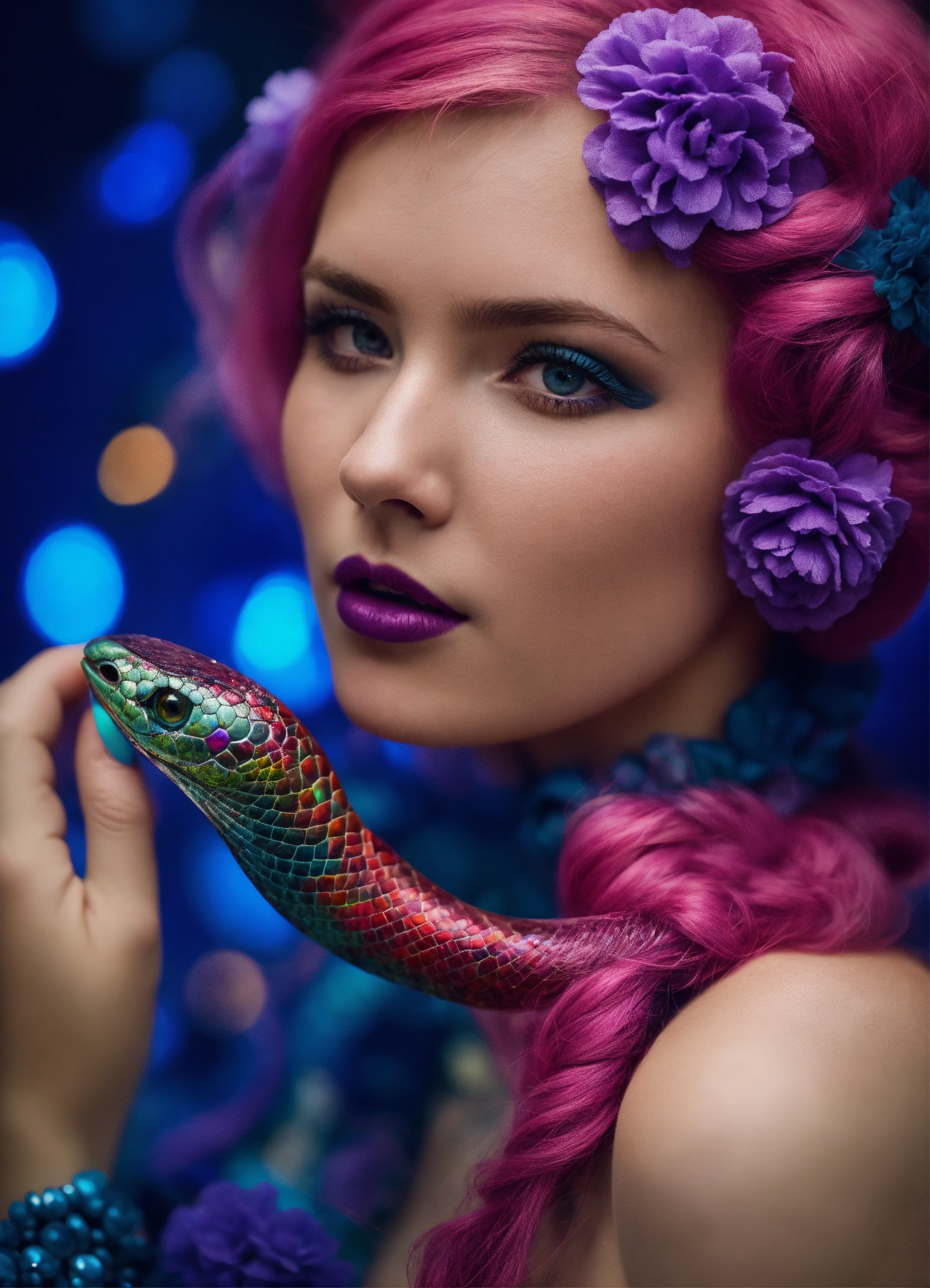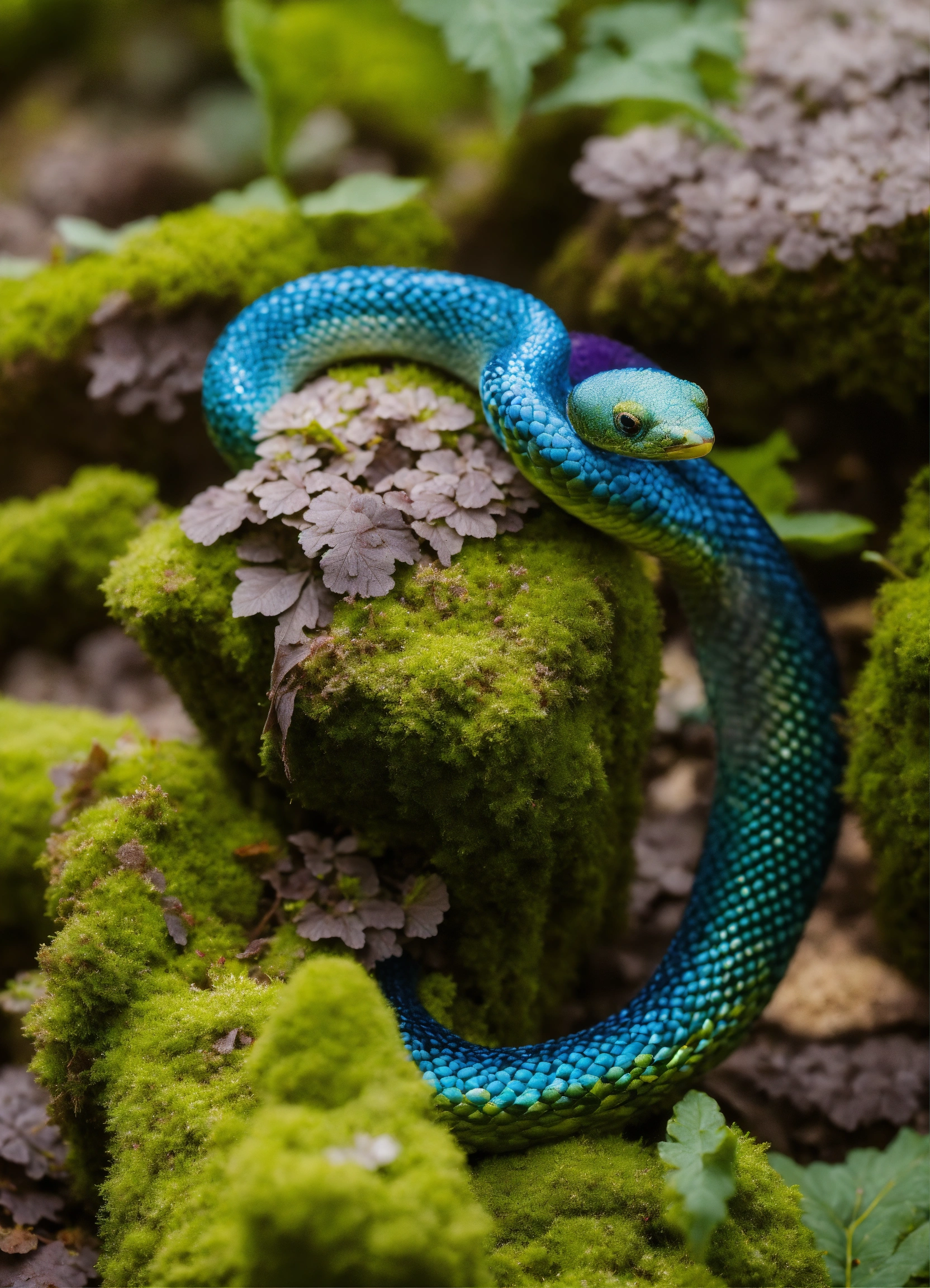 Eine schlange, fantasiewesen. körper in den farben des himmels – violett, blau und tiefem silber. ihr kopf ist klein, aber gut proportioniert, mit einem paar großer, schillernder augenauf ihrer stirn befindet sich ein drittes auge. entlang des körpers befinden sich mehrere fransenartige fortsätze, die helle lichtblitze aussenden können.