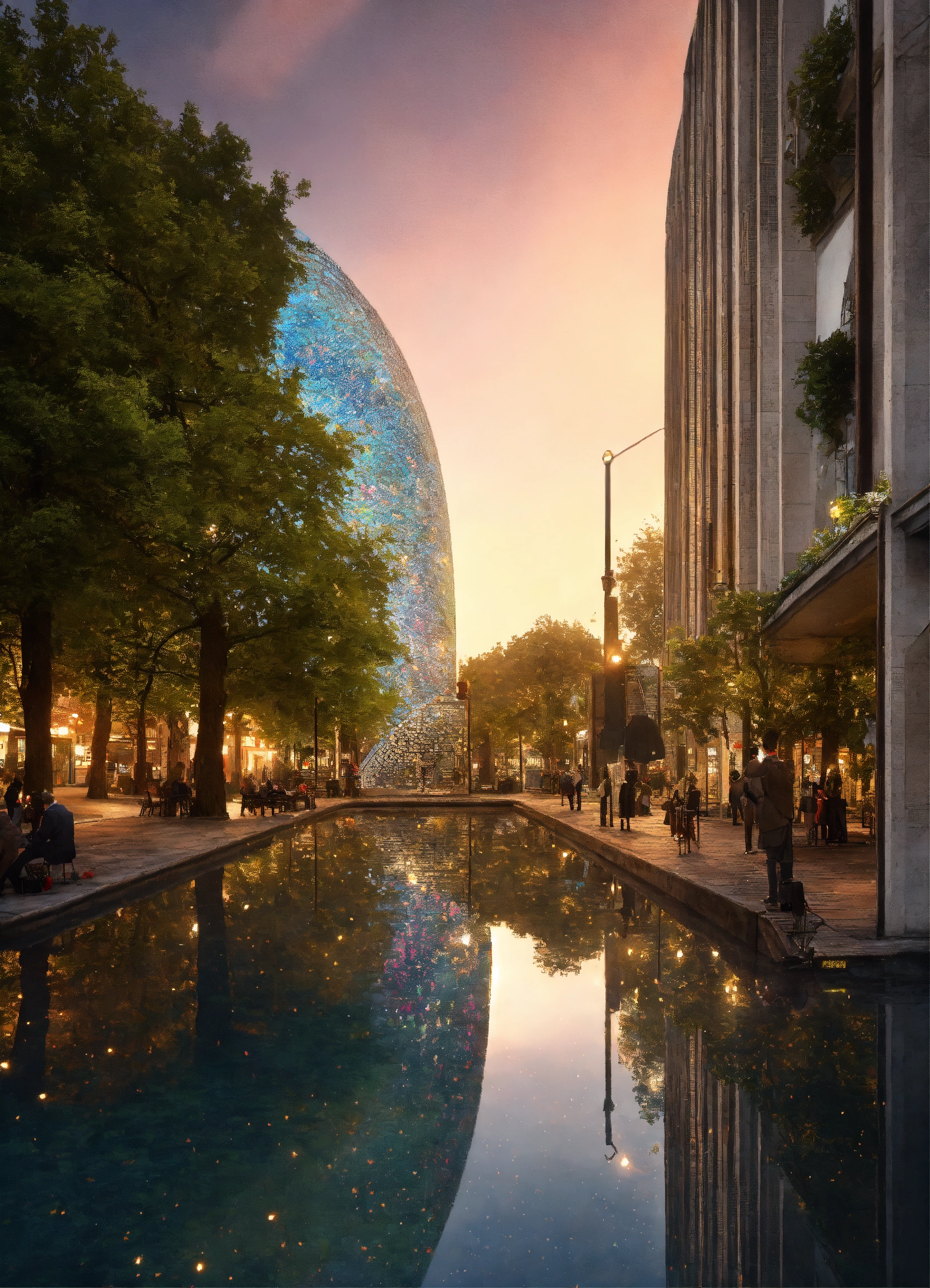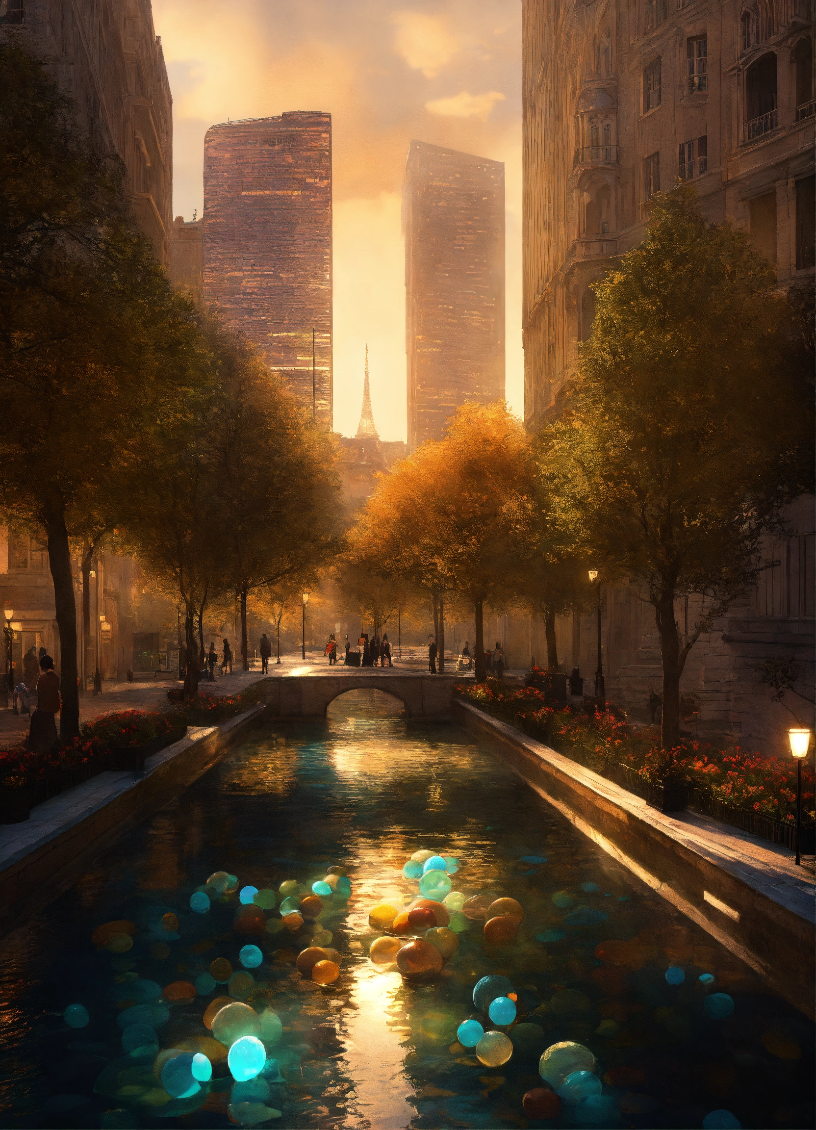 Au centre d'une cité cristalline, des rues pavées d'opales et d'agate guident vers une place centrale où une fontaine d'eau pure chante doucement. la figure d'une personne se déplace à travers la ville, chaque coin et recoin reflétant des facettes de ses rêves, désirs et souvenirs. les bâtiments, sculptés de gemmes chatoyantes, vibrent avec des mélodies qui sont en harmonie parfaite avec le rythme de son cœur. des fenêtres ouvertes laissent échapper des notes musicales, créant une symphonie urbaine qui résonne avec sa propre mélodie intérieure. tout ici est en harmonie, une ode visuelle et sonore à l'essence de son être.
