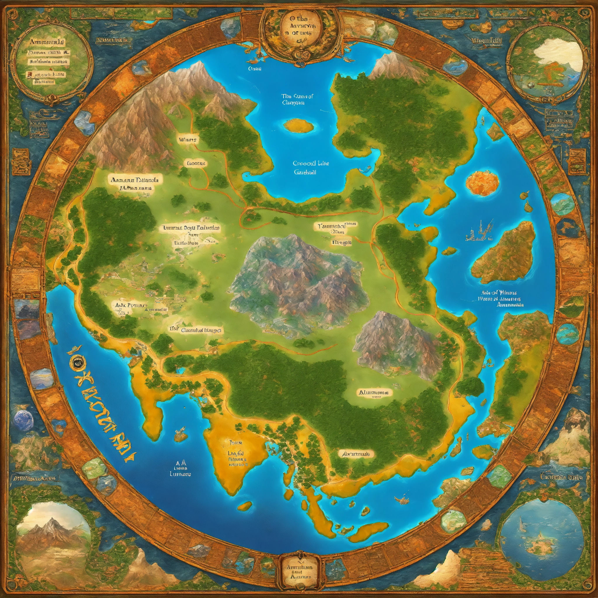 Create a world map like google maps amaris, a diverse planet, is home to advanced alien species, the amaridians. it has 4 continents nolaris with dense forests & mountains, sularis with plains & rivers, emaris with deserts & rock formations, and wolaris with rainforests & coastlines. oceans teeming with life surround the continents. notable features include the amanar river, luminescent lake, and various mountain ranges. amaridian cities blend with nature, and unique locations like the temple of knowledge, crystal caves, and garden of harmony hold cultural significance.