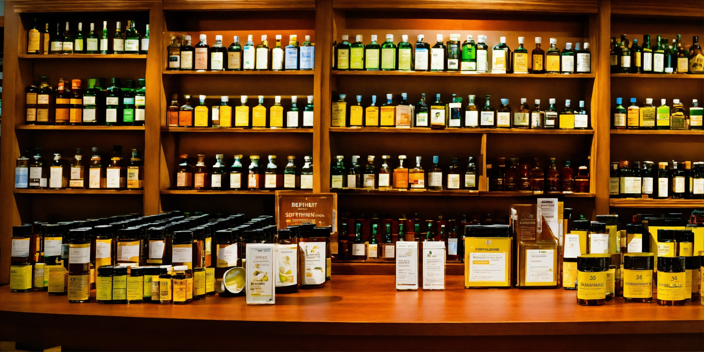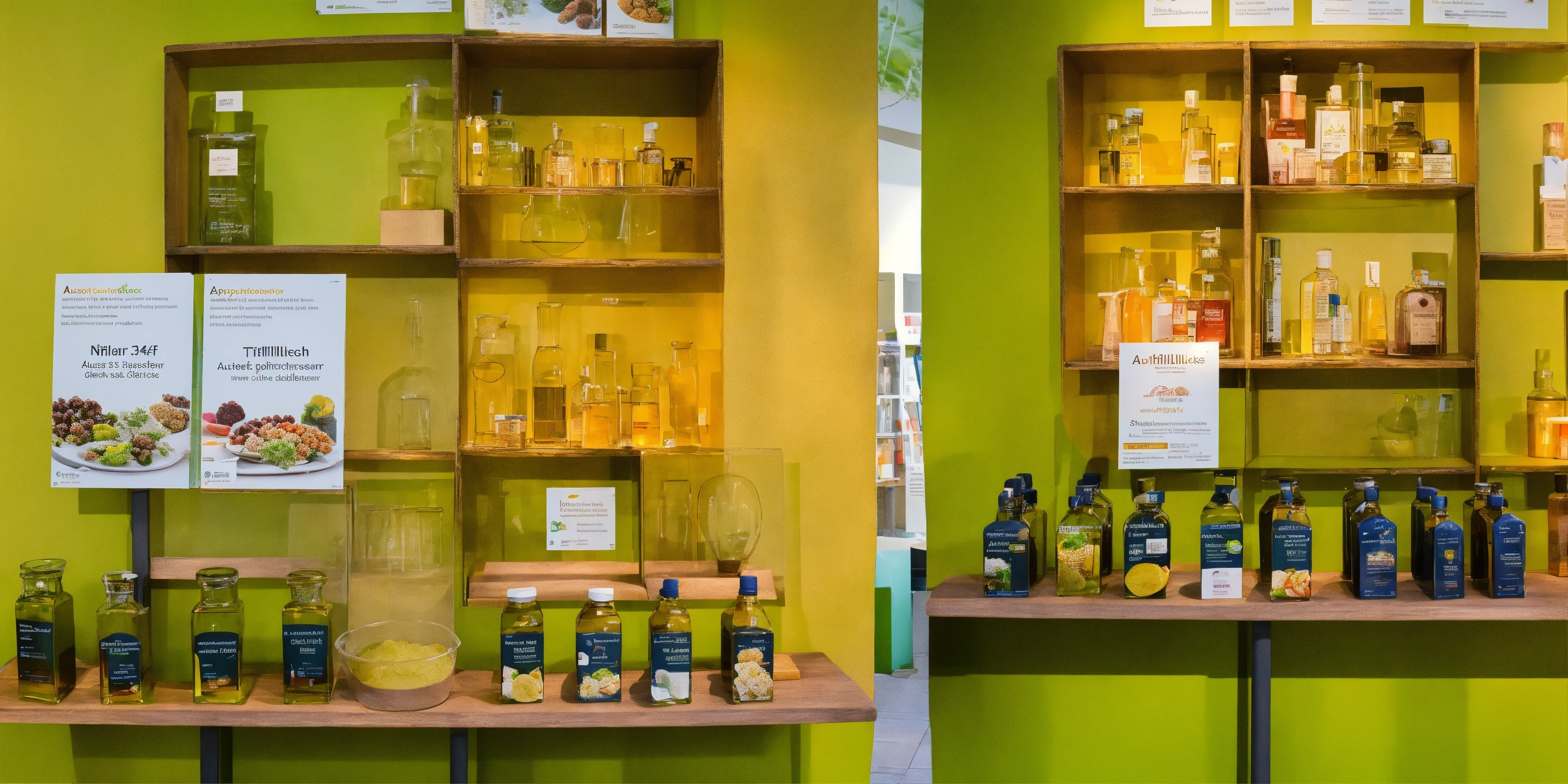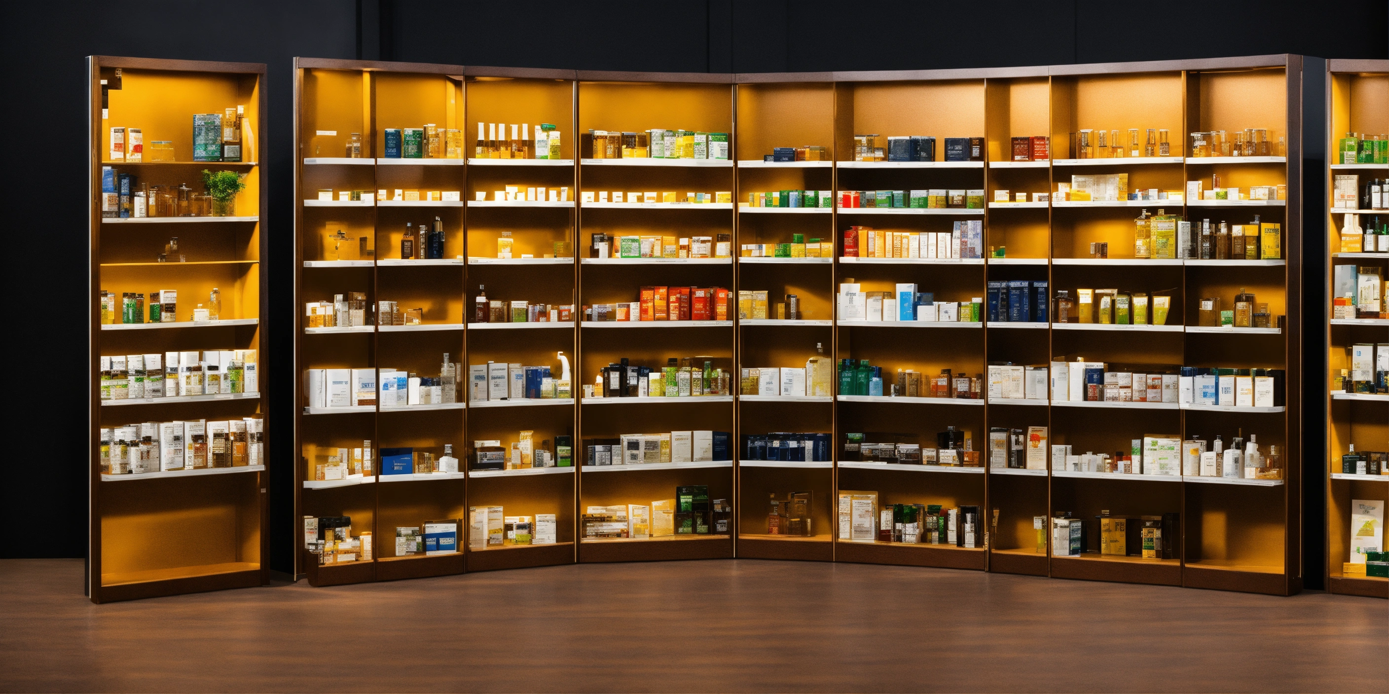 Ausstellungsstand steht in der apotheke auf dem tisch
