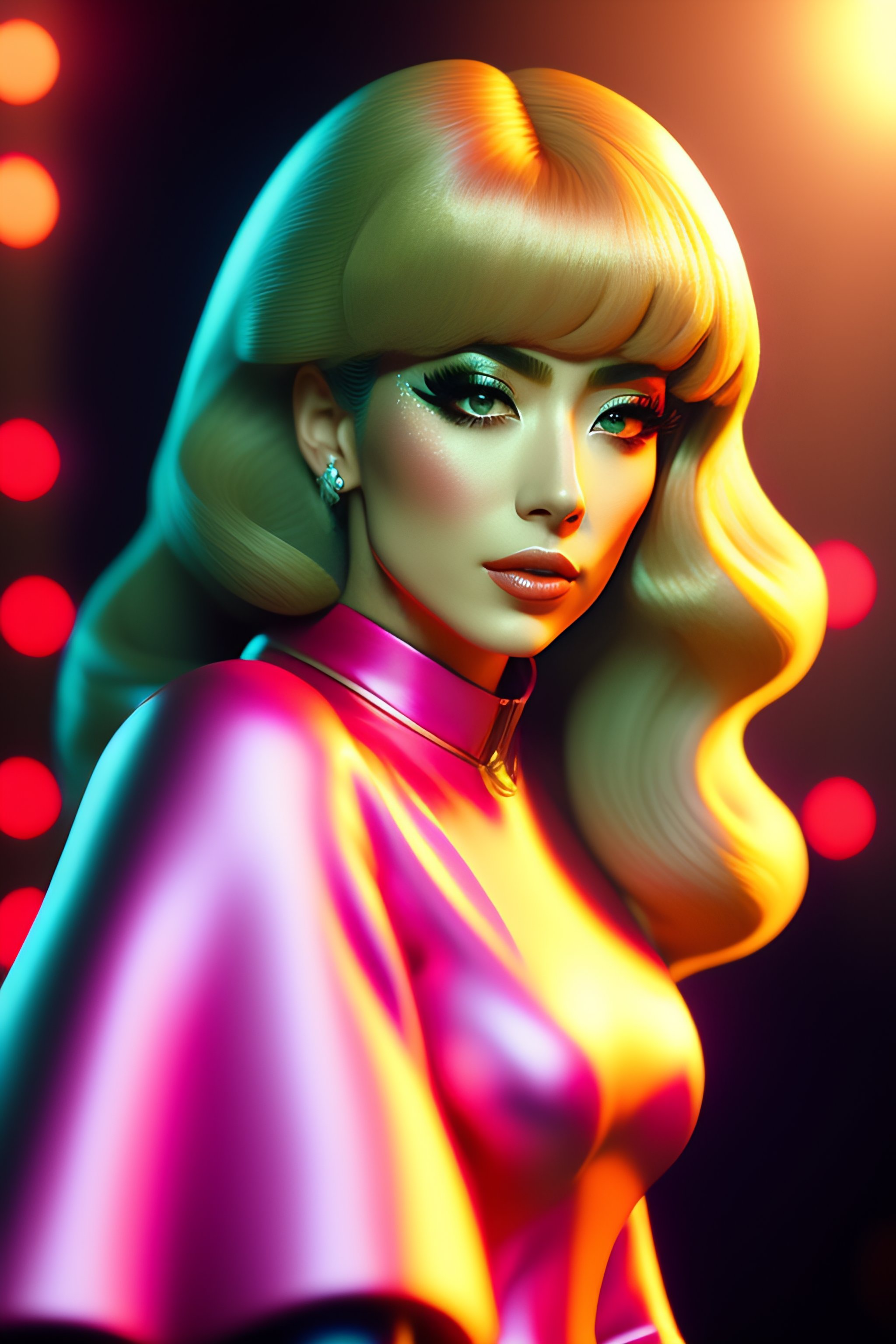 Vintage 90's anime style, lady gaga blender 4k nikon 35mm hyper realistic cell shaded volumetric lighting