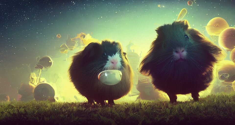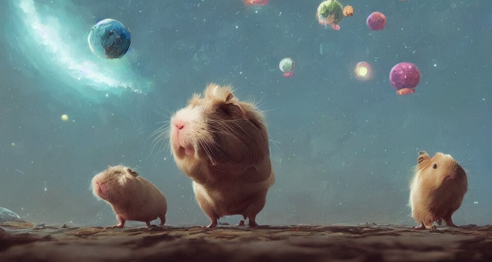 Guineapig's ultra realistic detailed floating in universe suits floating in space, nubela, warmhole, beautiful stars, 4 k, 8 k, by simon stalenhag, frank frazetta, greg rutkowski, beeple, yoko taro, christian macnevin, beeple, wlop and krenz cushart, epic fantasy character art, volumetric outdoor lighting, midday, high fantasy, cgsociety, cheerful colours, full length, exquisite detail, post @ - processing, masterpiece, cinematic