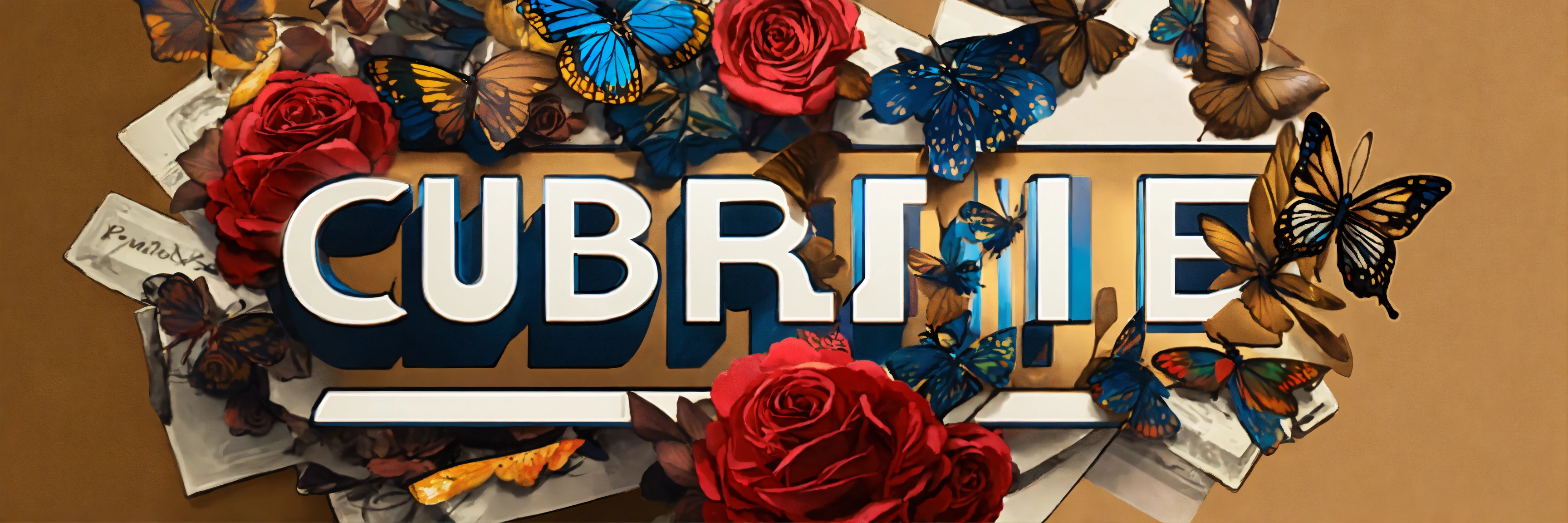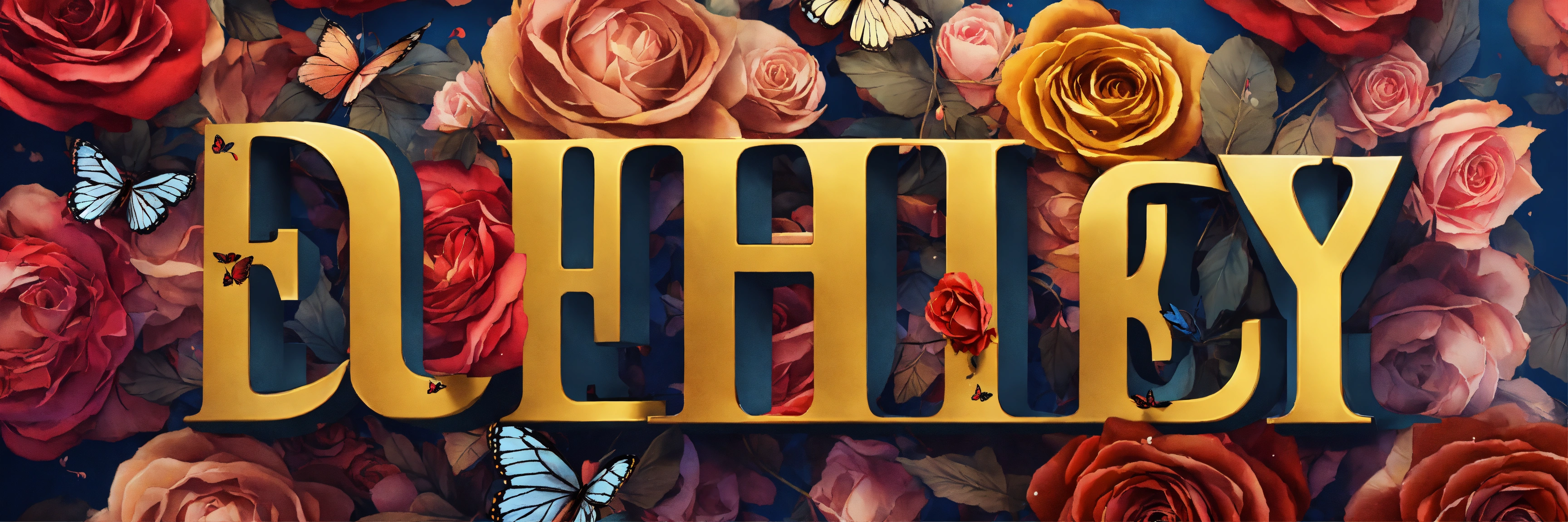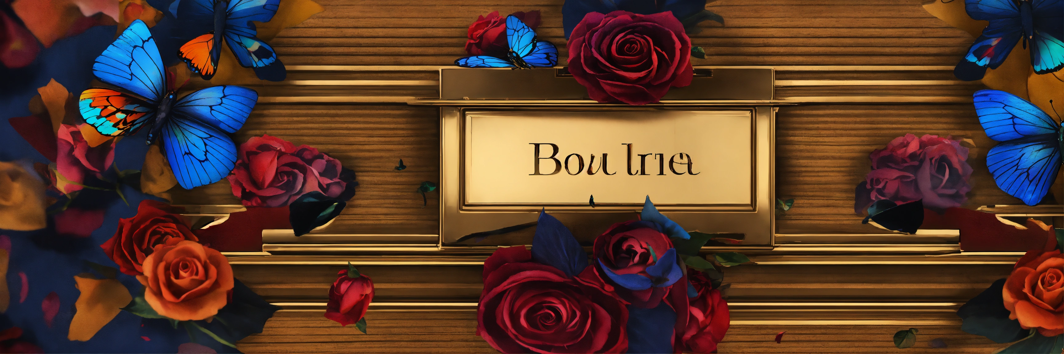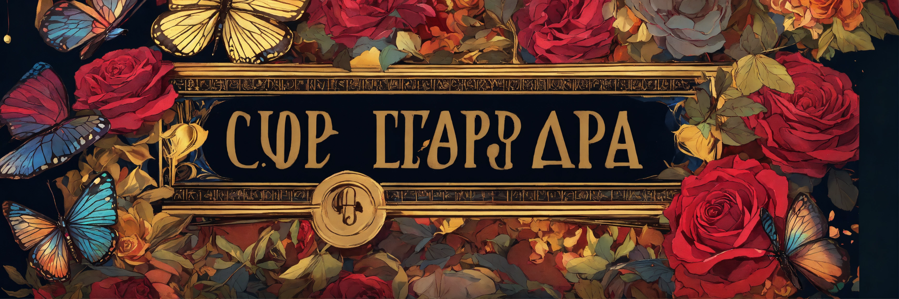 Text an abstract expensive luxury bespoke bowtie, lots ink dripping, surrealistic, surrounded by butterflies and roses. cubist style, cinematic, centered on top of pile of cigars