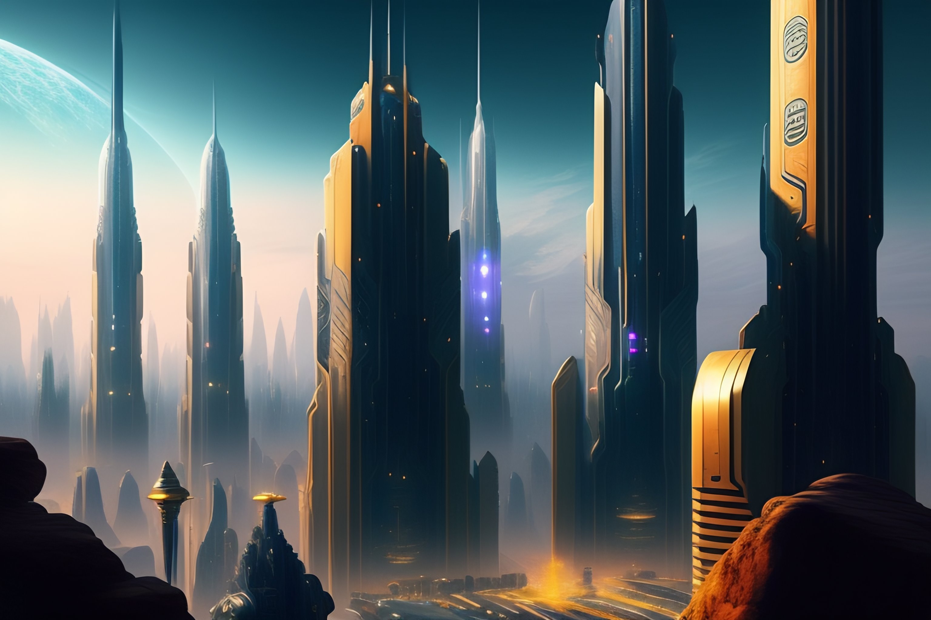 A futuristic city with the style of the fifth element