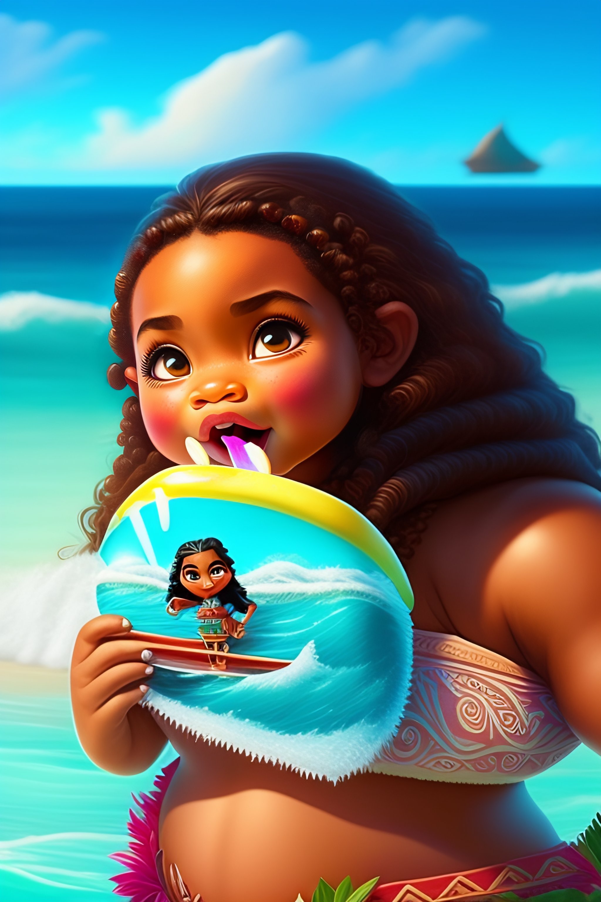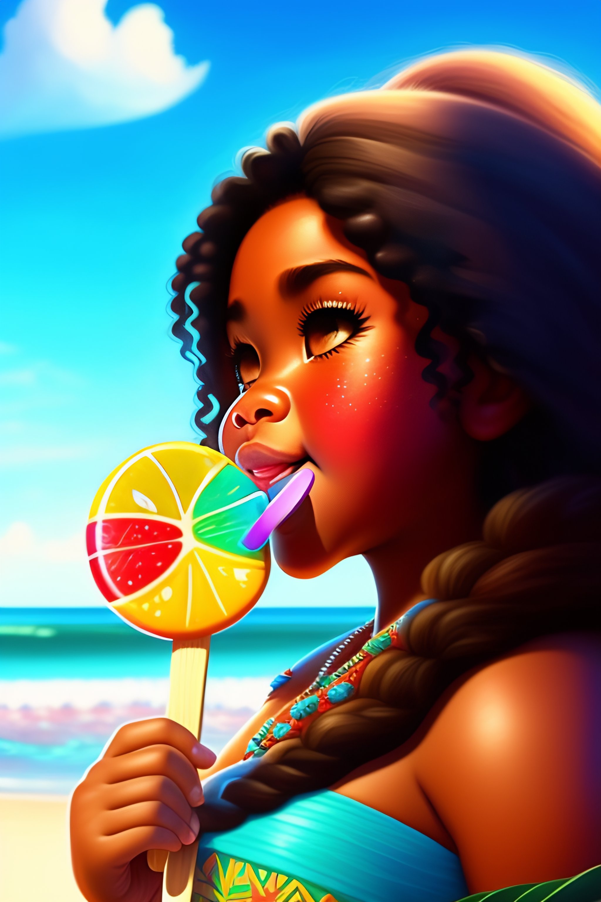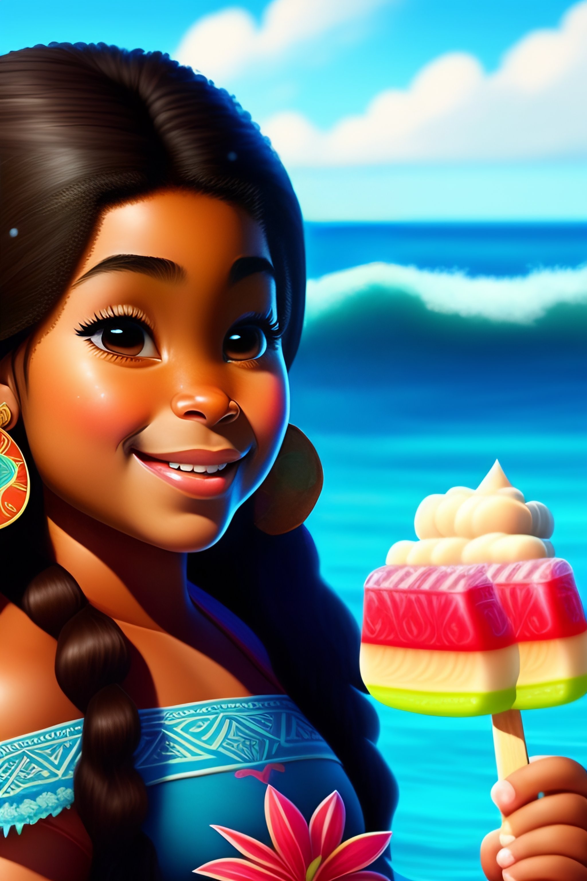 ((moana eating popsicles with maui)) art style of disney the movie moana ocean in the background