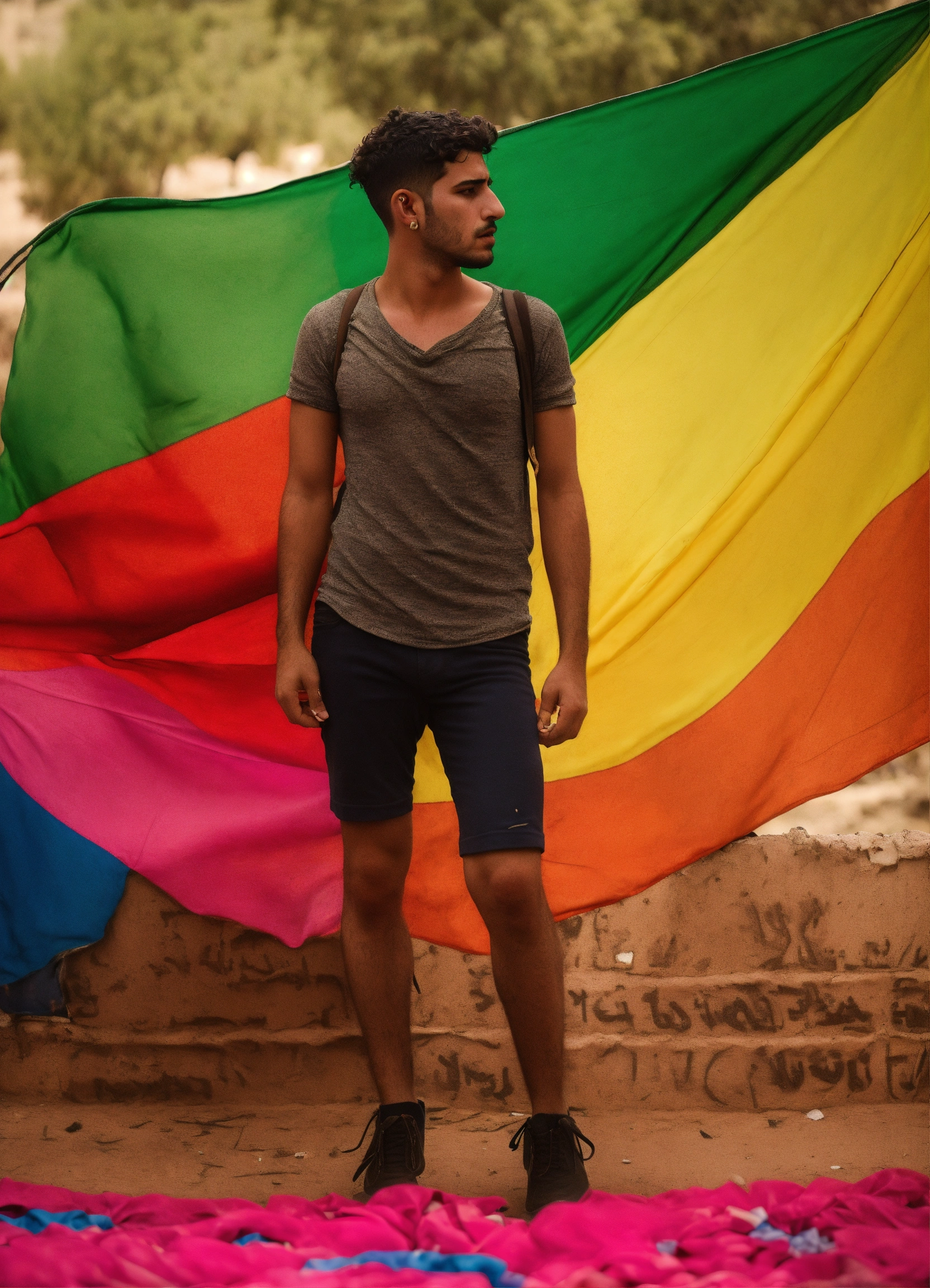 "create an evocative and emotionally charged image that conveys the impact of the gaza-israel conflict on lgbtq individuals in palestine. use powerful symbolism to depict the messages and emotions shared on platforms like 'queering the map' as a result of the ongoing violence. incorporate visual elements that capture the profound loss, resilience, and the urgent need for global attention to such conflicts."