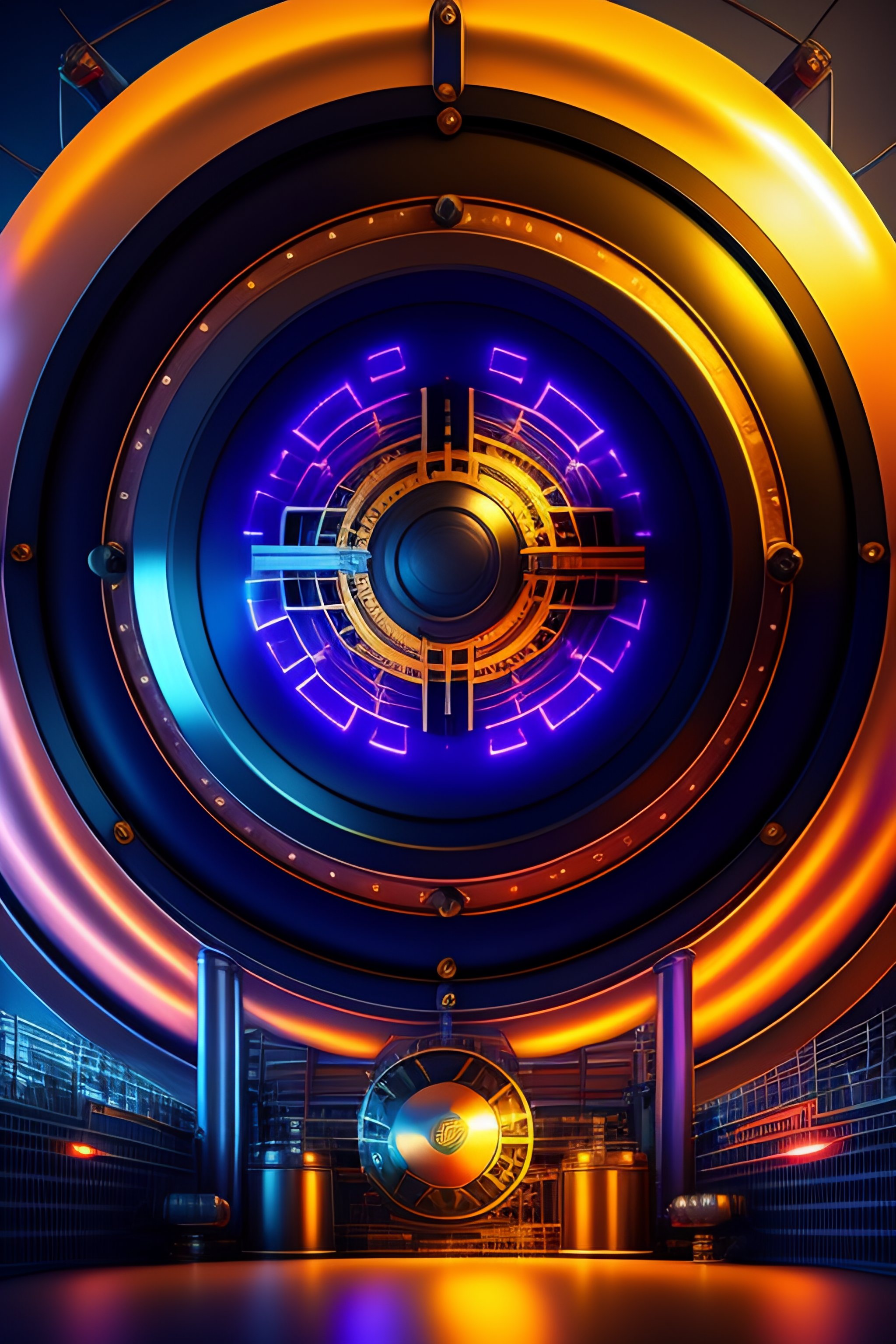 Detailed cyclotron particle accelerator, cern. 1 9 2 0 s style, retrofuturistic, metropolis artwork, particle accelerator, cern. round generator beam, moebius, brom, ian miller, moody vibrant colors, 4 k