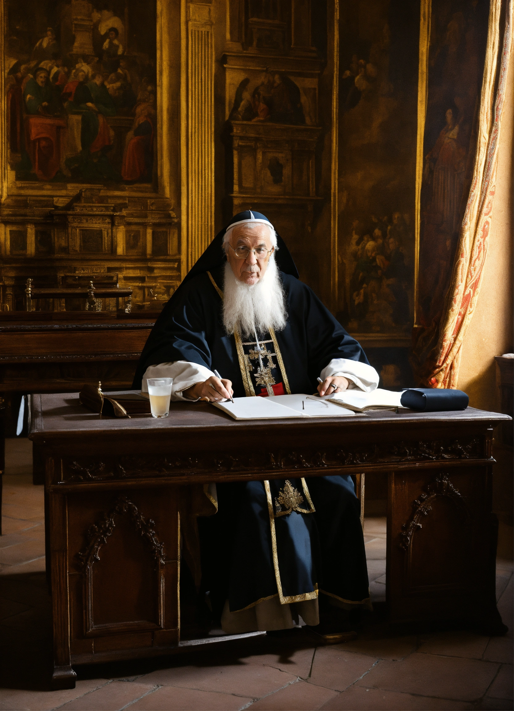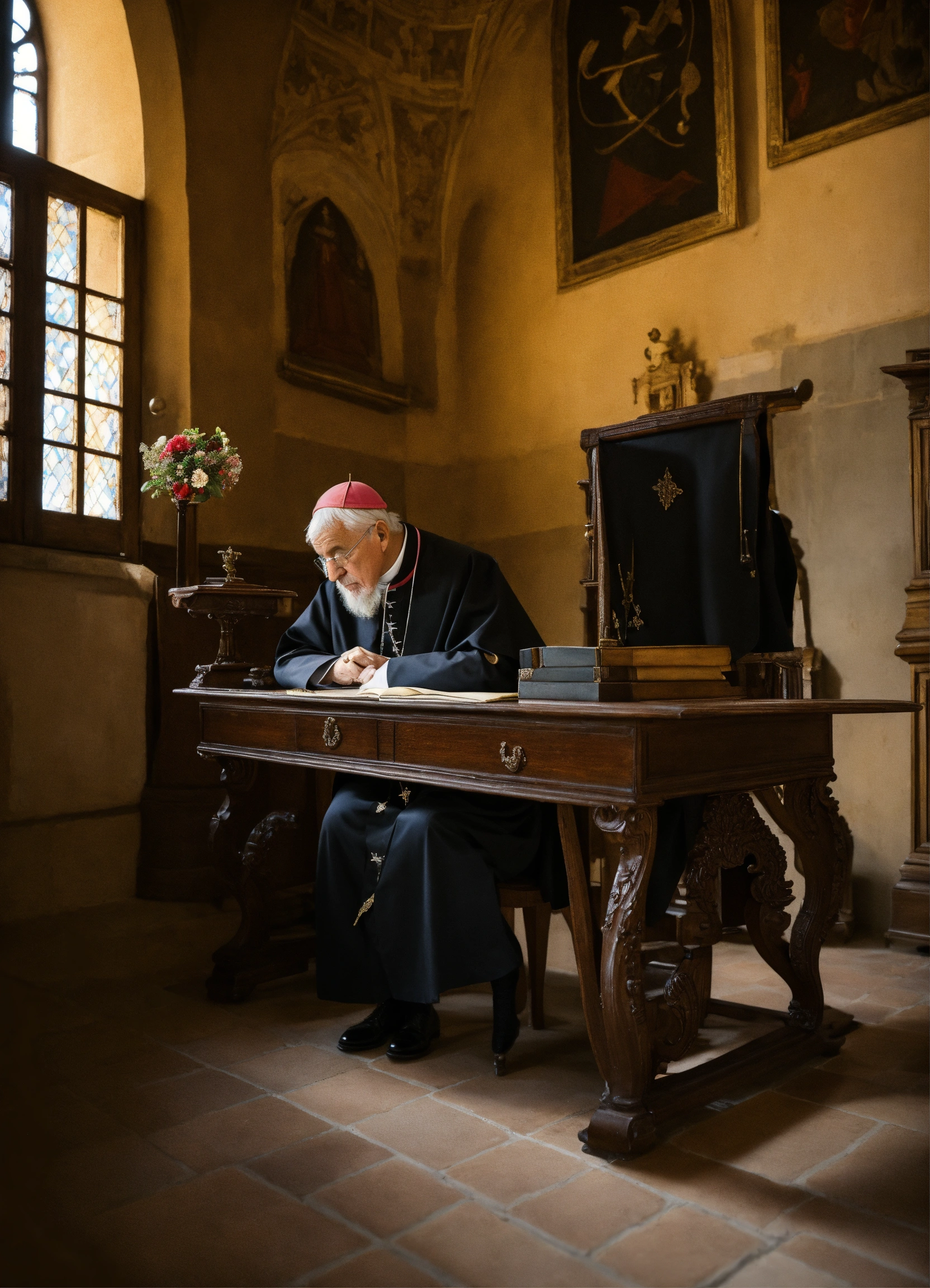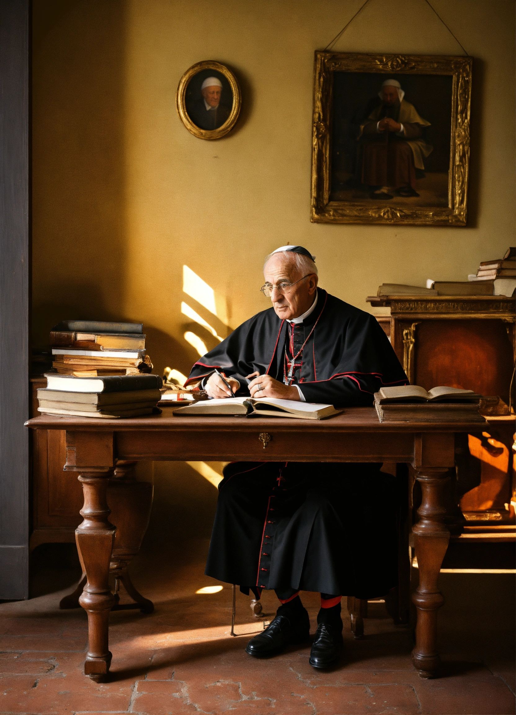 Le professeur de la casa del pape est assis sur un bureau ancien