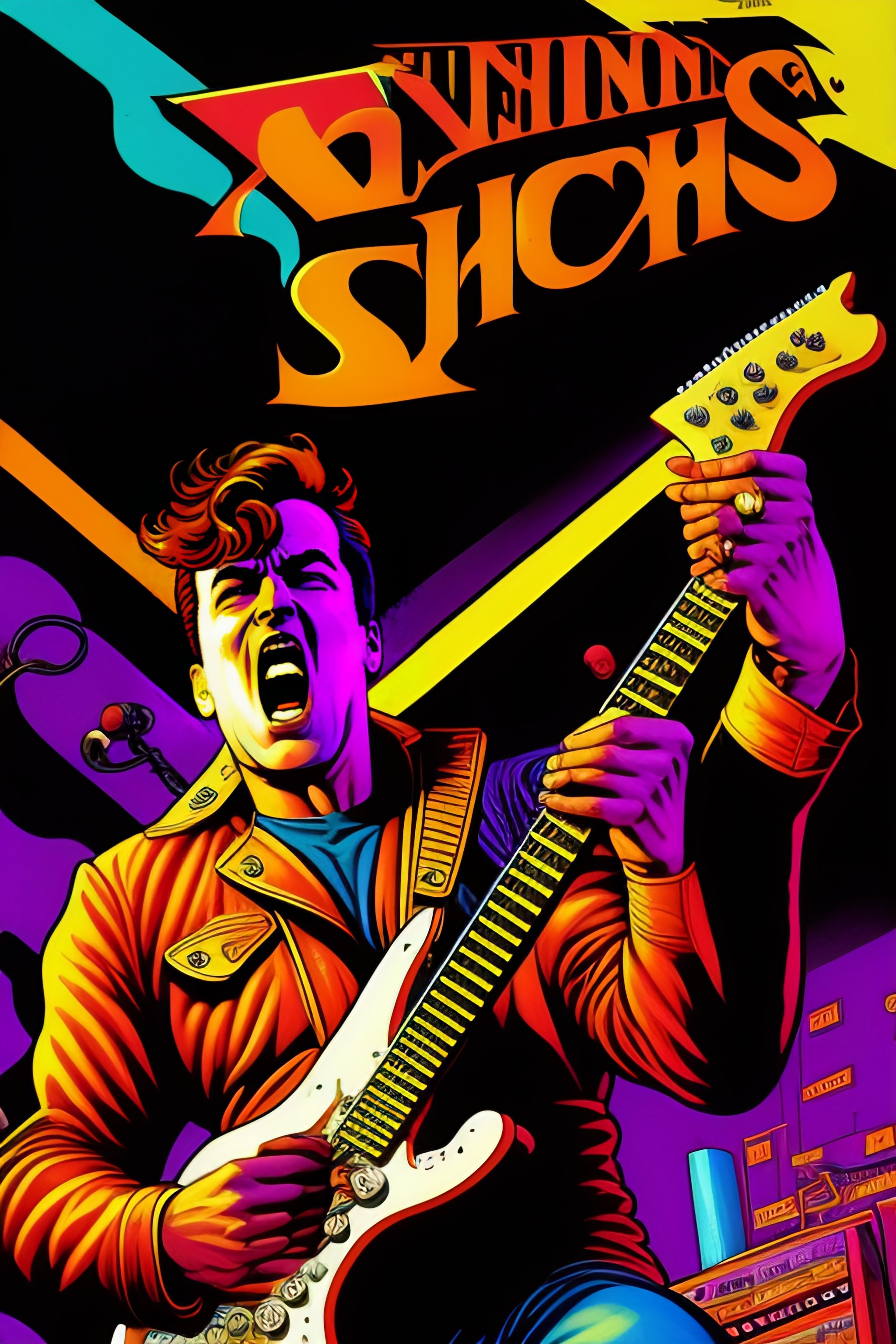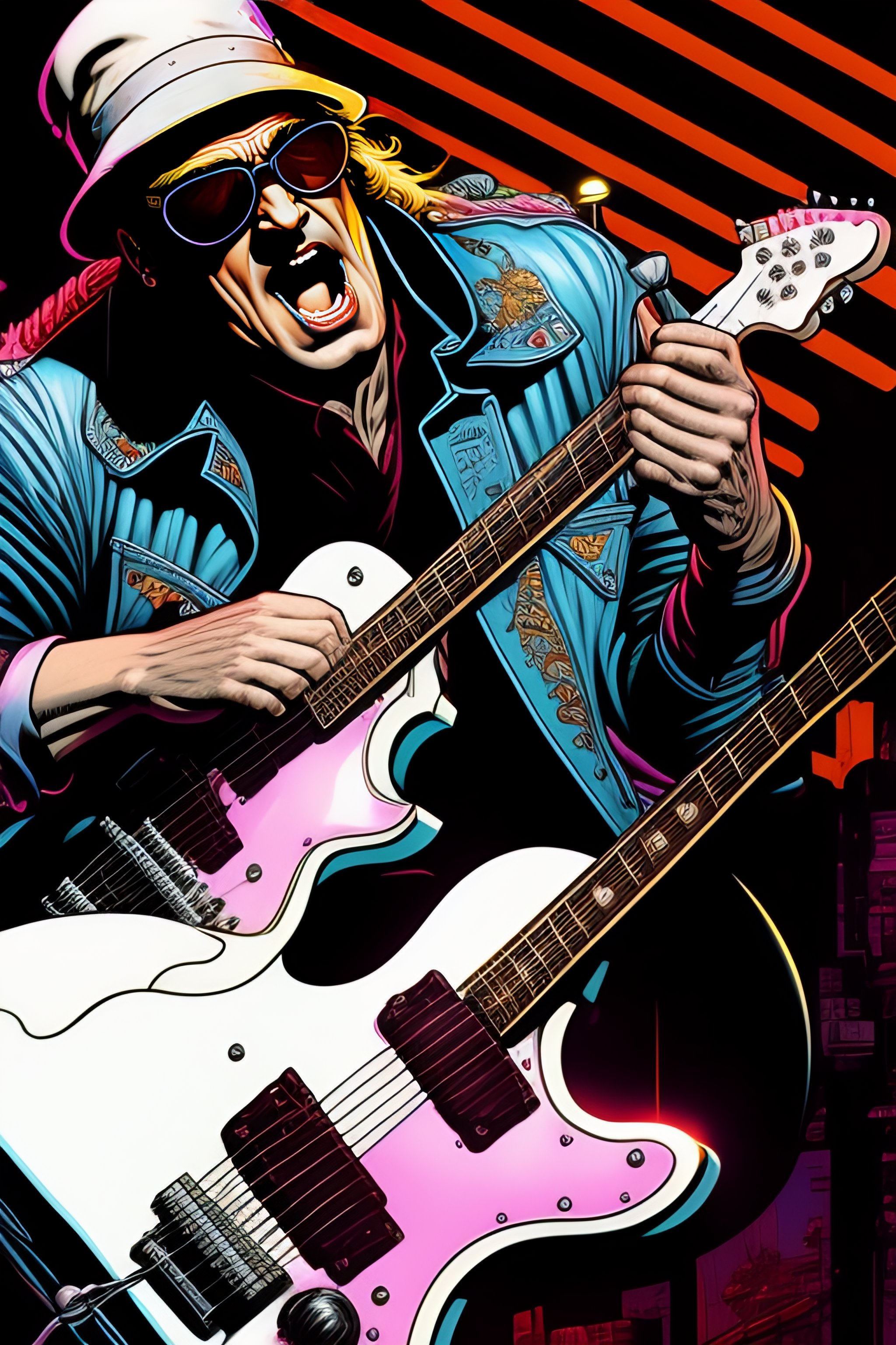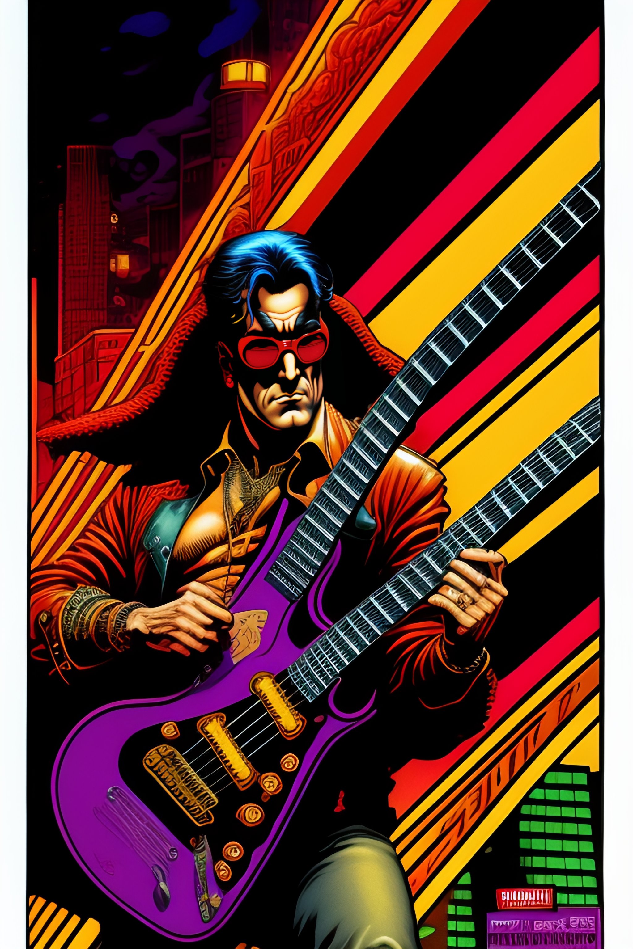 Bleeding fingers playing electric guitar, in the style of 90's comic book art, super detailed, accurate illustration, clean lines, by bernie wrightson, steve ditko, dave gibbons