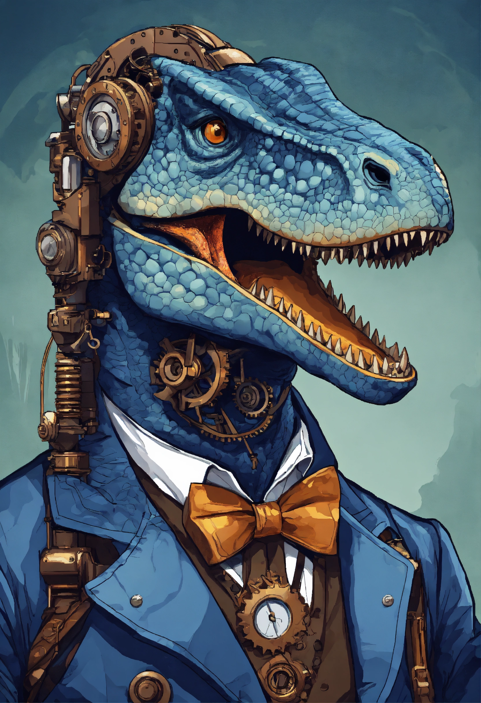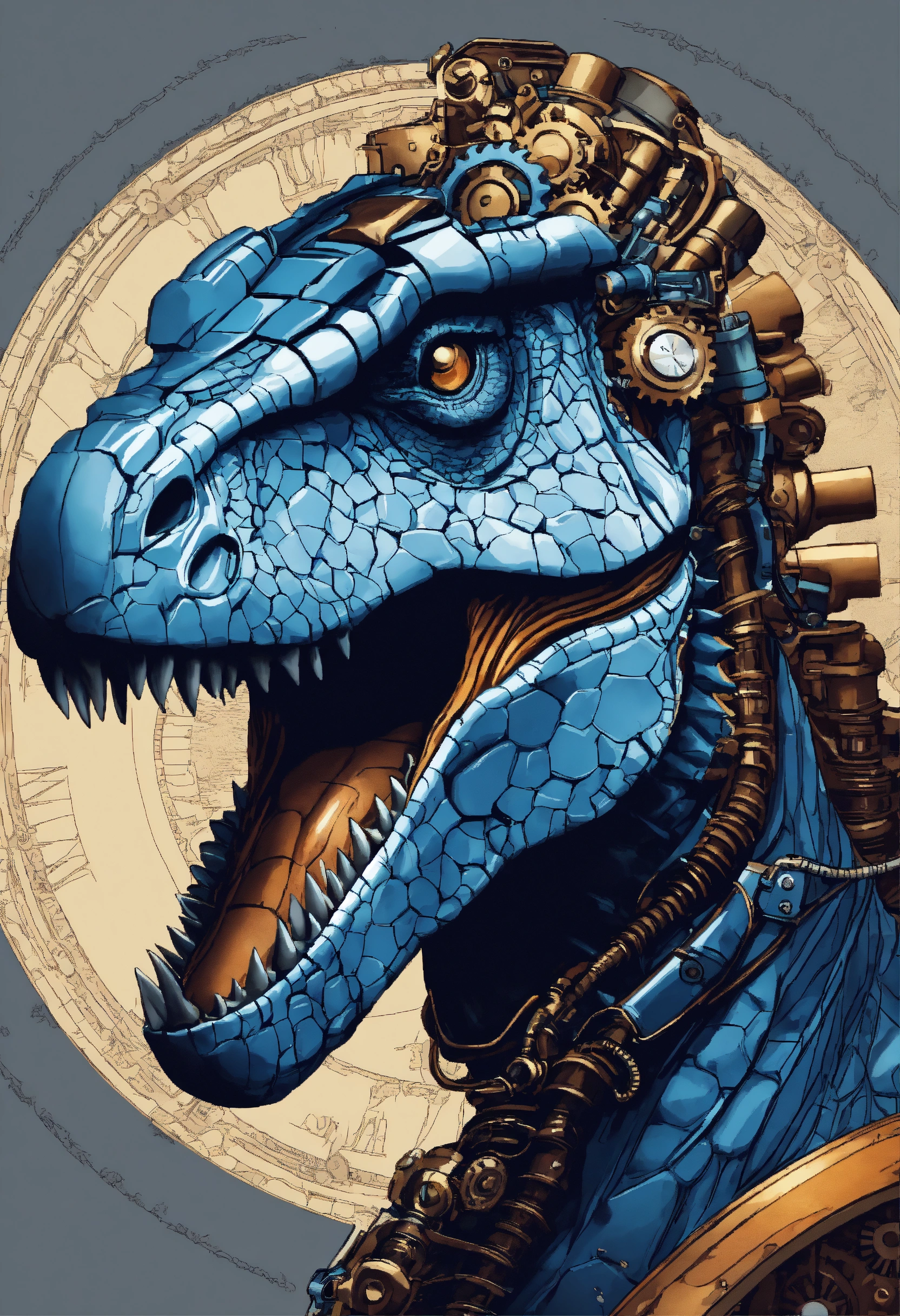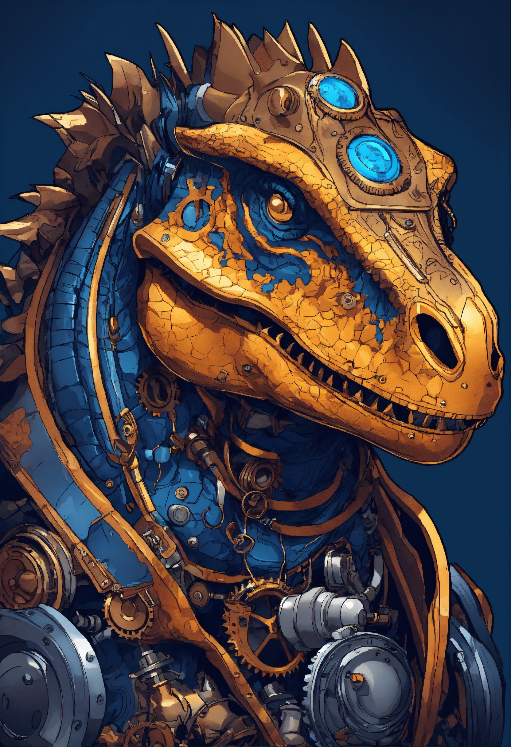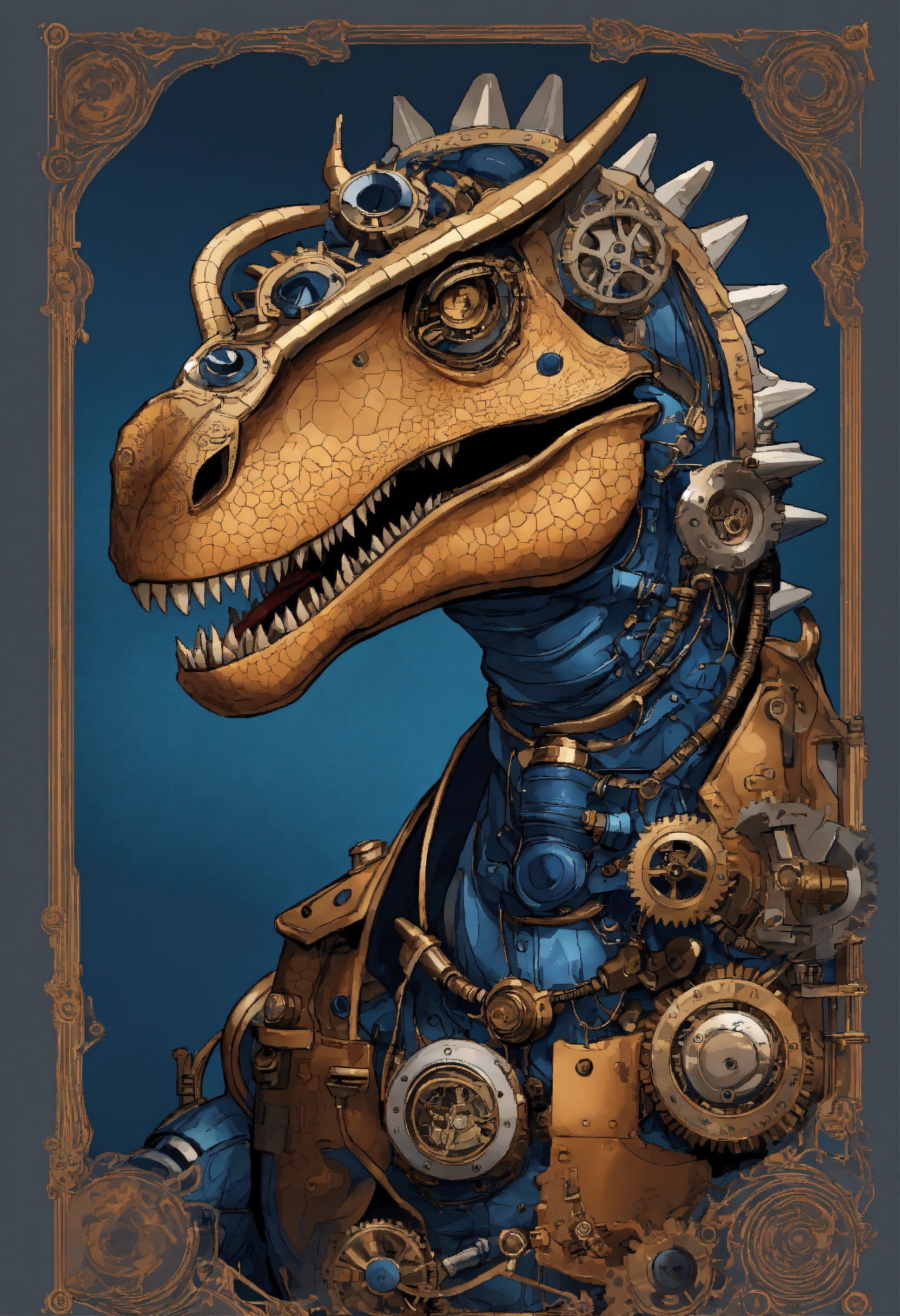 Portrait of a dinosaur, steampunk, indigo blue, colorful, illustration, highly detailed, simple, smooth, and clean vector, no jagged lines, vector art, smooth, made all with grey colored gears inspired by future technology