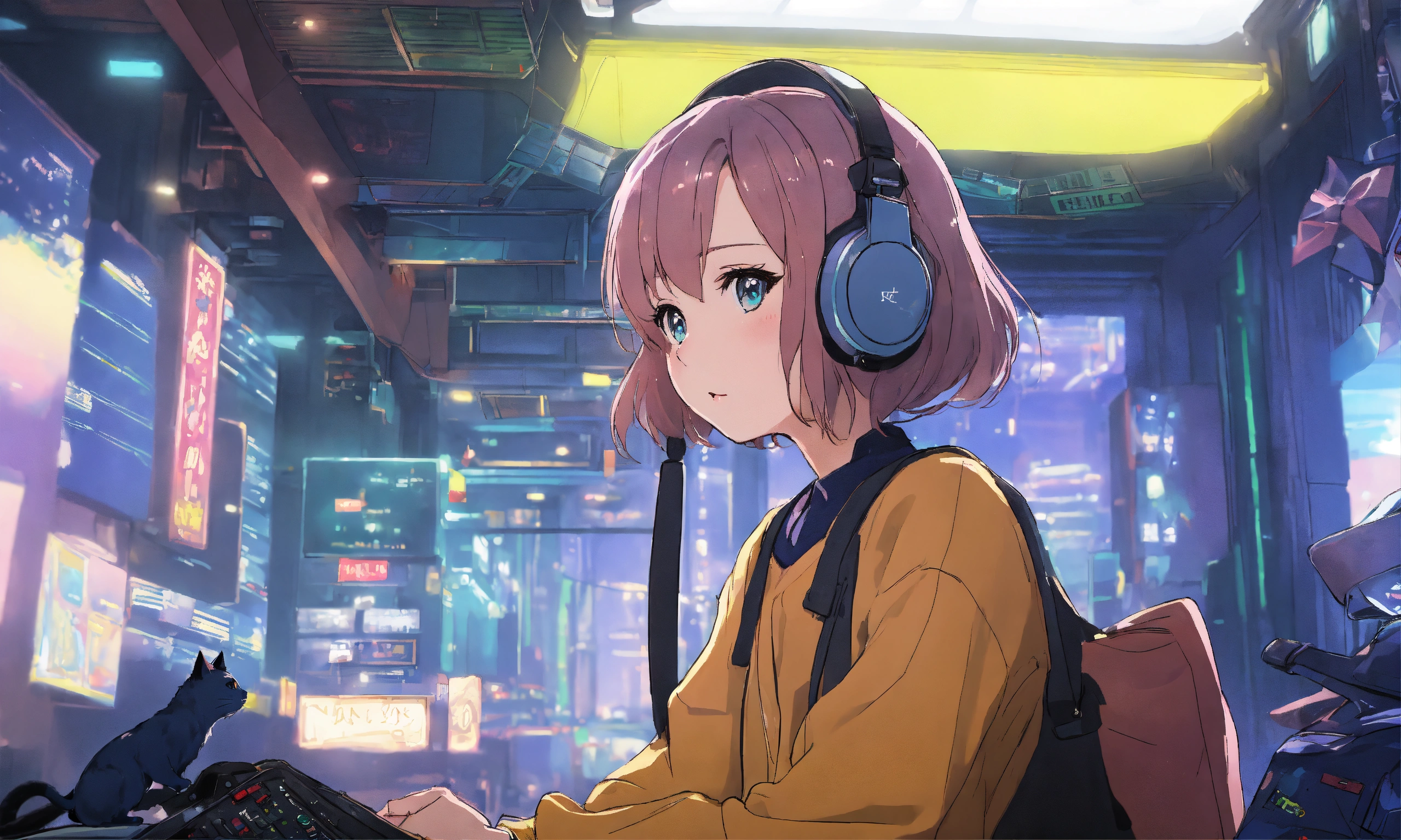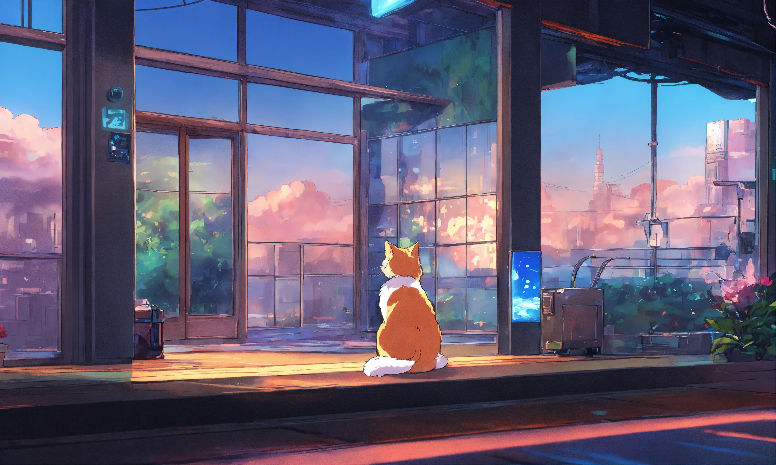 Lofi cat anime scenery