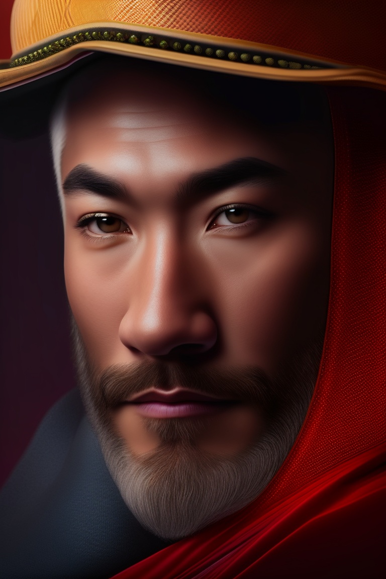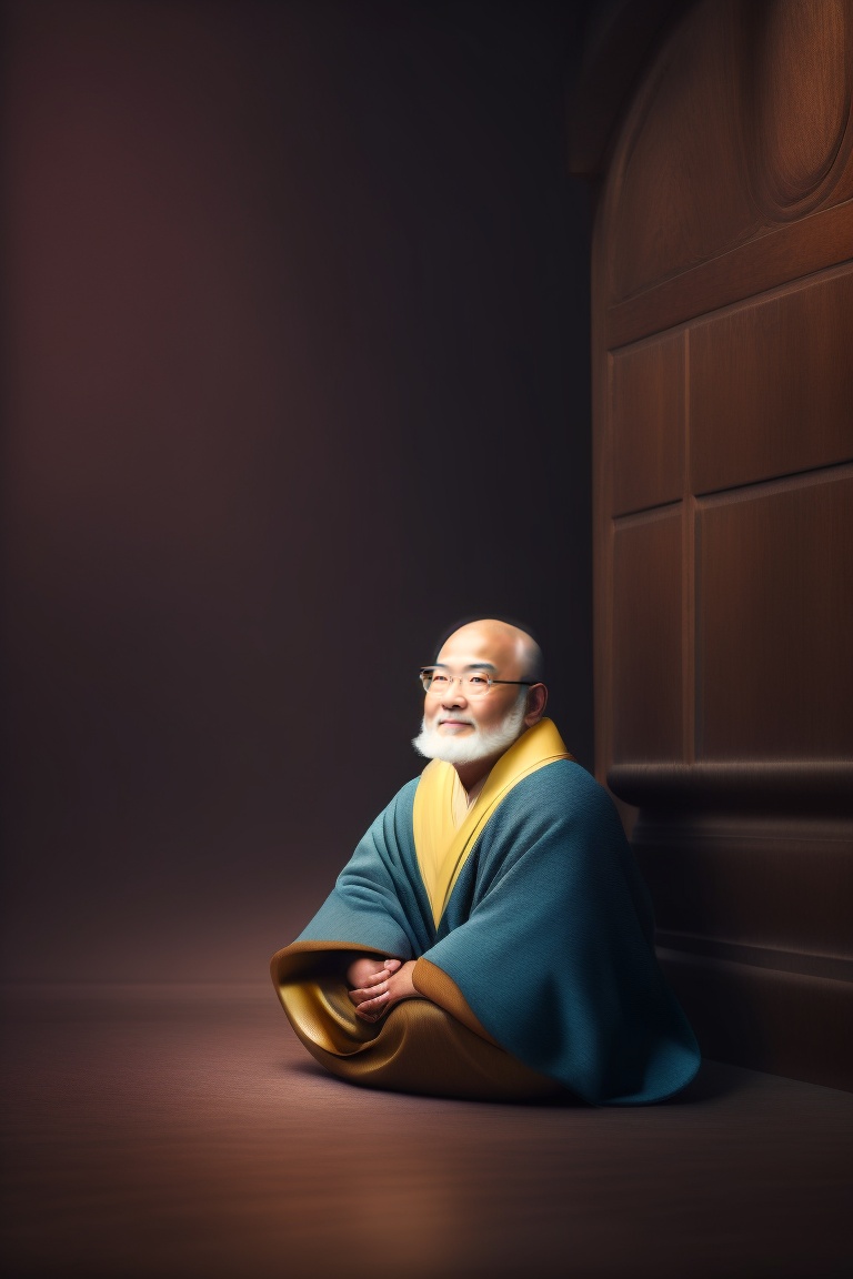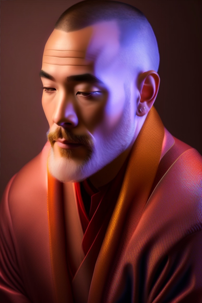 Portrait of a zen master, long hair, looking at camera, high resolution,