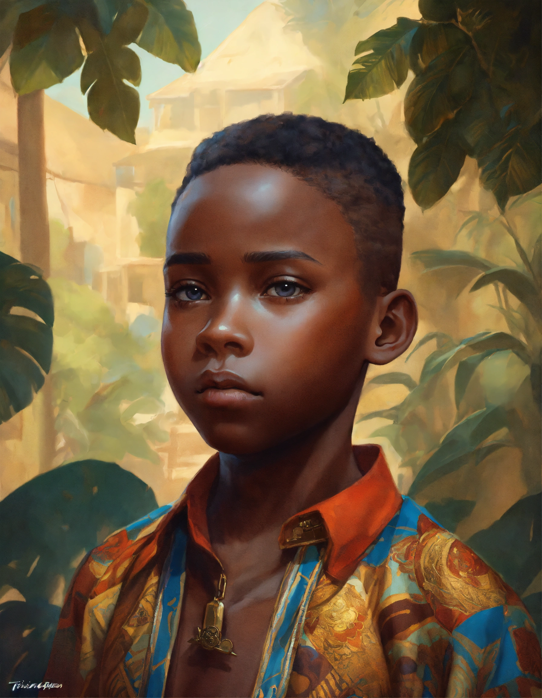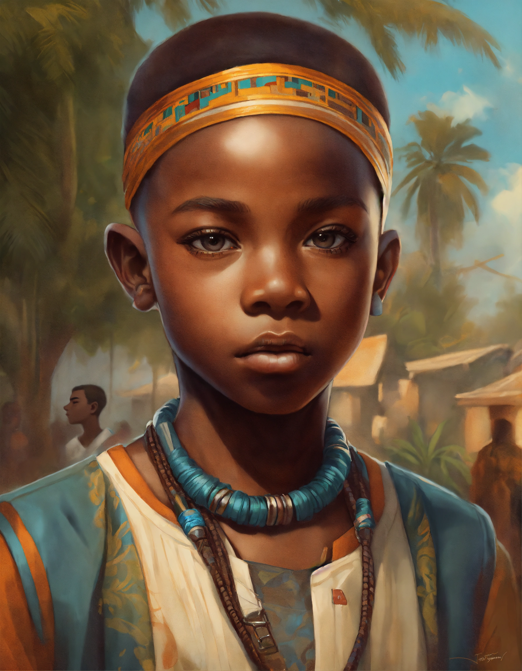 A handsome village african 10 years old boy, kind features, highly detailed, smooth, pixar style by tristan eaton stanley artgerm and tom bagshaw