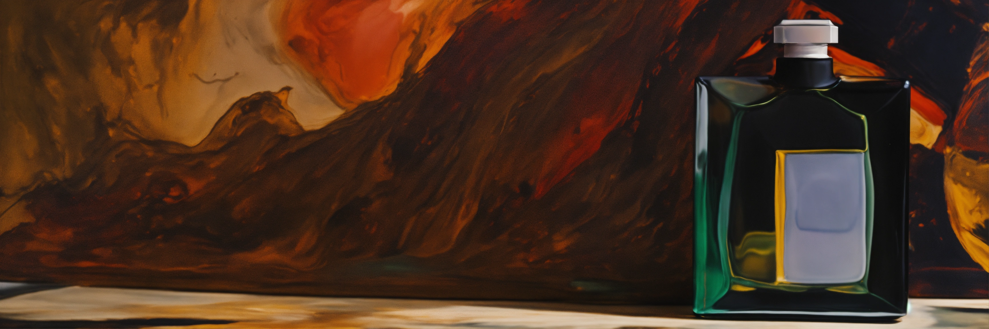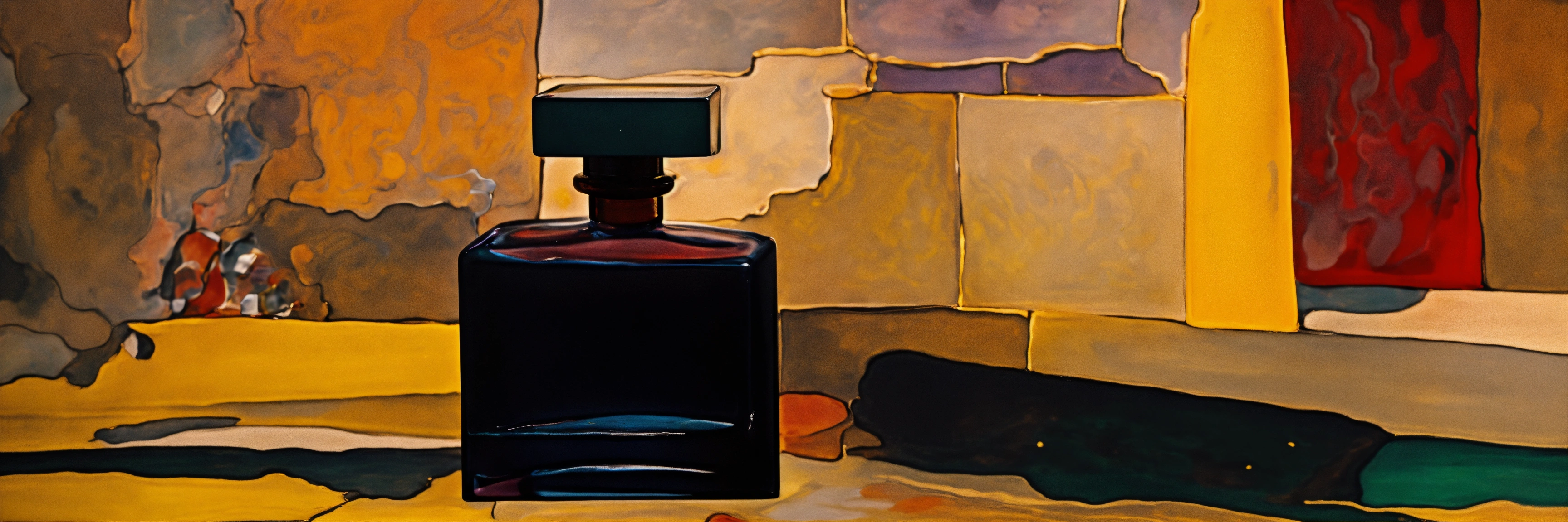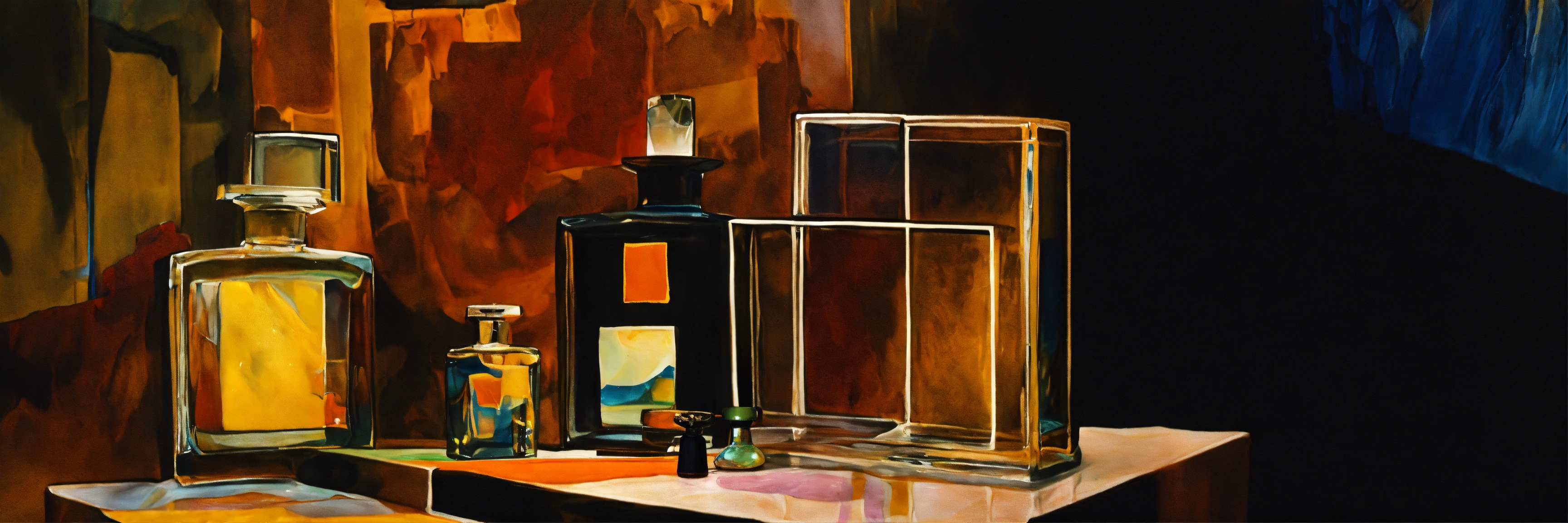 3d abstract painting, egon schiele inspiration, skin enveloping experience, dark room inspiration, foreground perfume bottle