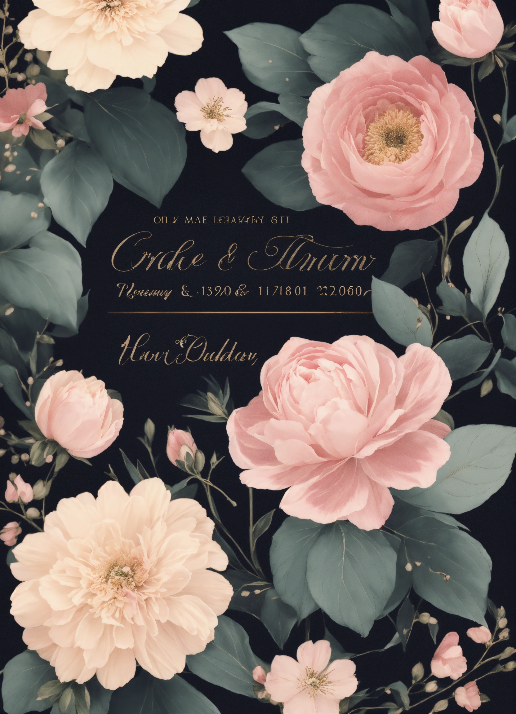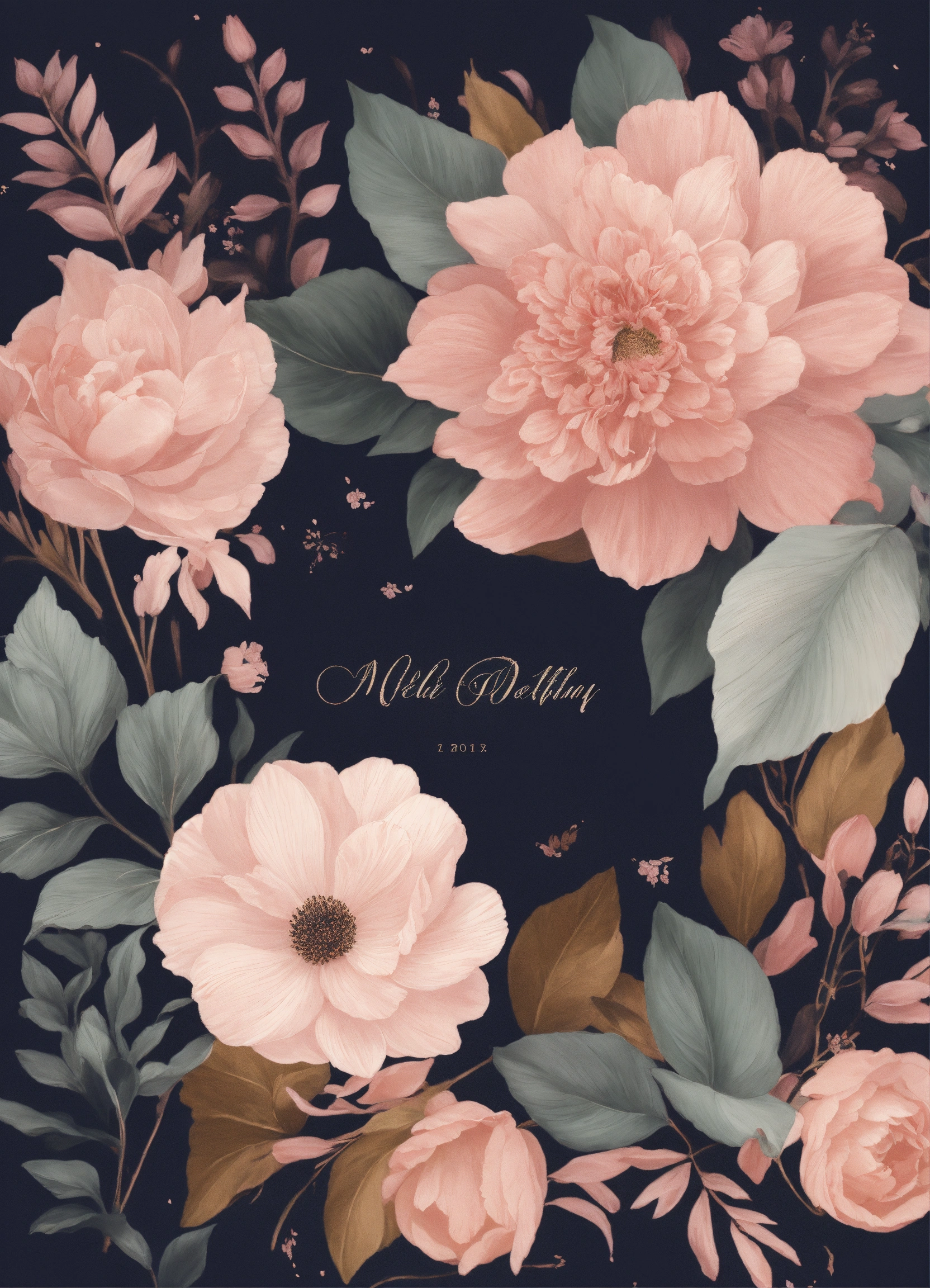 "create a lexury feminine, dark floral design background using a soft color palette and a vintage aesthetic no text. for wedding invitation card template