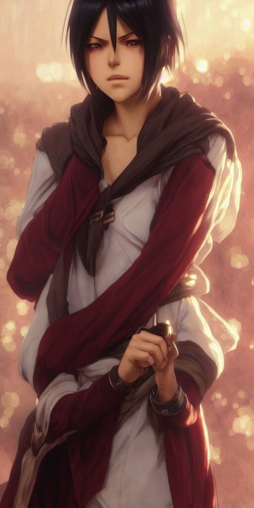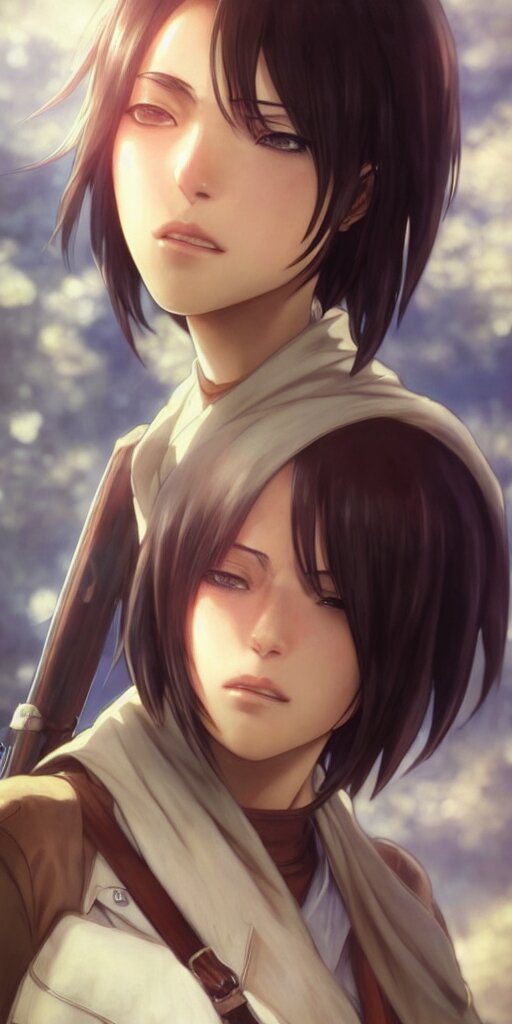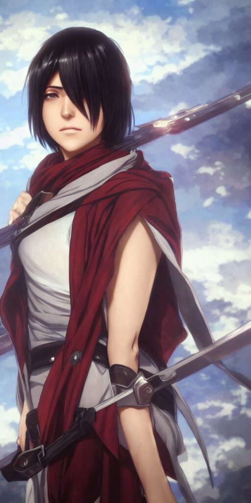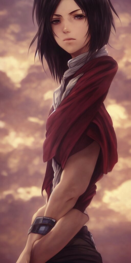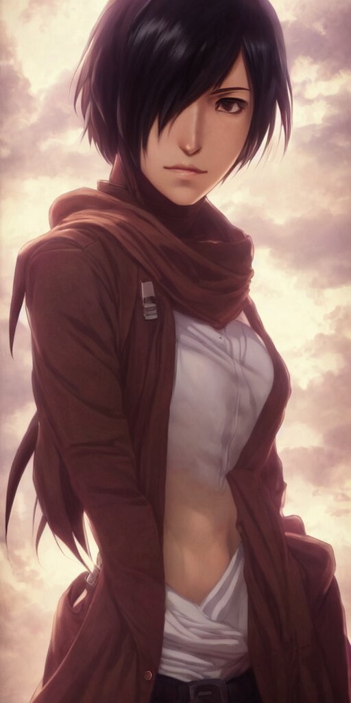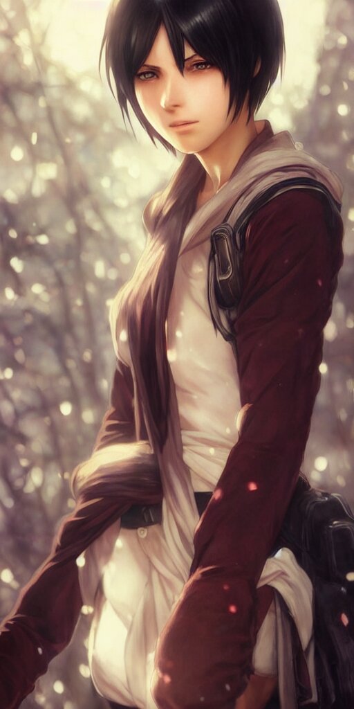 Mikasa ackerman, hero pose, medium shot, bokeh, beautiful face!!!!, 2 7 years old, cg animation, lifelike, animated, realistic, character select portrait, by artgerm, greg rutkowski, alphonse mucha, 3 d