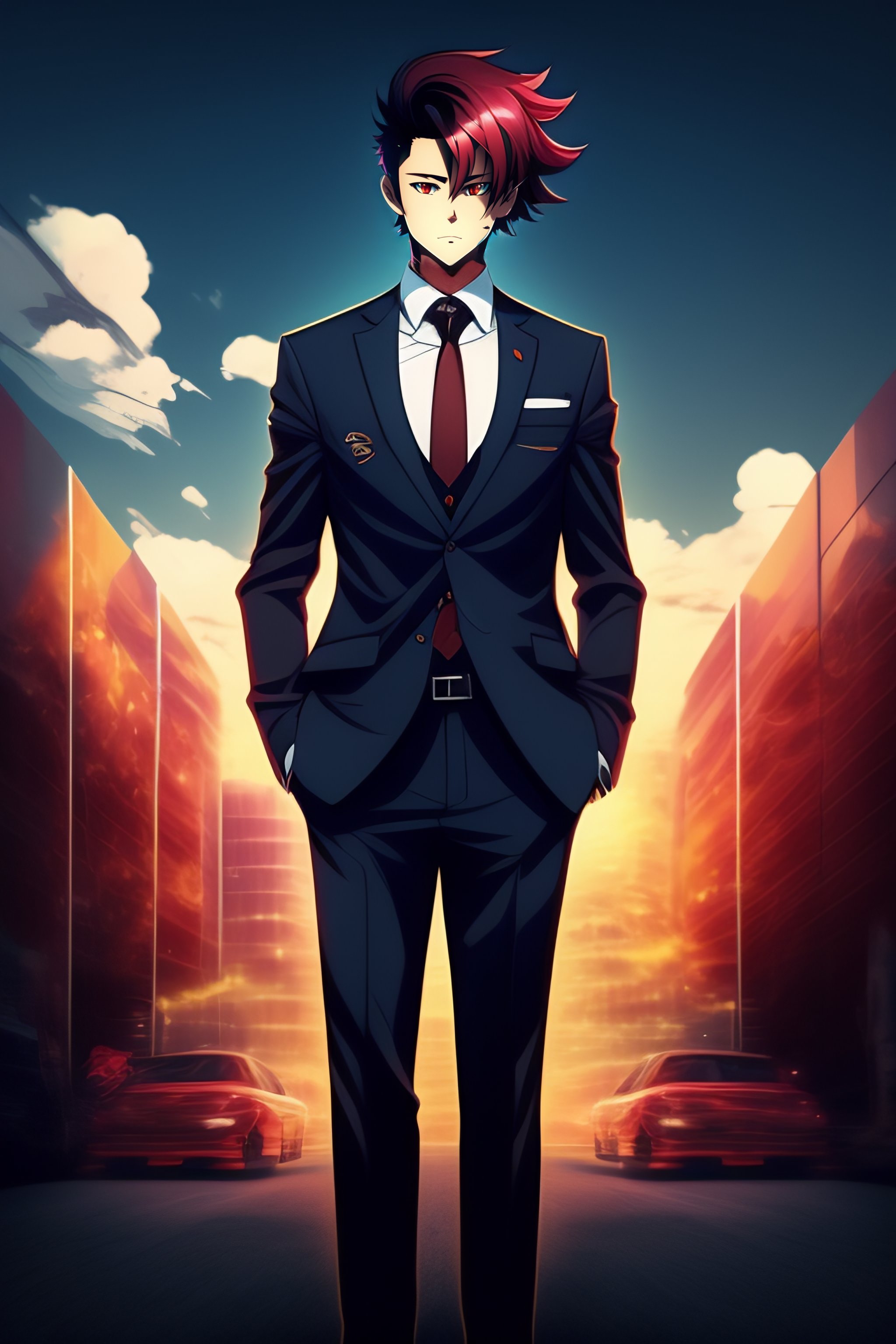 Young man suit and tie anime style chainsaw man