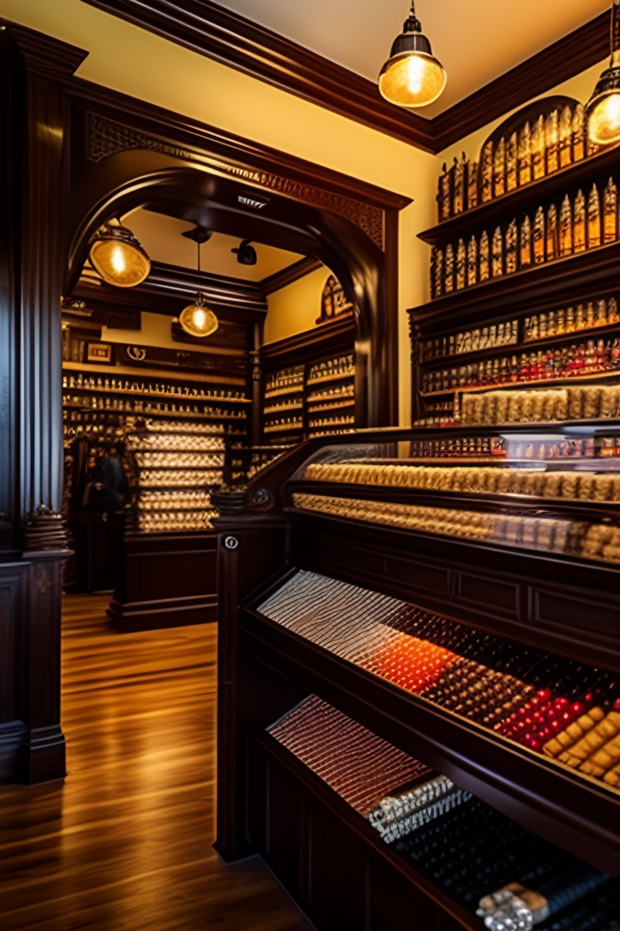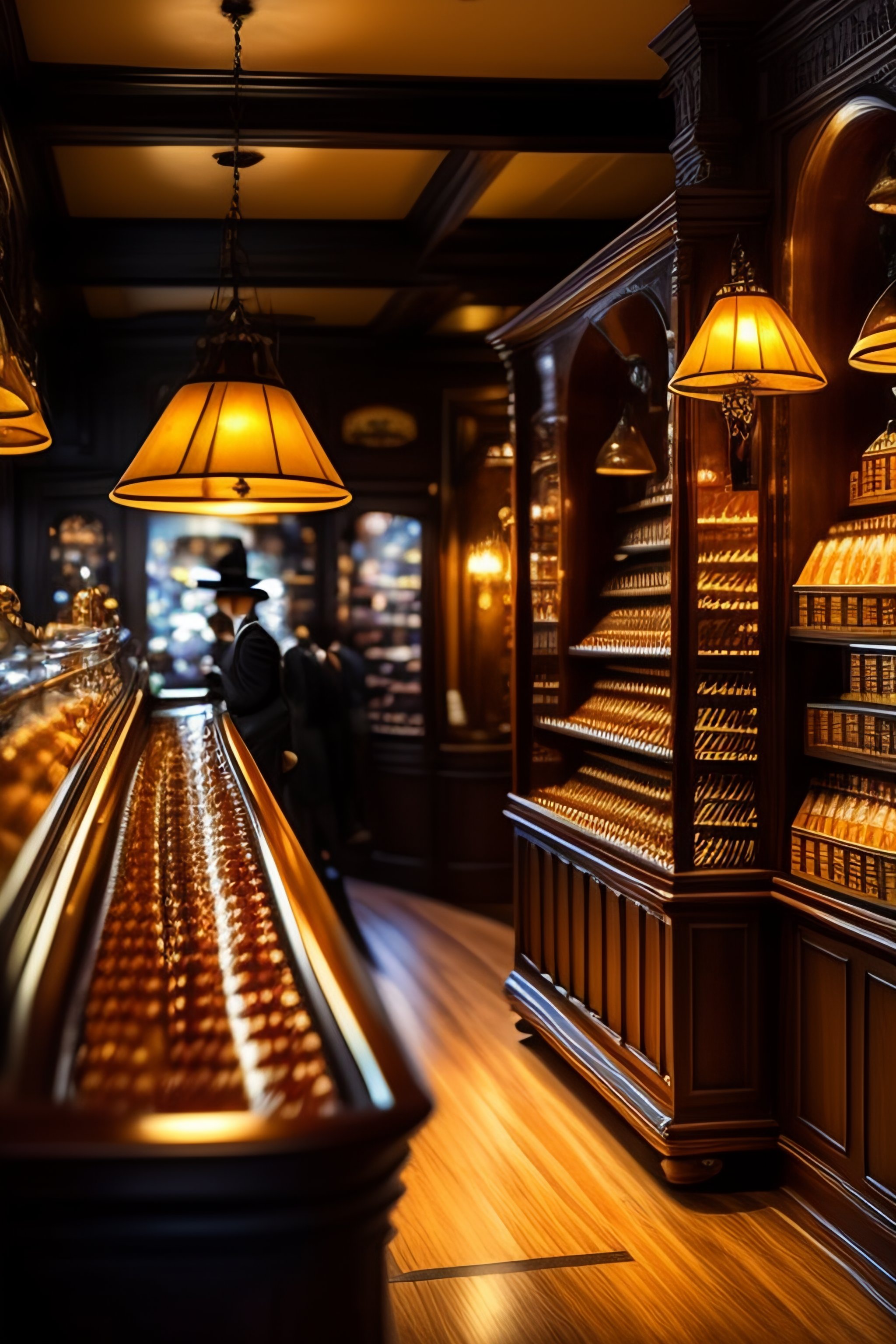 An old time traditional victorian tobacconist in a store tobacco shop old west interior with a cigar high detail, high definition, high quality, cowboy