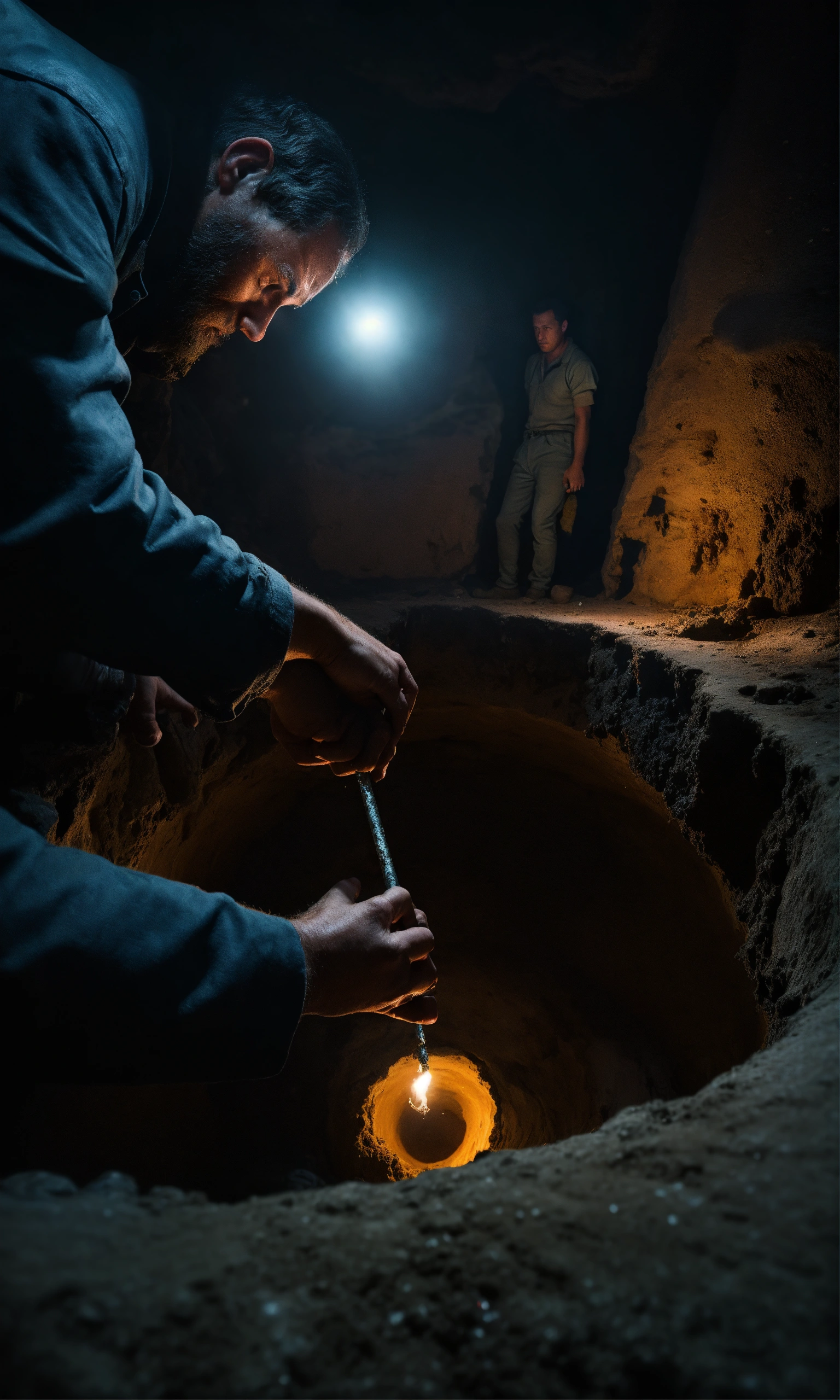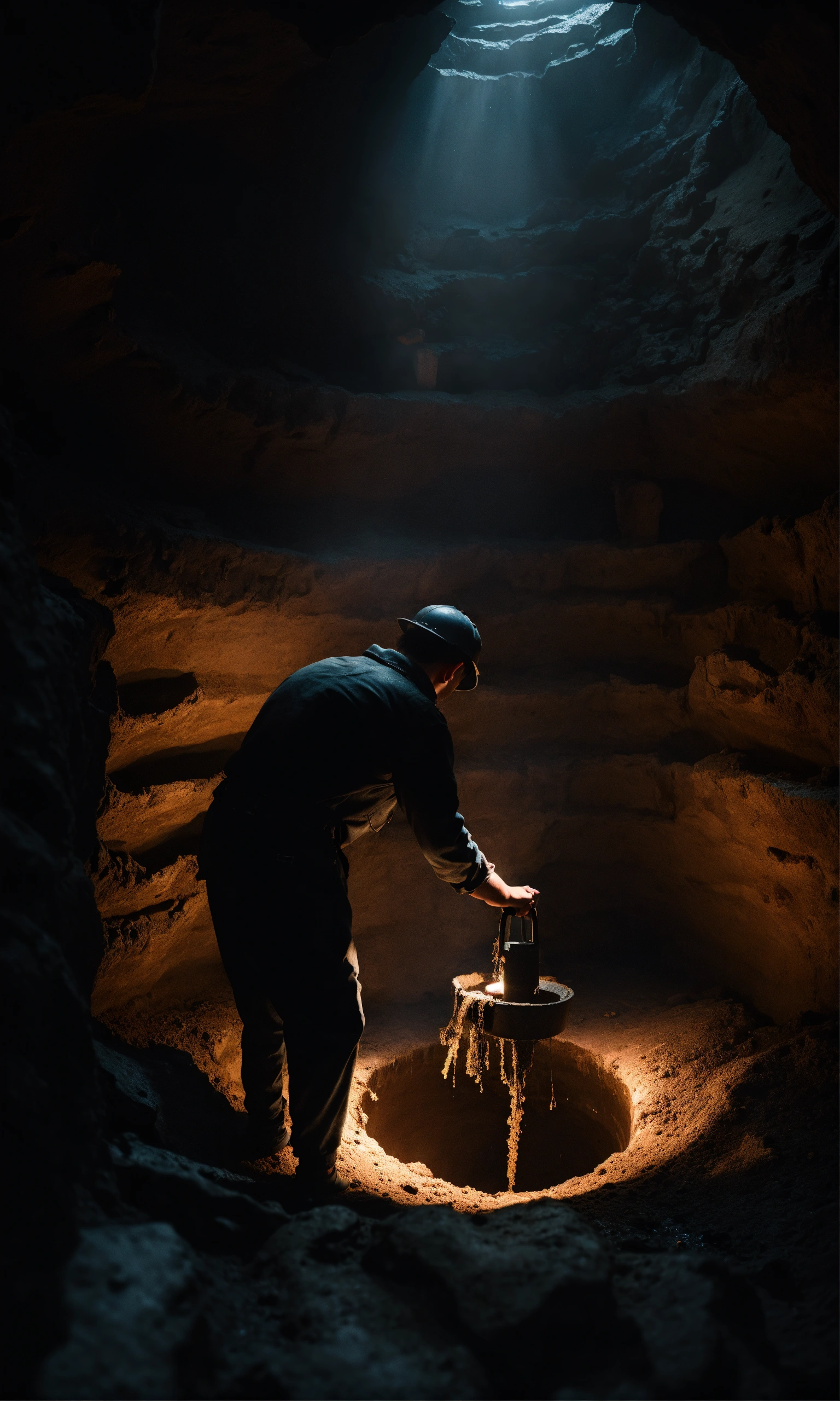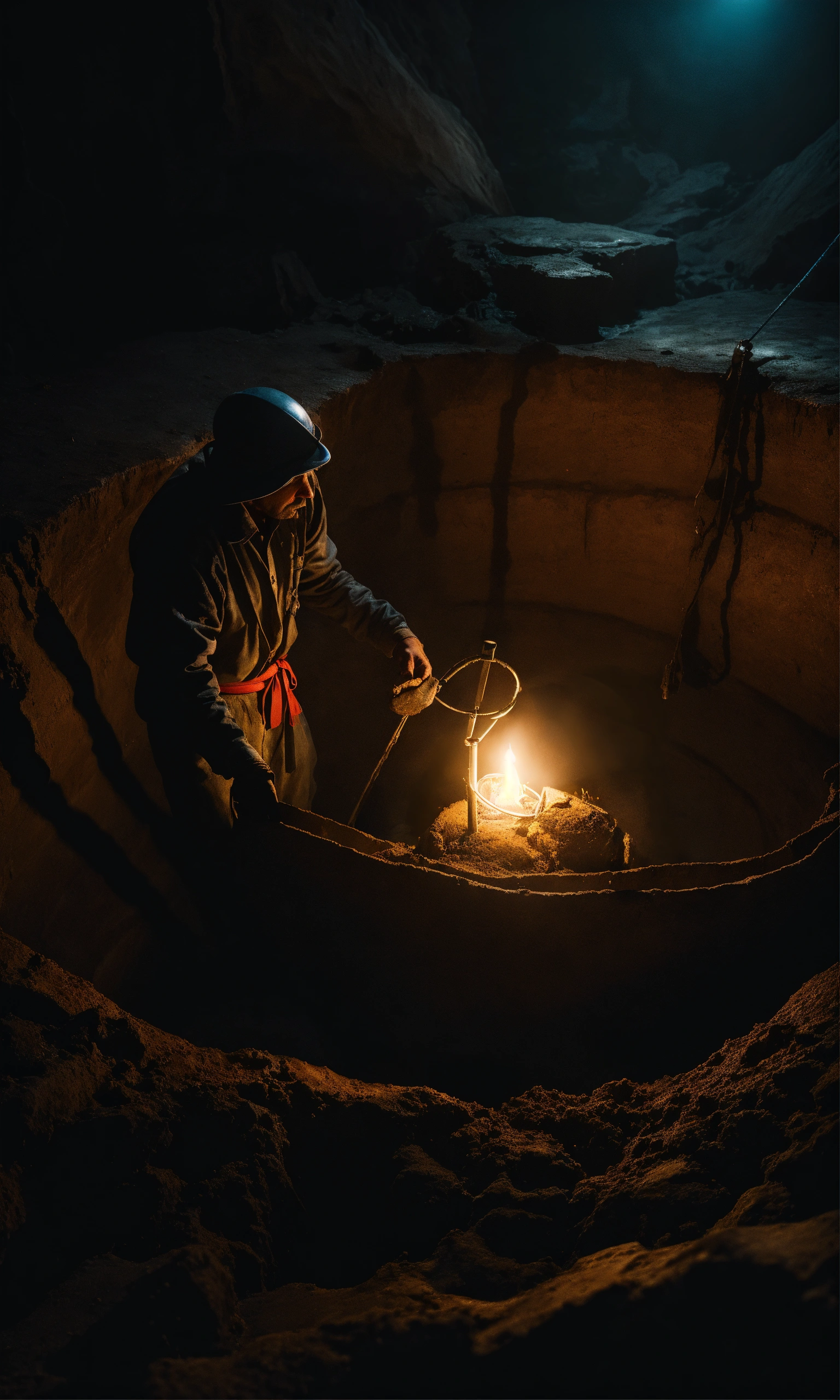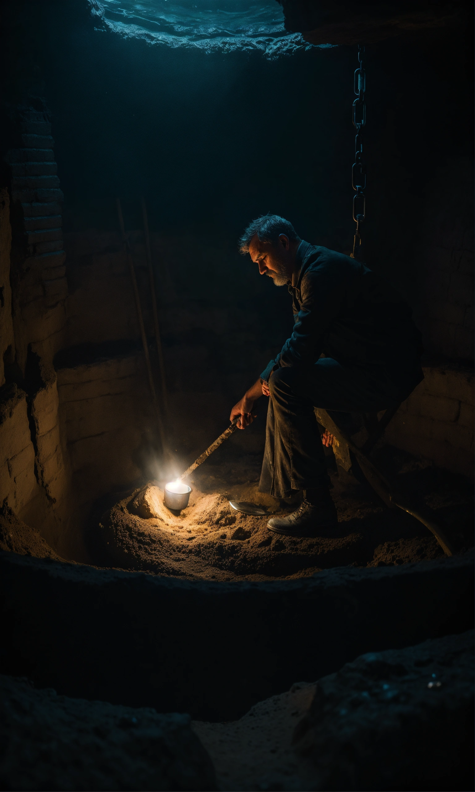 Extended hand in a deep well trying to help a despaired man at the bottom of the pit, dim light, surreal photo, fujifilm xt3, dark lighting, raw photo, 8k uhd, unreal engine 5, ray trace