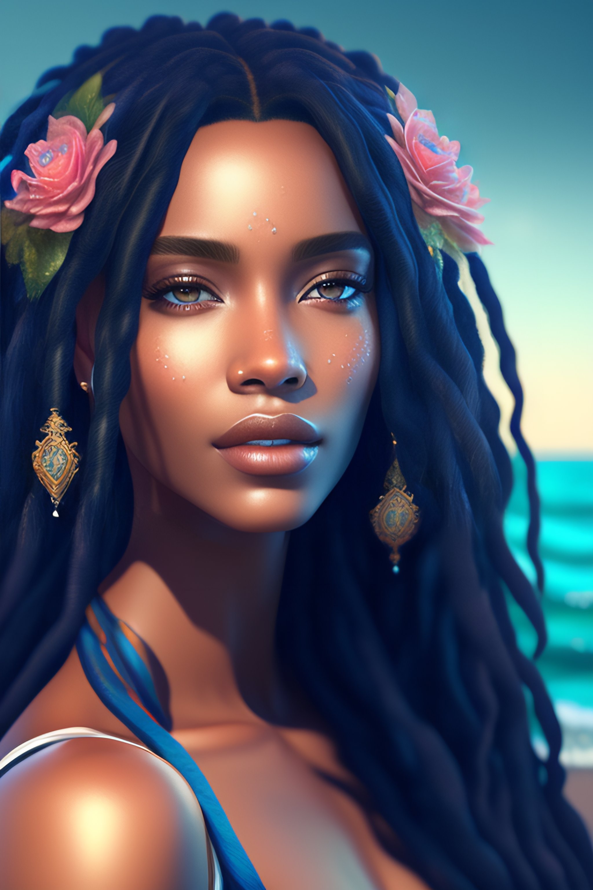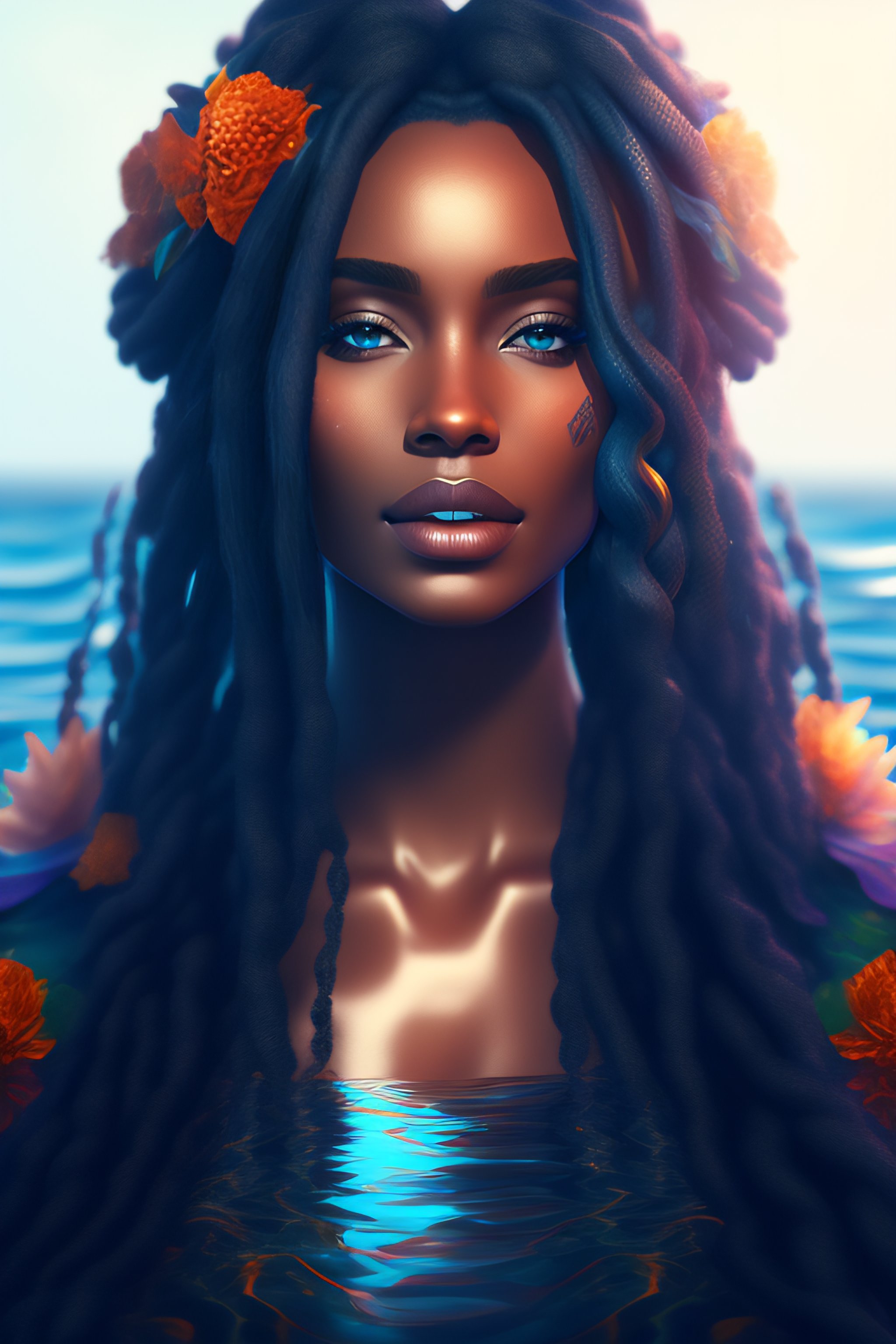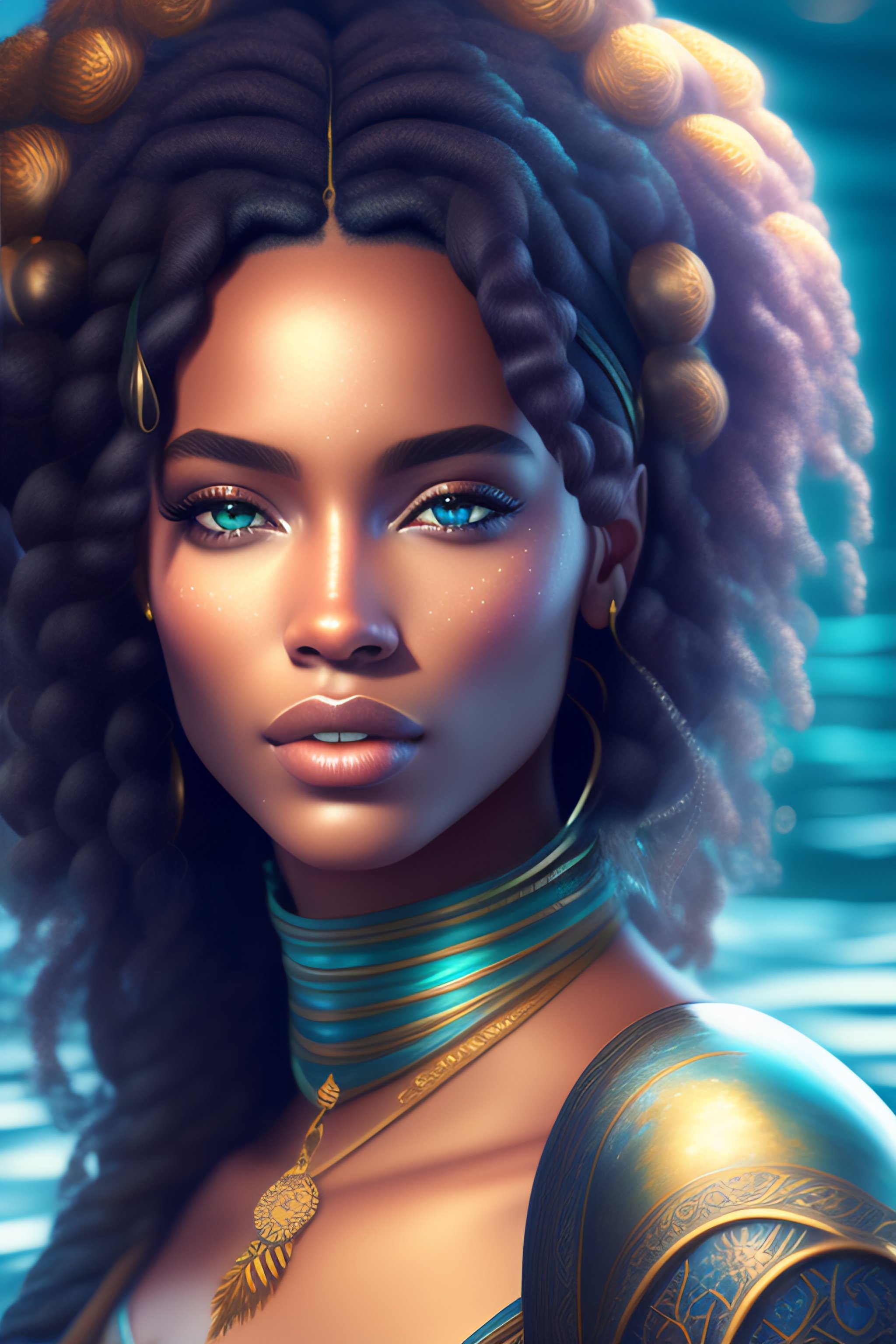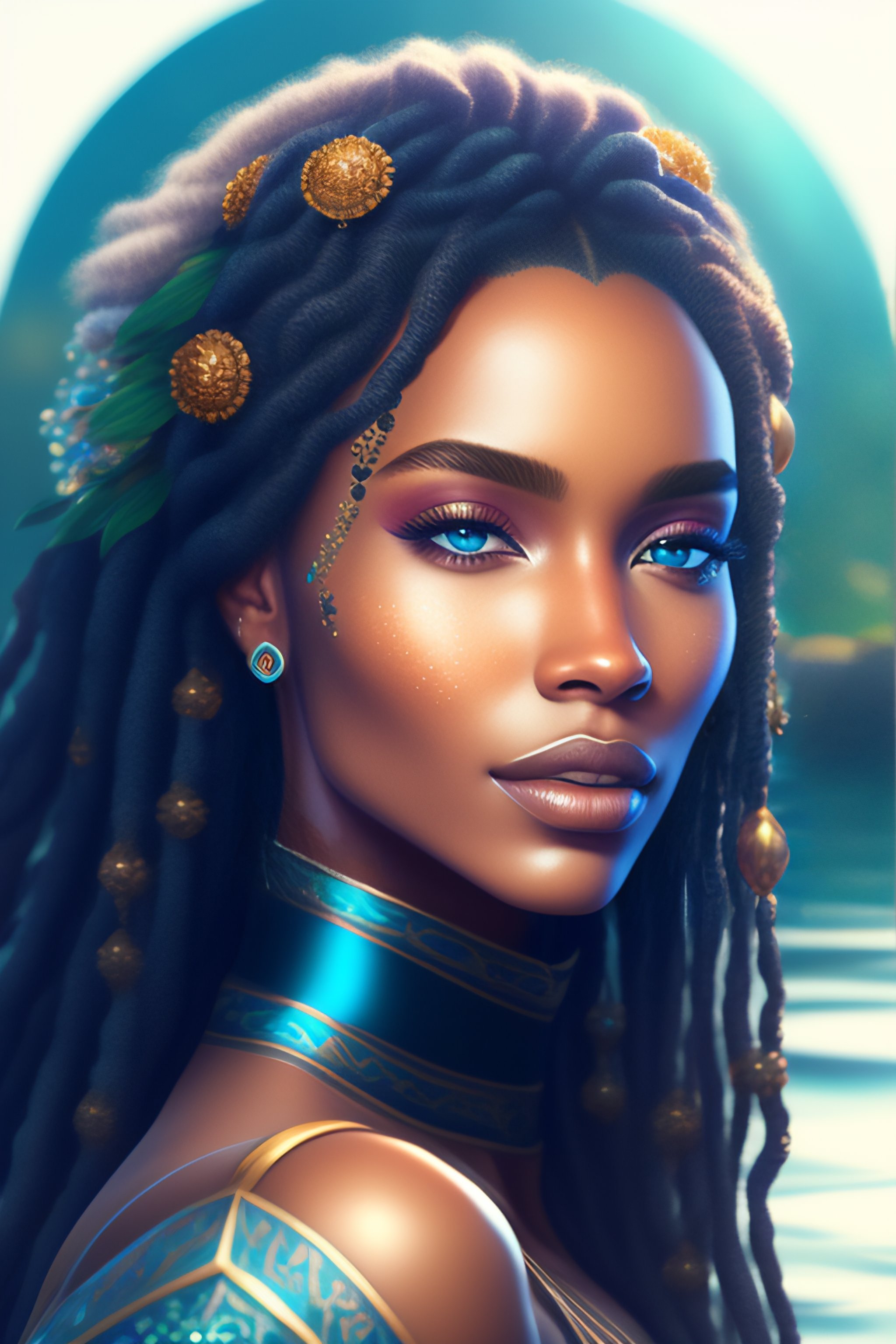 Portrait of a beautiful woman, surrounded by water, portrait of beautiful young maiden, blue water, the middle ages, highly detailed, raytracing, artstation, illustration, sylvari portrait, 8 k quality, dreadlocks hair, caucation