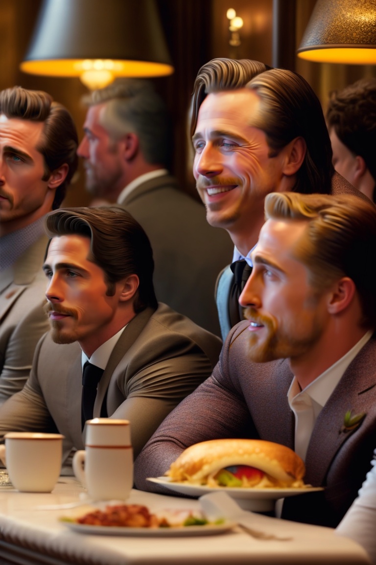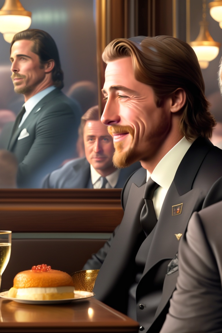 and ryan gosling sitting in a restaurant.