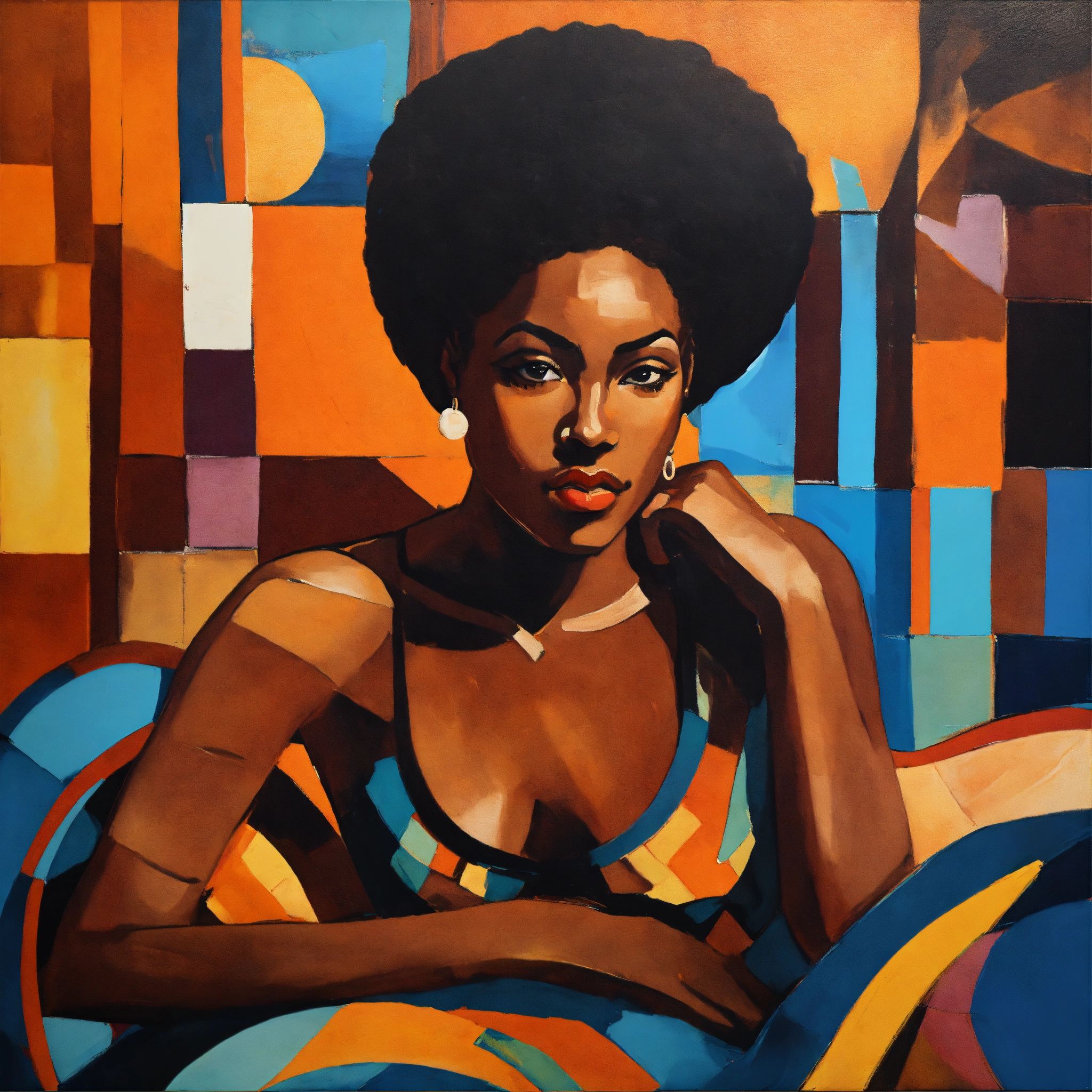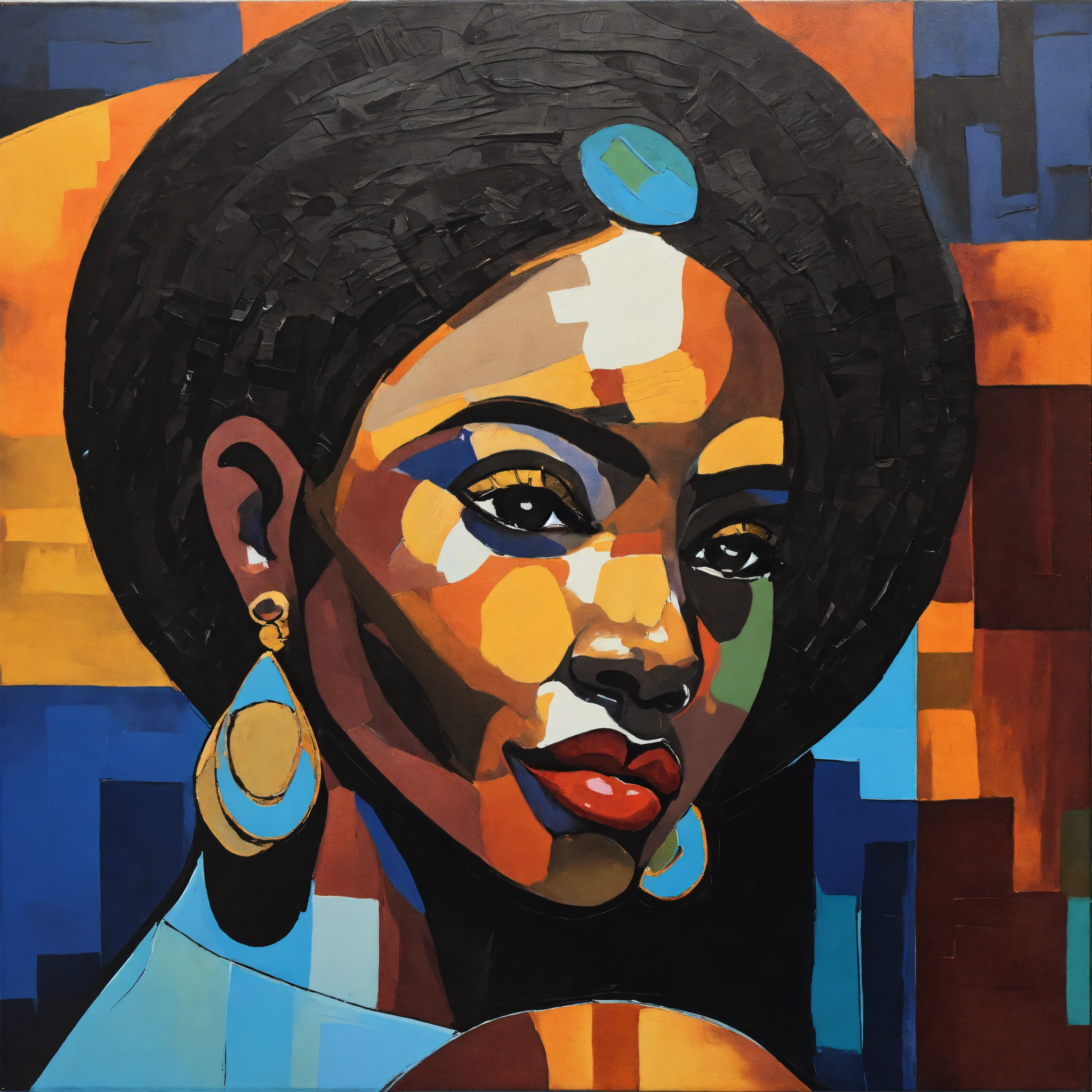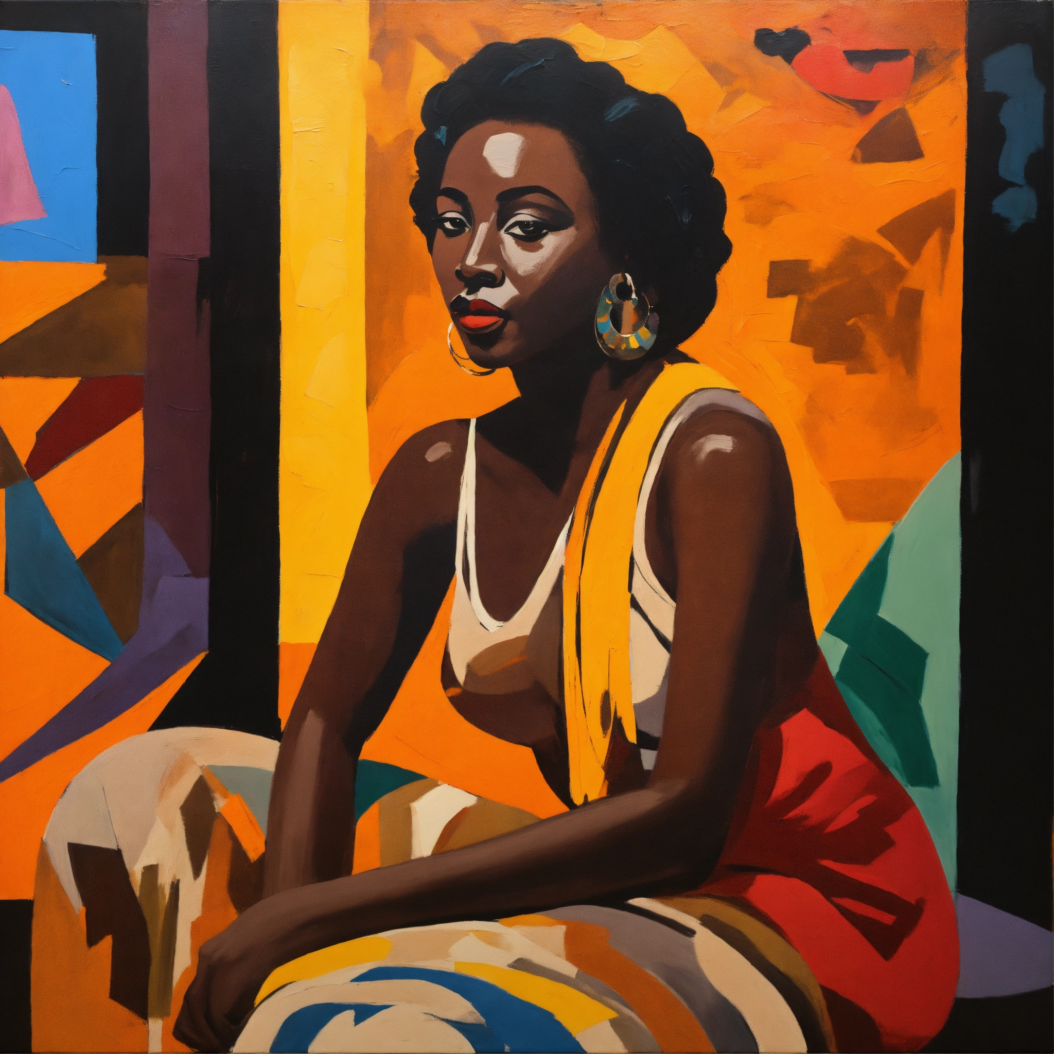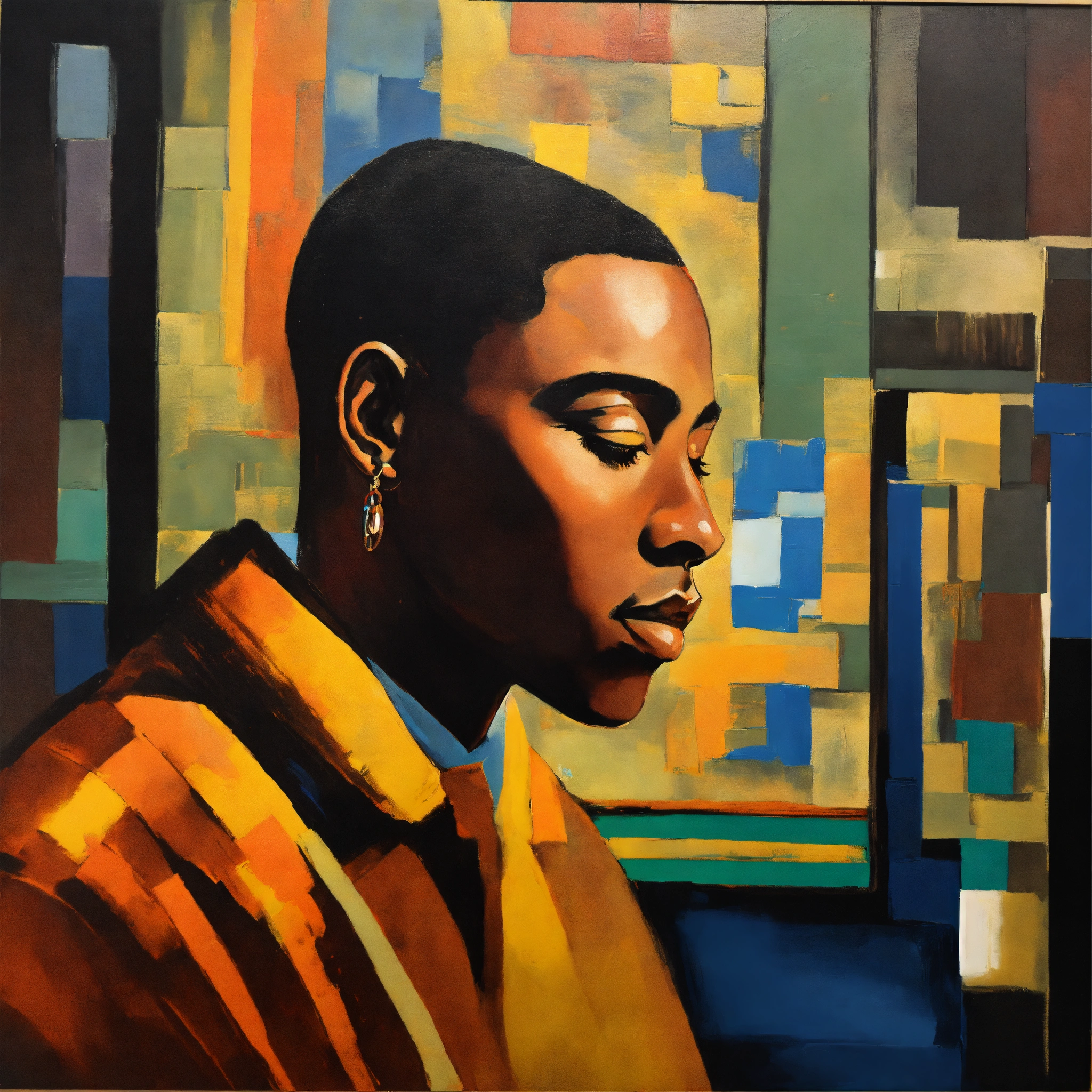 Create an exciting acrylic painting inspired by the harlem renaissance and abstract style, set the painting against a dark background and light it with an ambient light source to create a moody atmosphere, take inspiration from henry taylor's passion for depicting black culture and strive to honor the legacy of the harlem renaissance while also incorporating the unique style of picasso