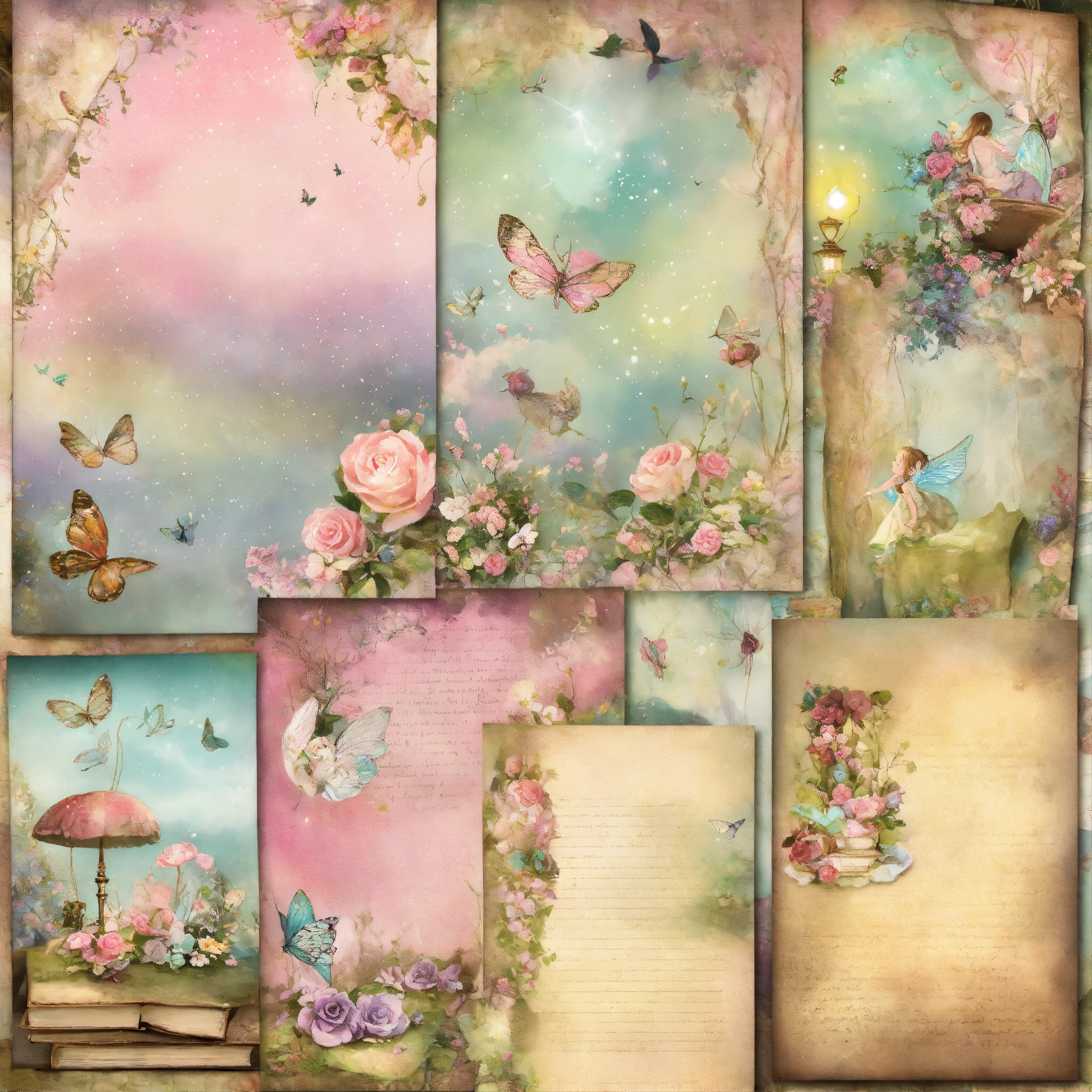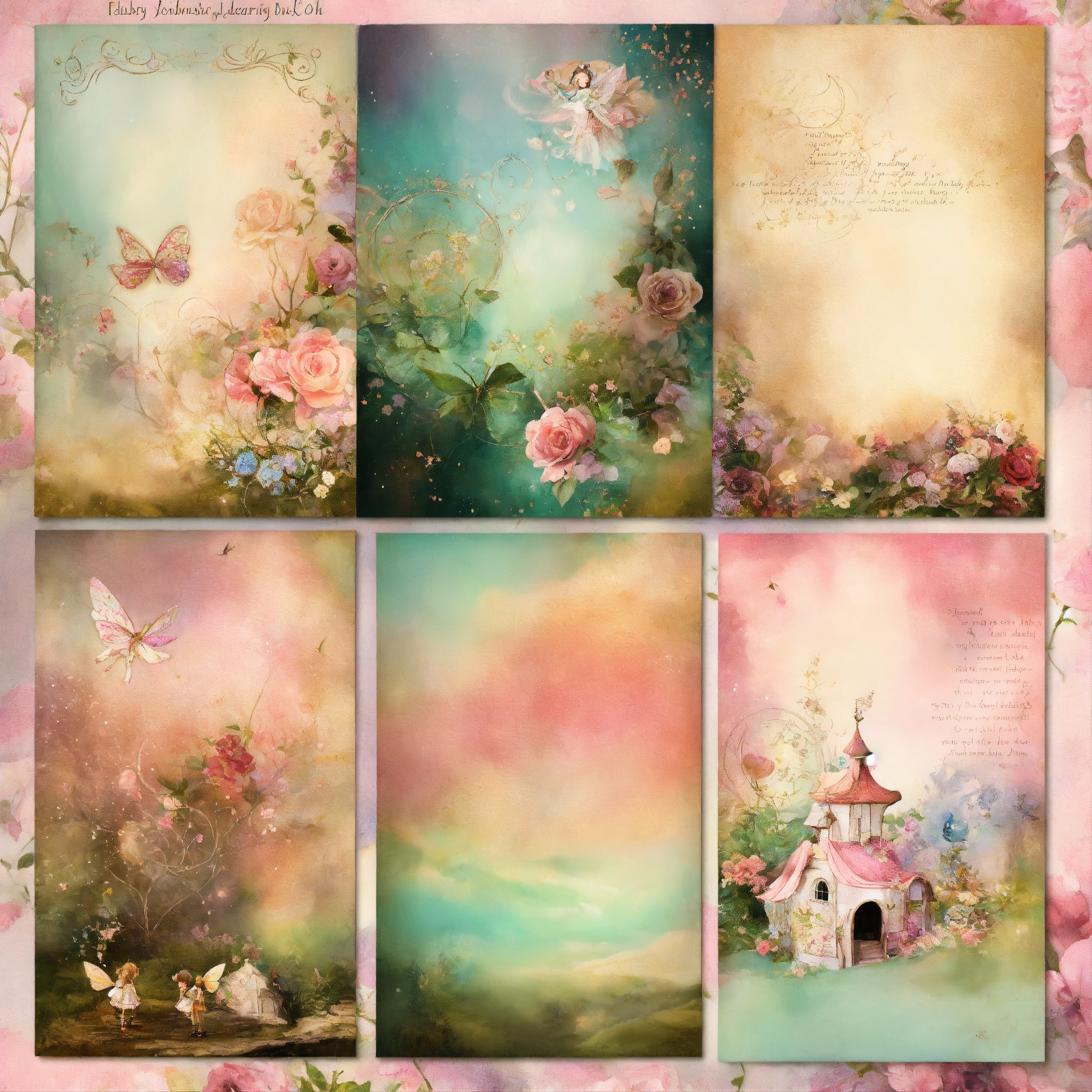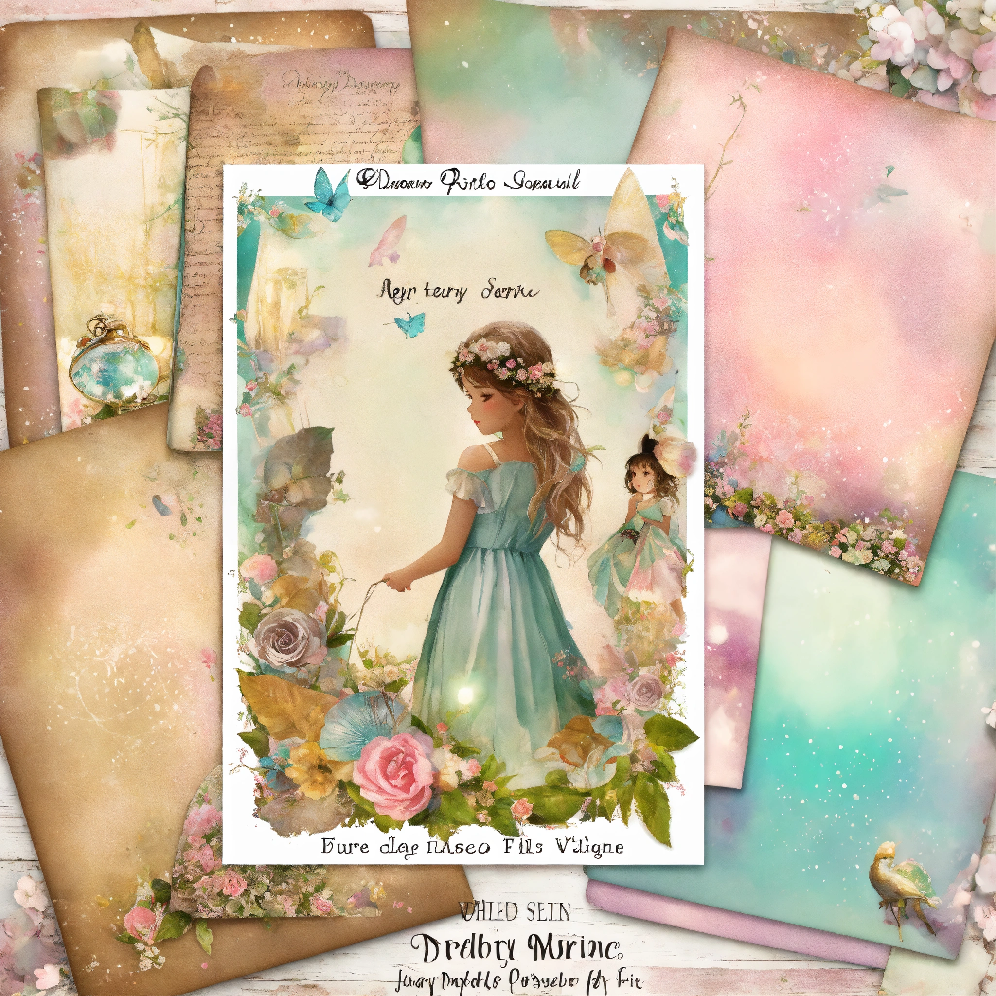 Shabby chic dreamy mist pastel junk journals fairy junk journal digital kit, printable collage sheets, whimsical pages, child, kid, girl, fantasy, tale, swirling magical fairytale abstract art style