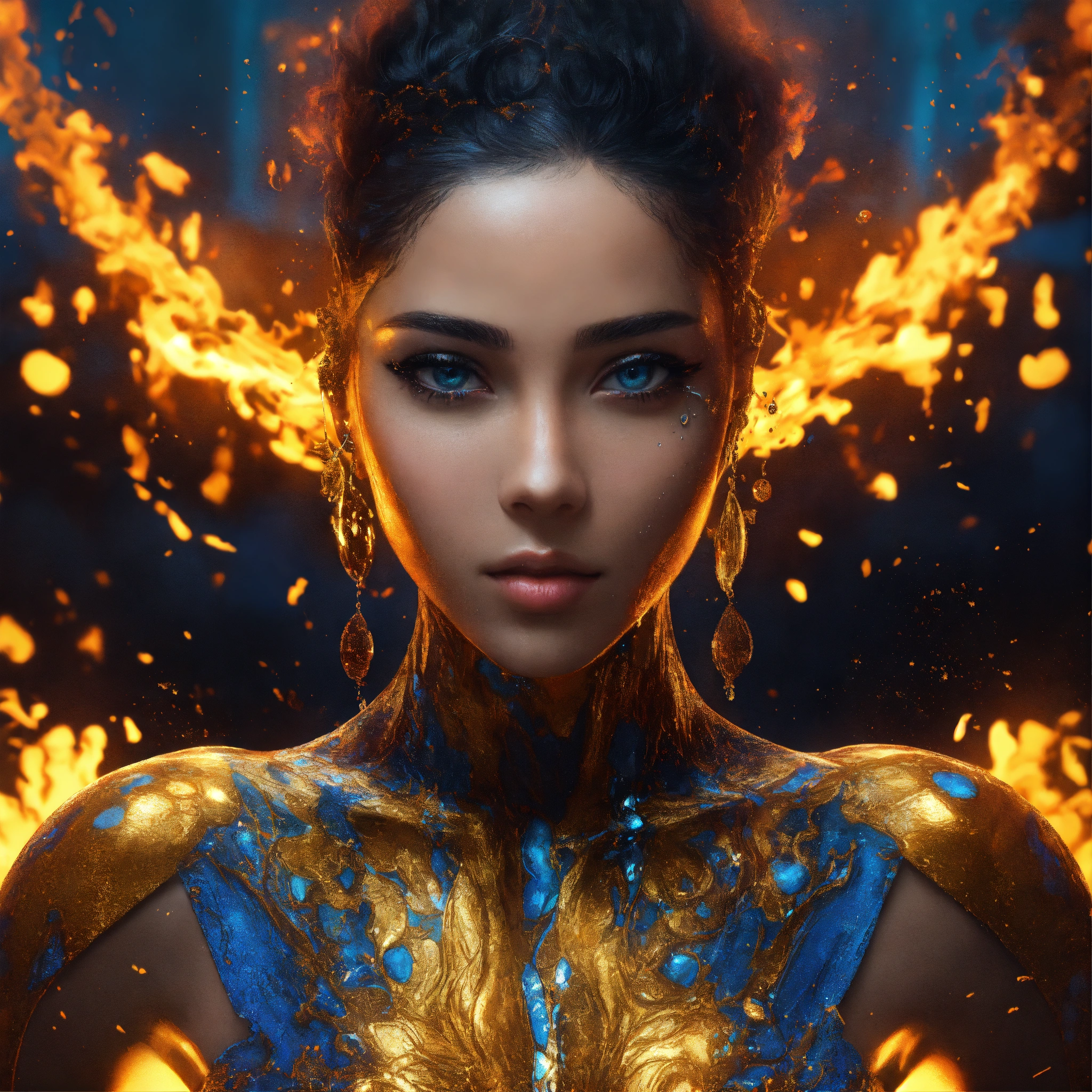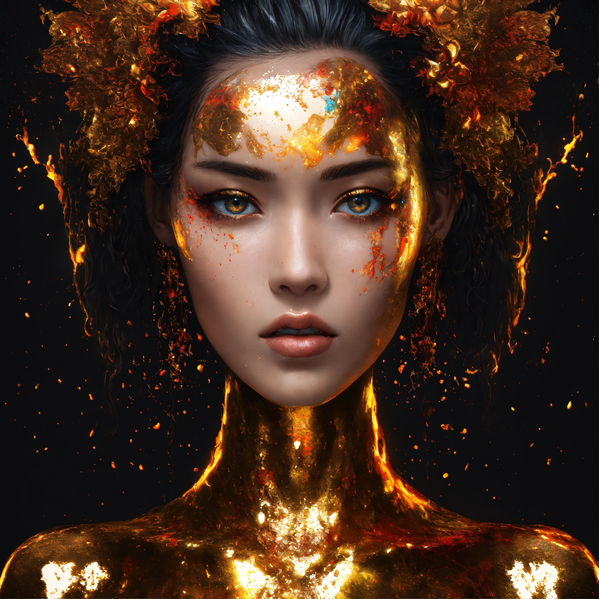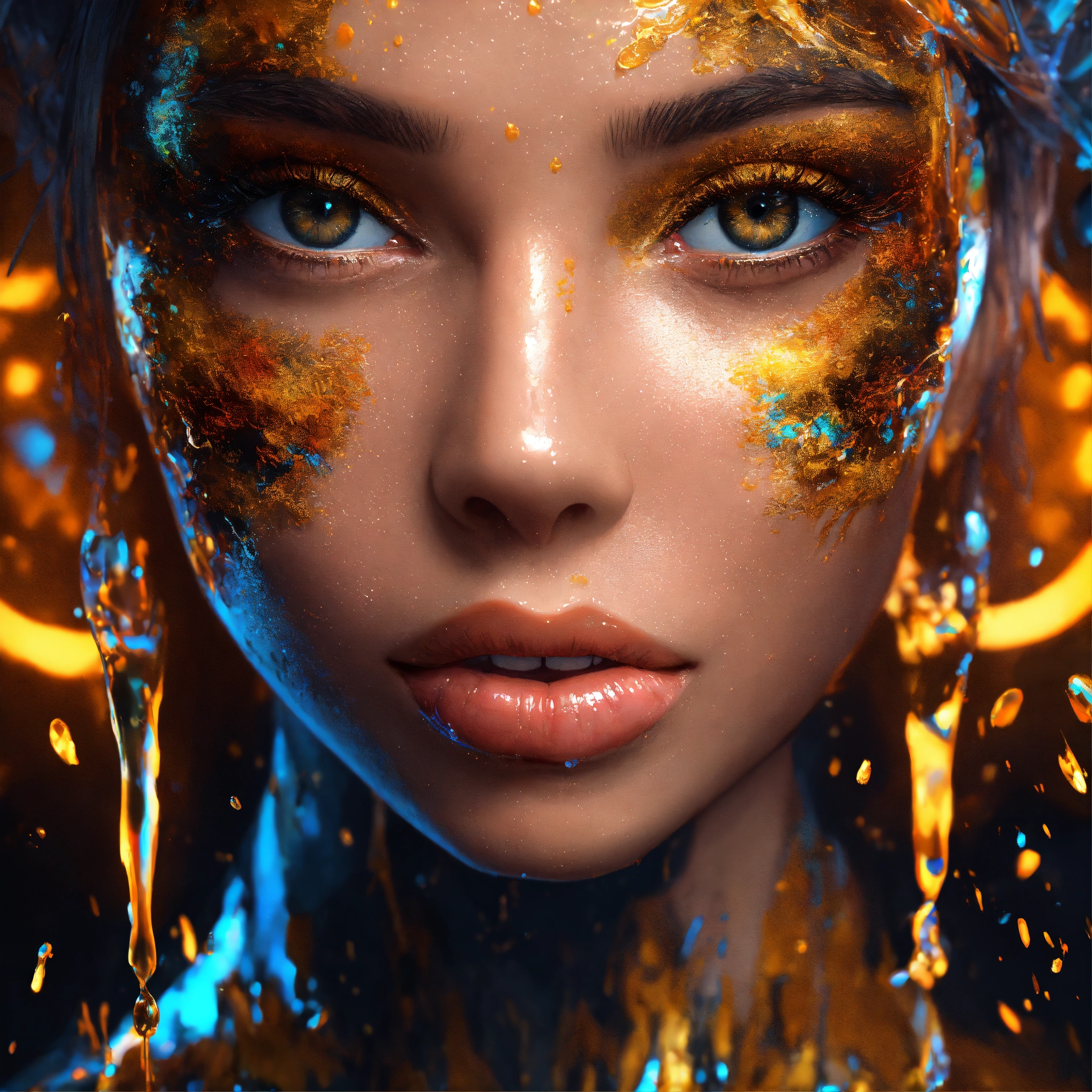 A beautiful woman, hyperdetailed eyes, tee-shirt design, line art, black background, ultra detailed artistic, detailed gorgeous face, natural skin, water splash, colour splash art, fire and ice, splatter, black ink, liquid melting, dreamy, glowing, glamour, glimmer, shadows, oil on canvas, brush strokes, smooth, ultra high definition, 8k, unreal engine 5, ultra sharp focus, intricate artwork masterpiece, ominous, golden ratio, highly detailed, vibrant, production cinematic character render, ultra high quality model