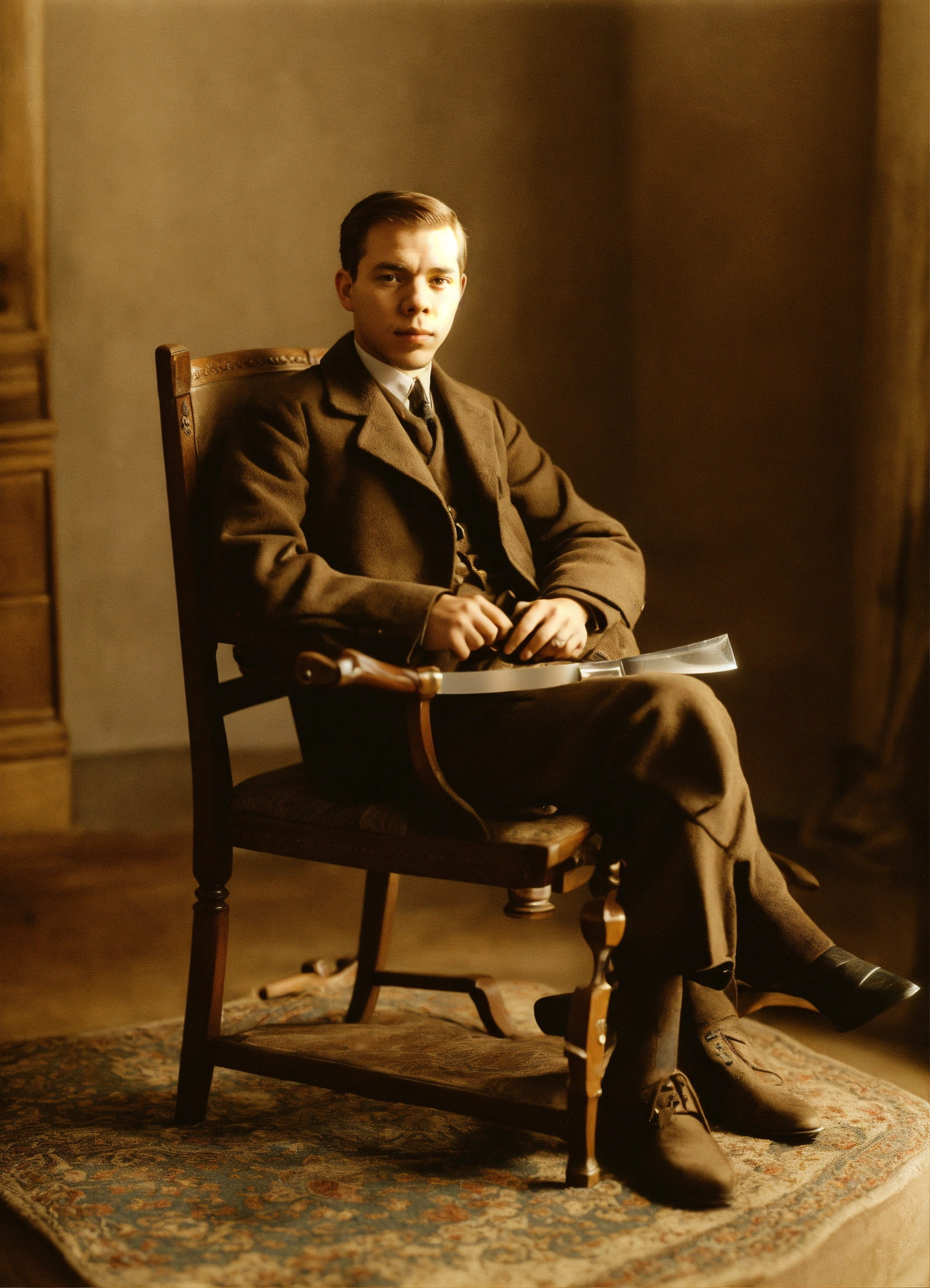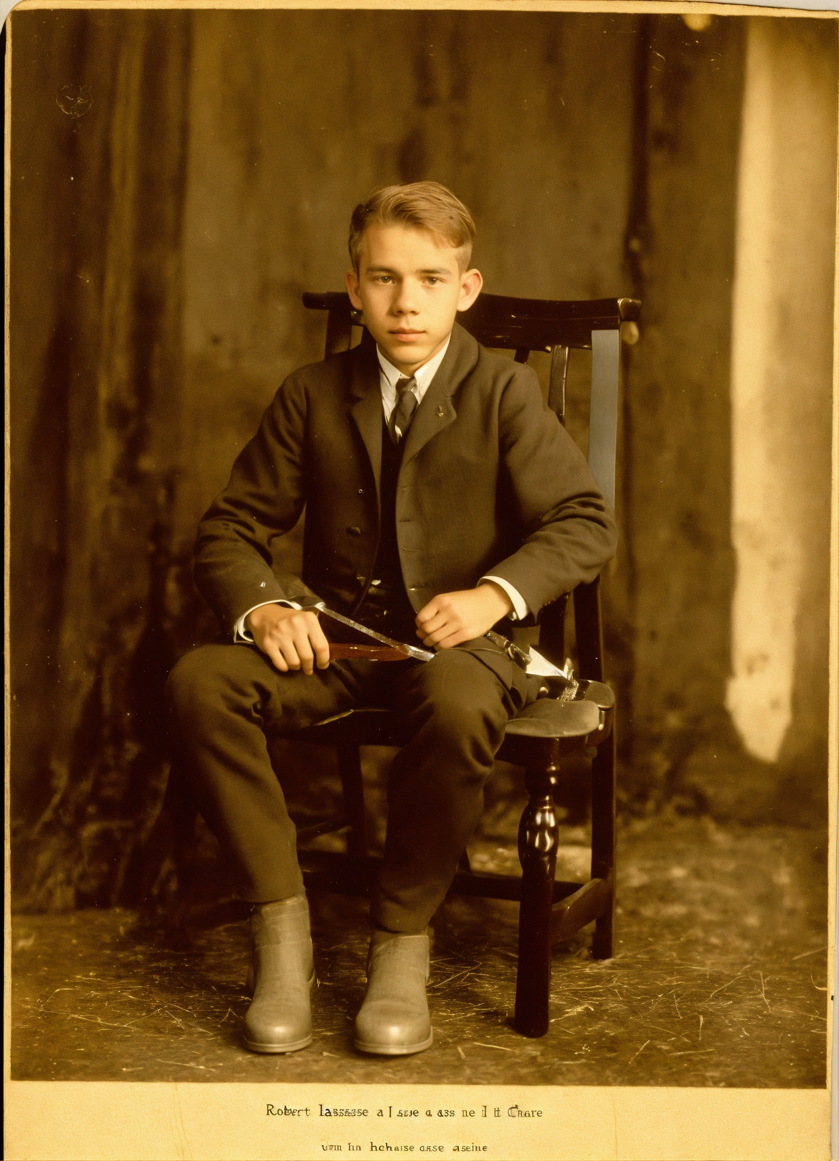 Une photo de robert hansen jeune assis sur une chaise face à nous qui tient un couteau