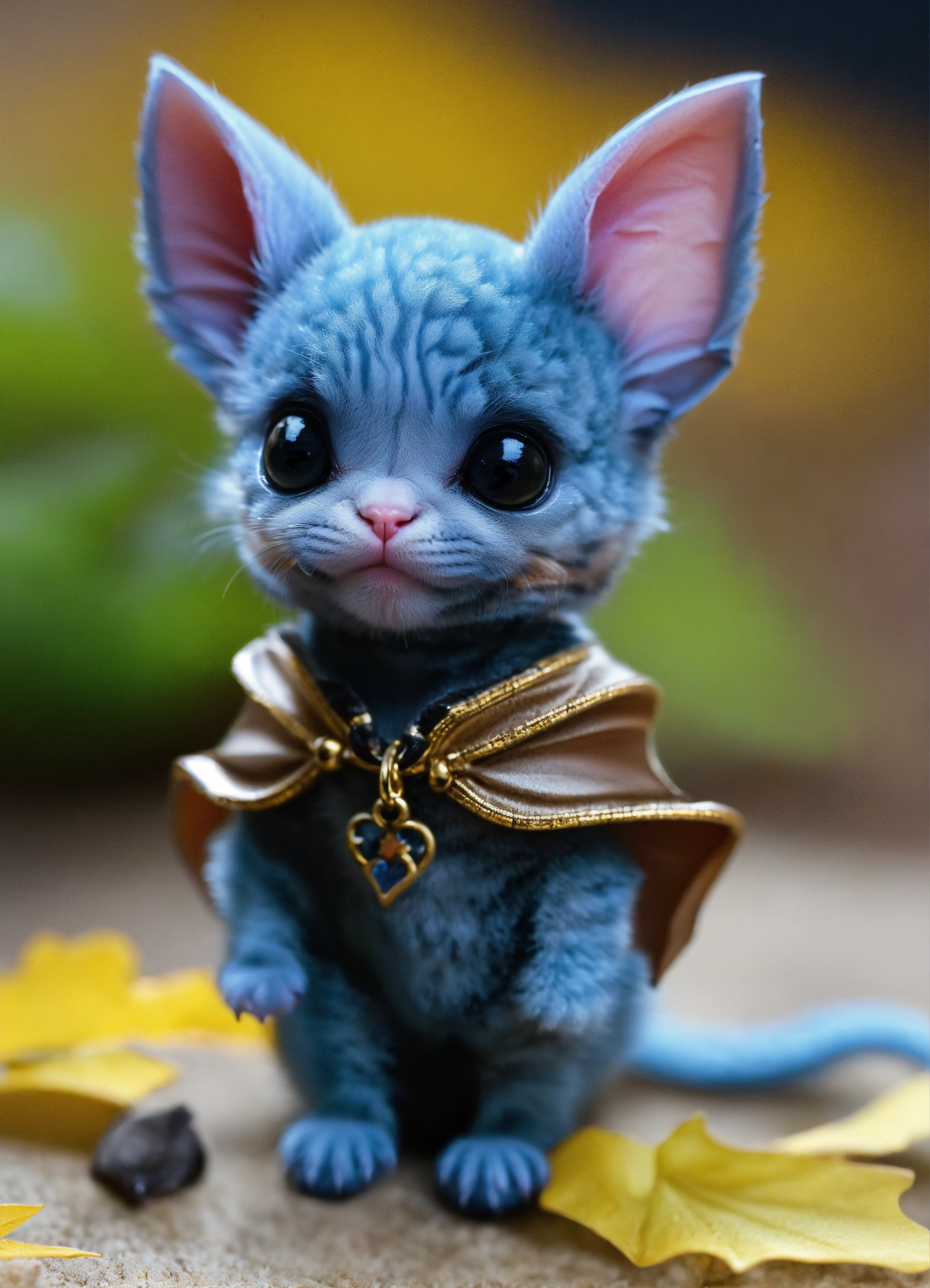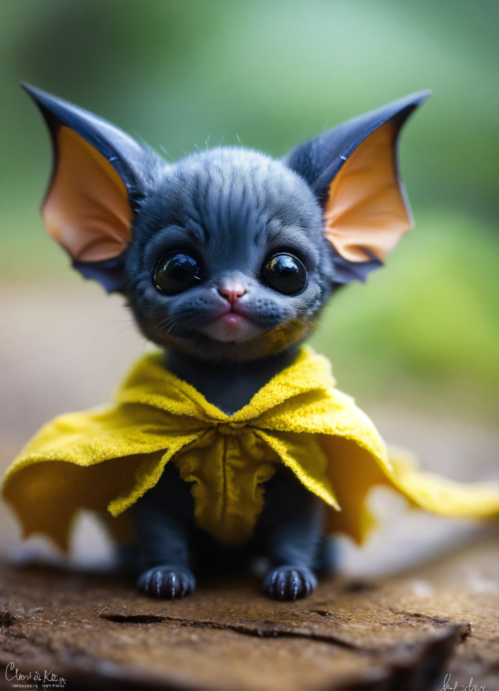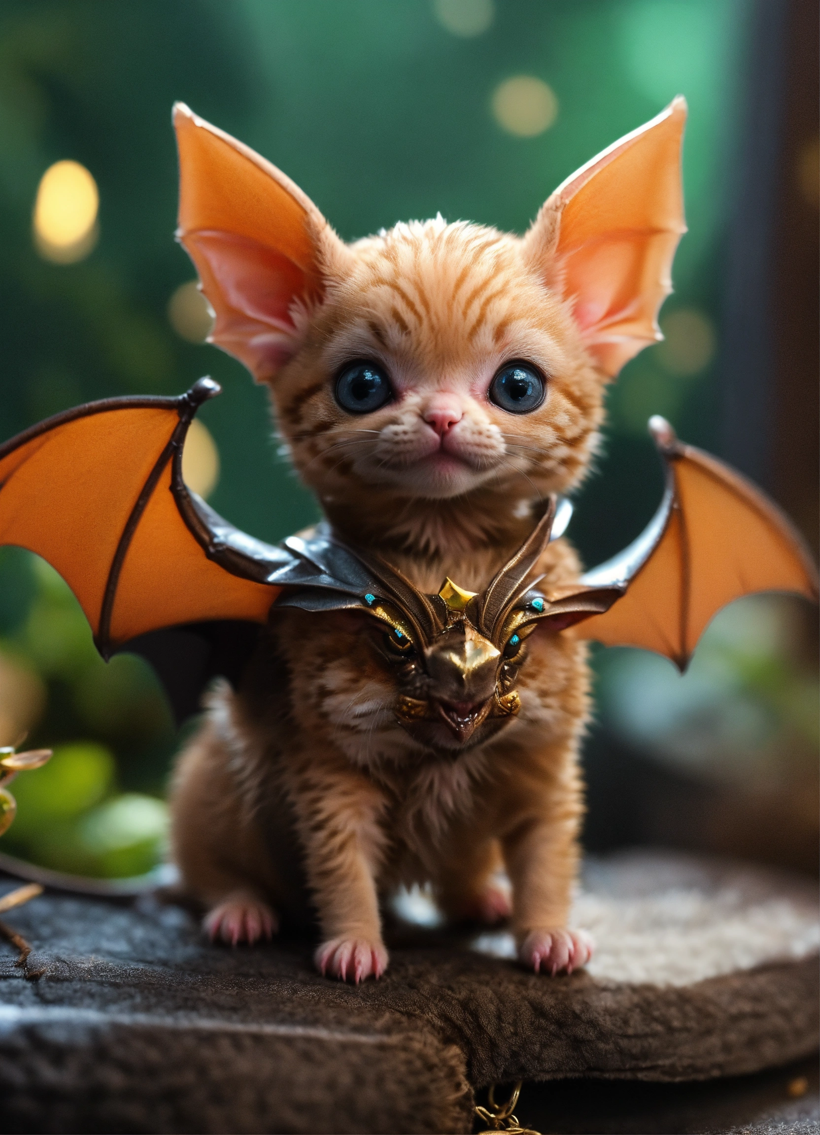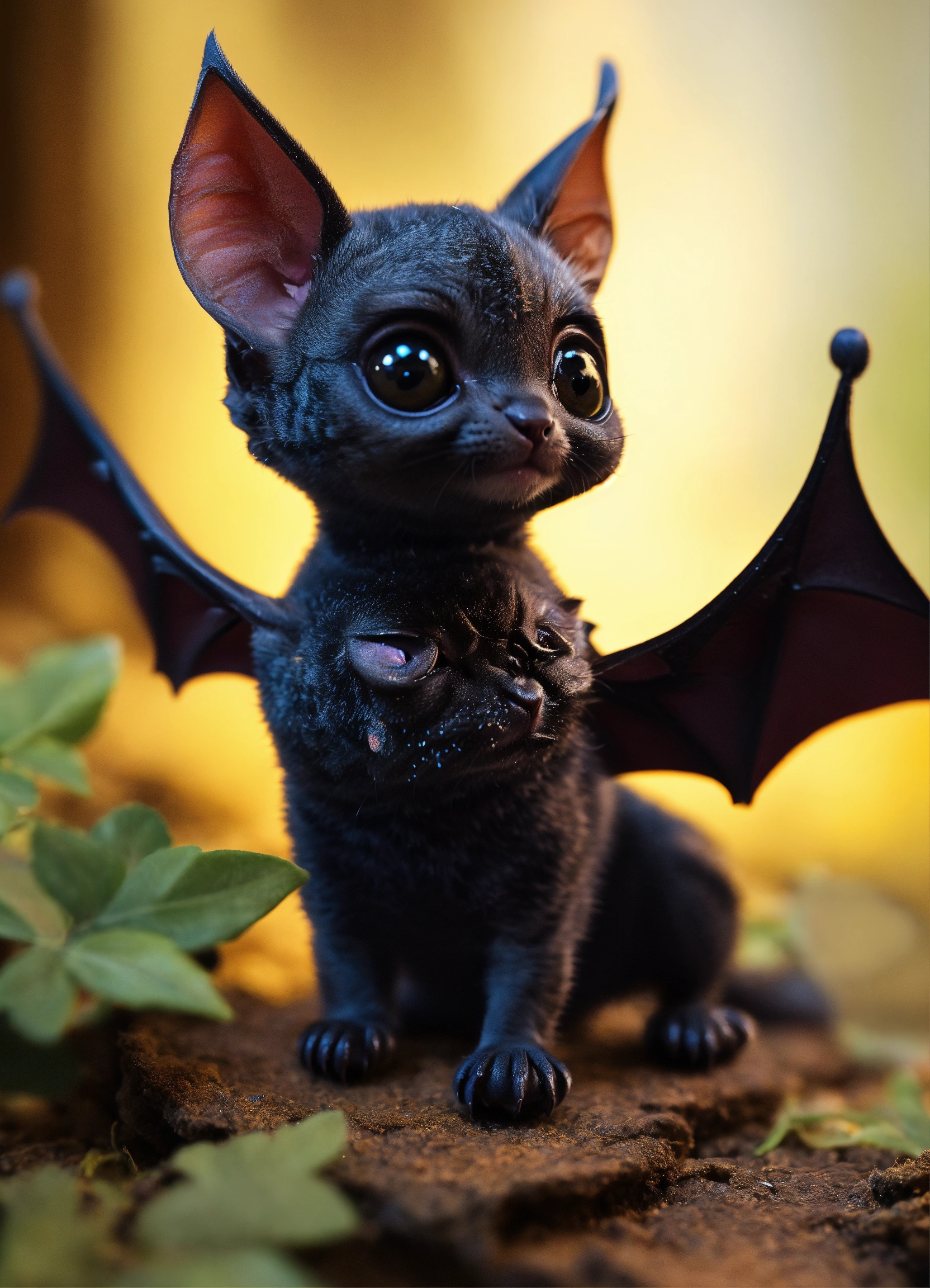 Create miniature fantasy cute animal hybrid baby bat kitten