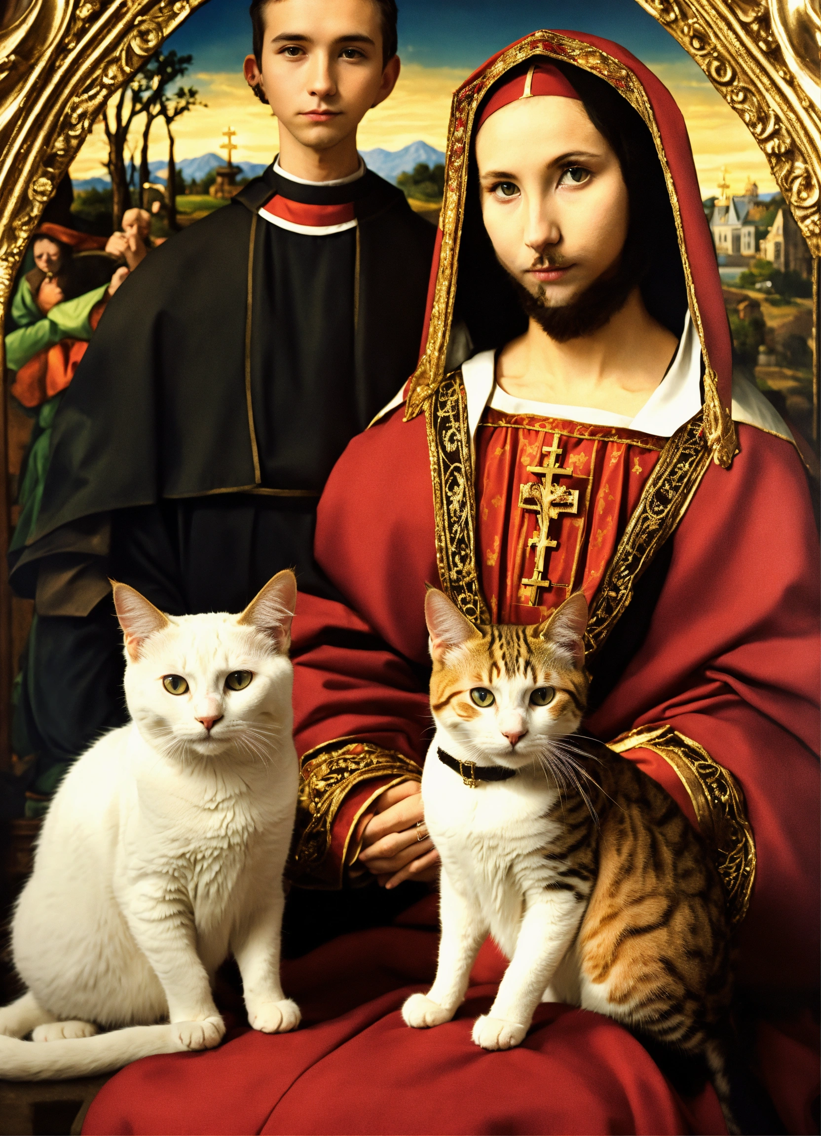 Cats dressed as catholic couple