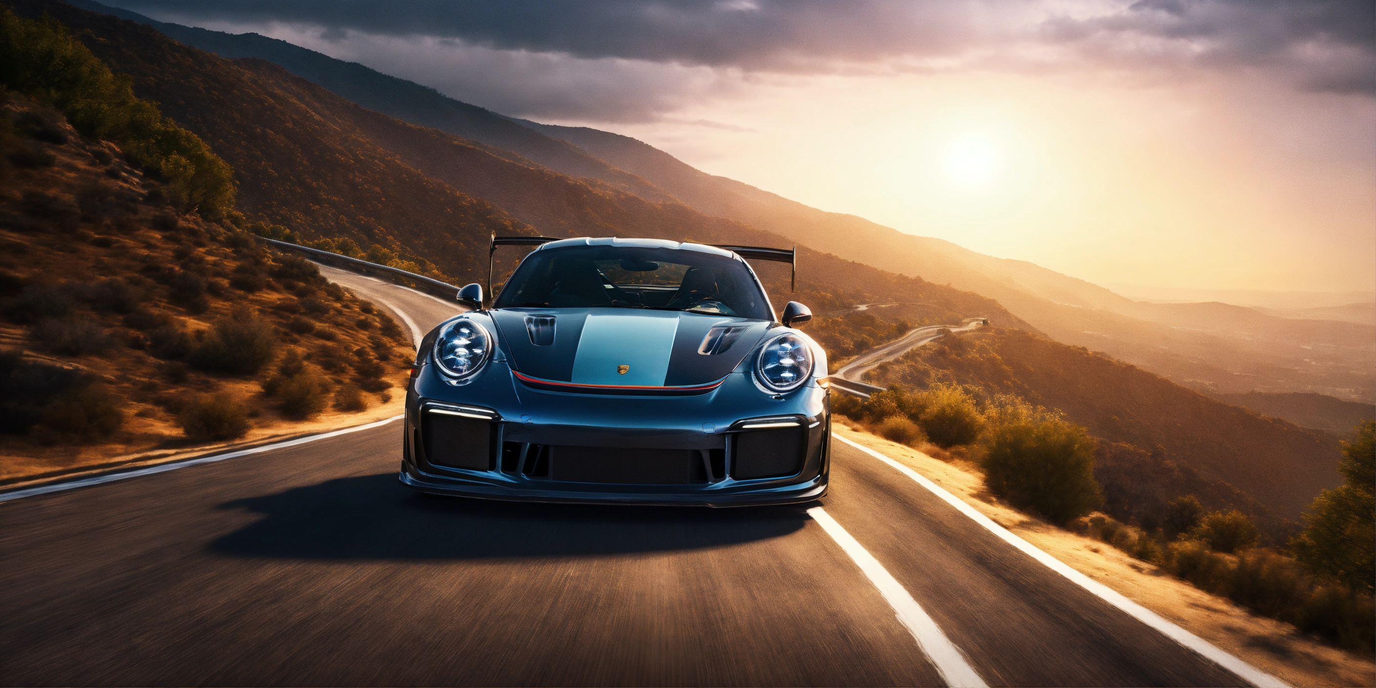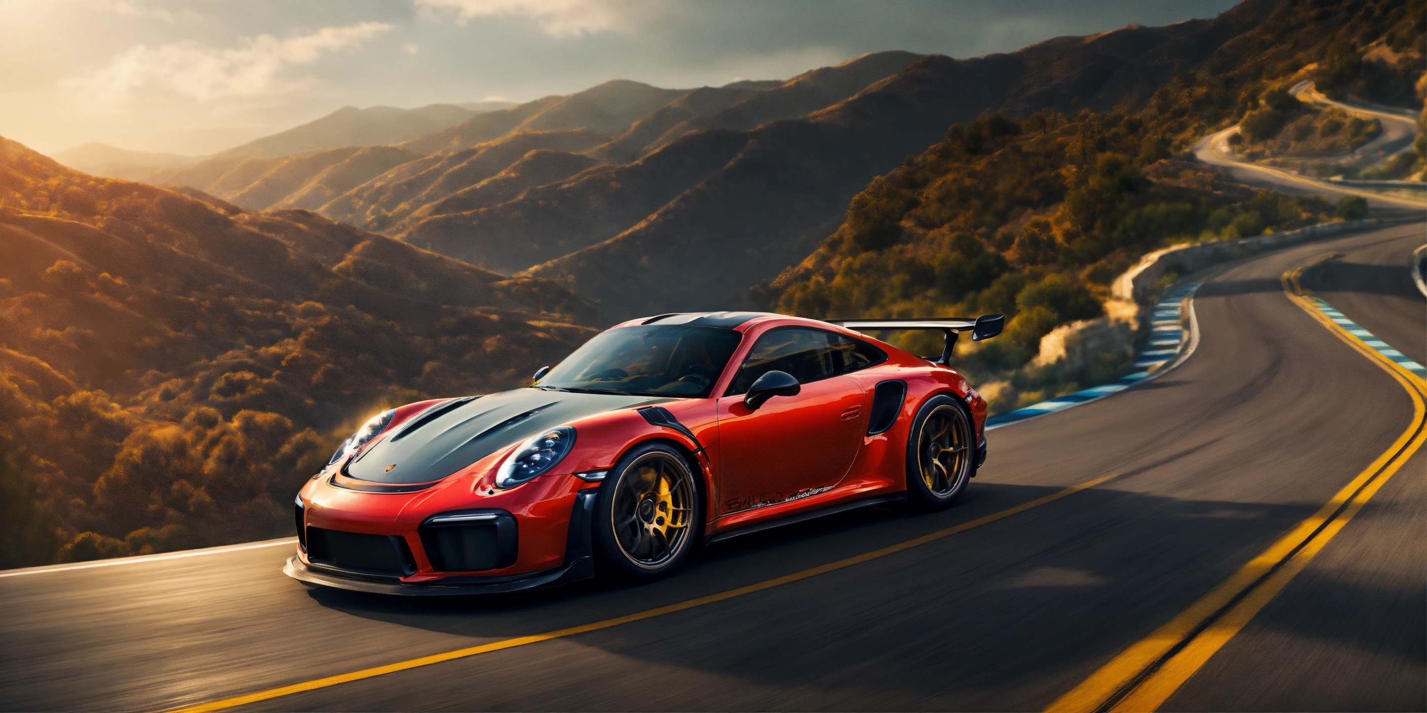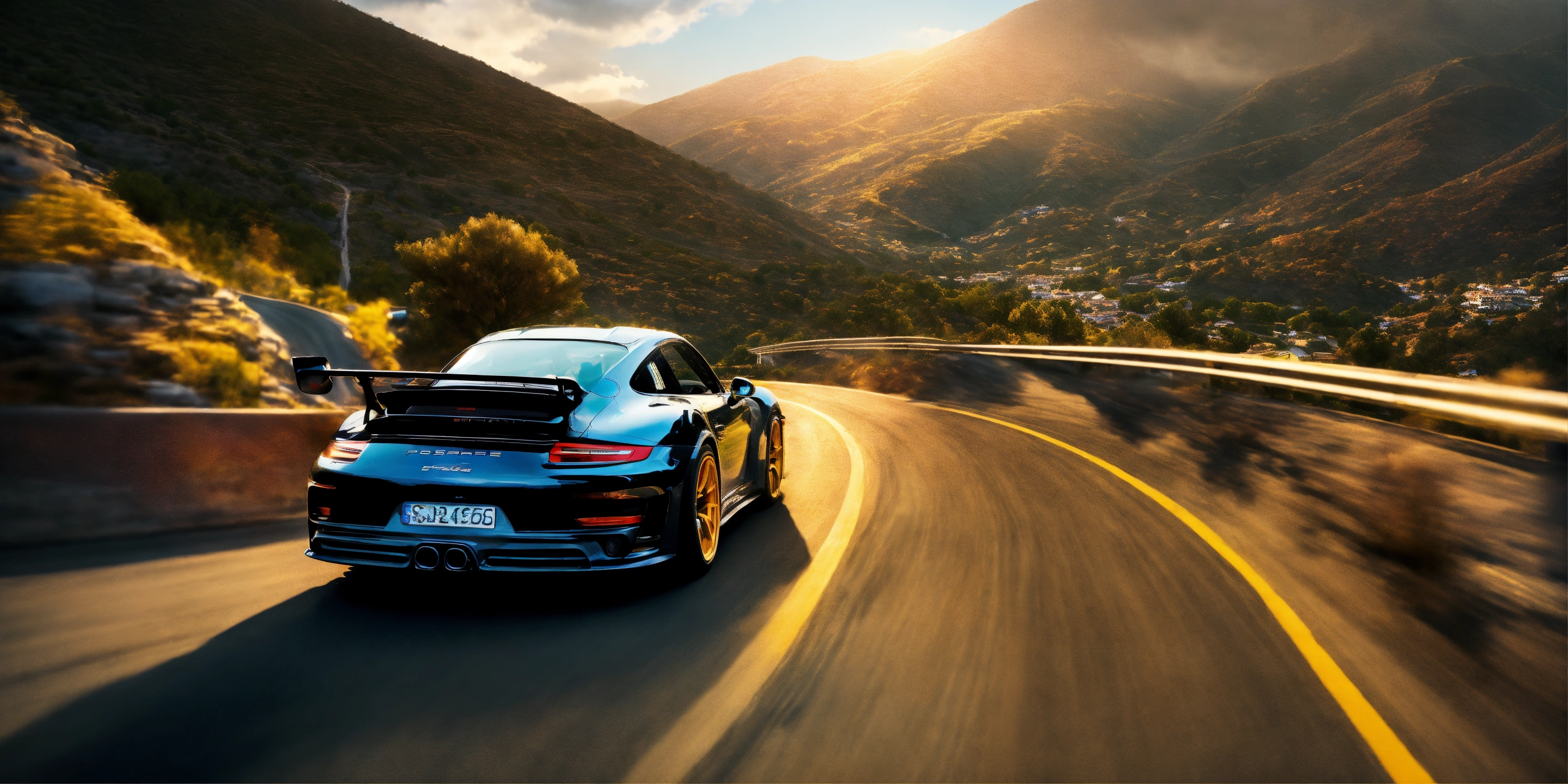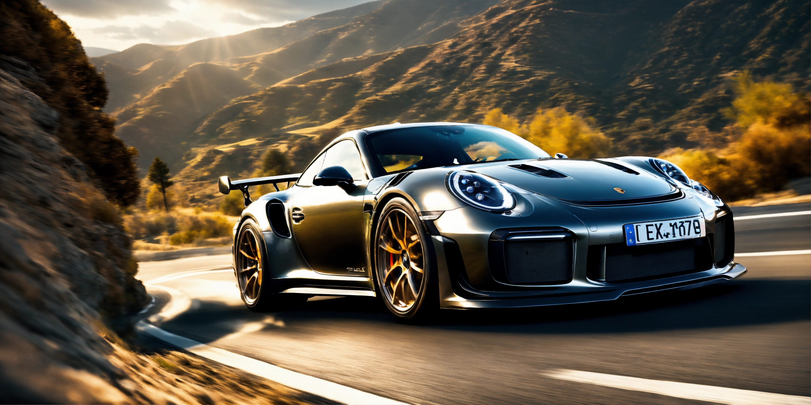 Gran turismo syle breathtaking black supercar-level porsche 911 gt2 rs descending a winding mountain road, with the most beautiful southern california natural landscape behind it, in atmospheric dramatic lighting, 4k high resolution, in the style of high quality 3d art generated by midjourney, in combination of slightly photorealistic style combined with slightly painted brush strokes style....but more cinematic and dramatic but now in a porsche cinematic widescreen modern advertisement