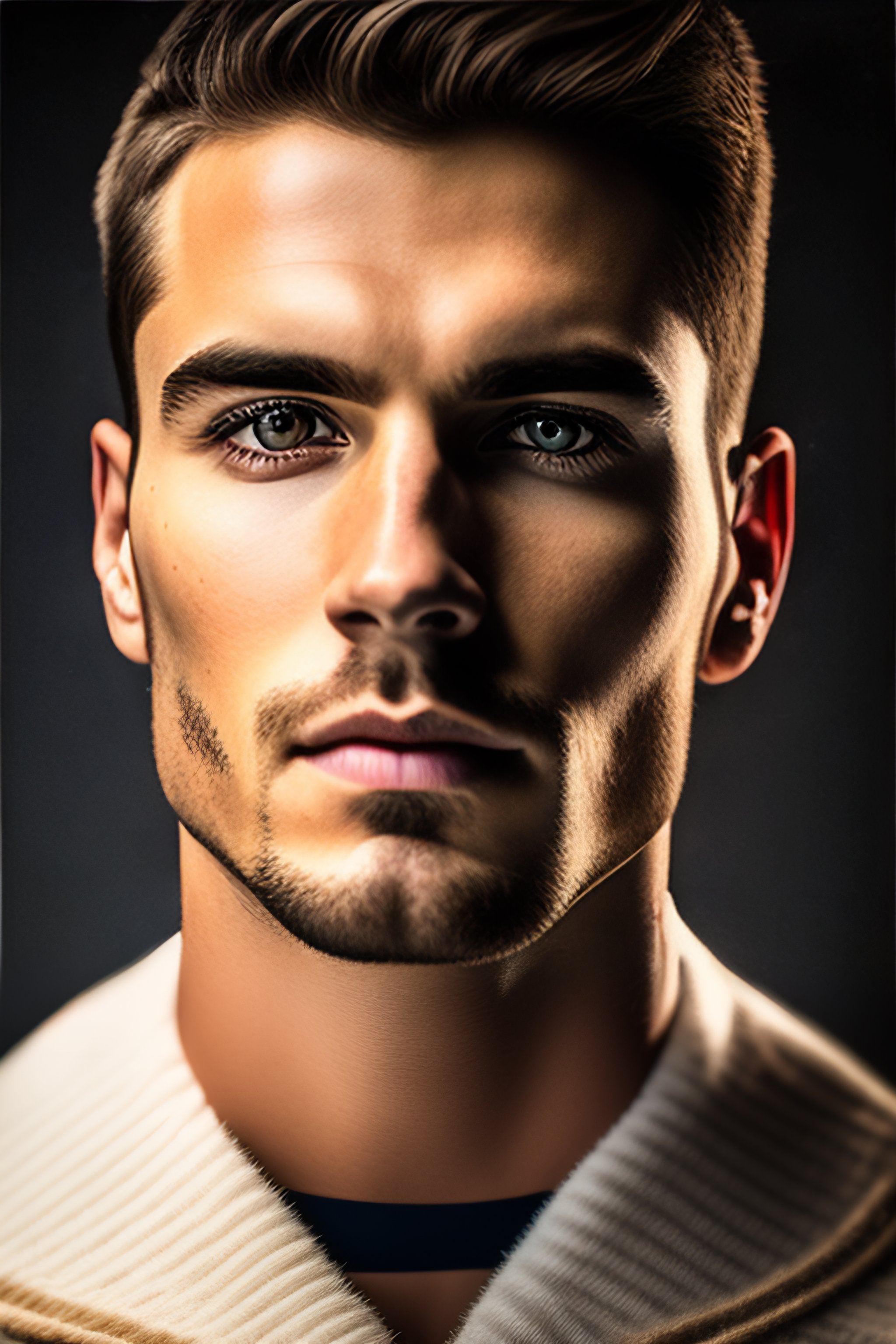 Centered in frame, facing camera, symmetrical face, ideal human, 85mm lens, f8, photography, ultra details, natural light, light background, photo, studio lighting