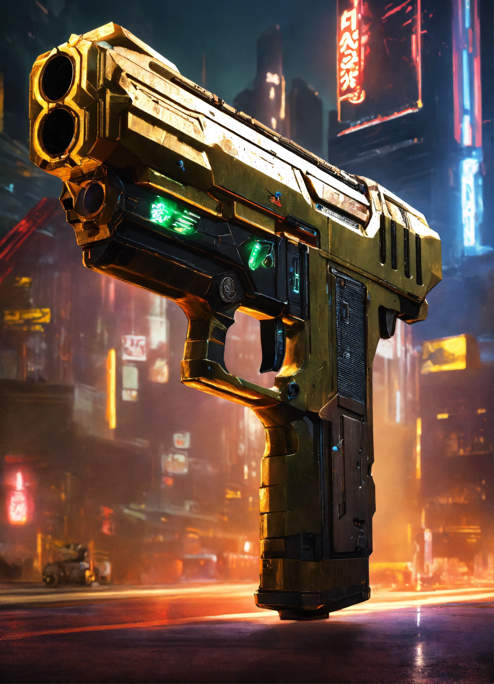 The nexusfire, a marvel of cyberpunk ingenuity, is a pistol of the future crafted by the skilled artisans at acer. this remarkable firearm possesses the extraordinary capability to discharge incendiary projectiles, unleashing a scorching inferno upon its intended target, inflicting a searing and lasting damage. this state-of-the-art armament amalgamates streamlined aesthetics with formidable technological prowess, rendering it a cherished choice amidst cybernetic mercenaries and law enforcement entities alike.