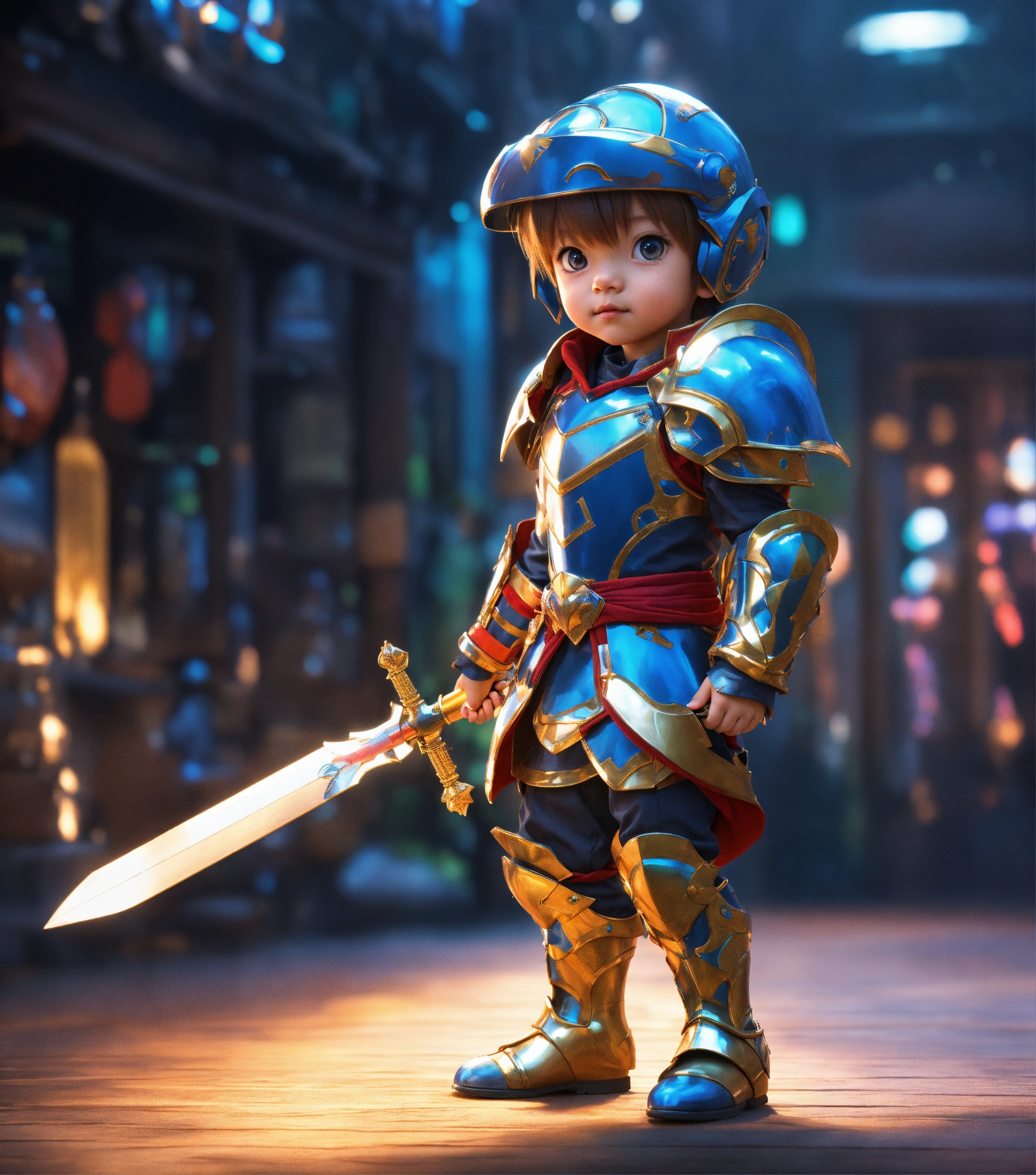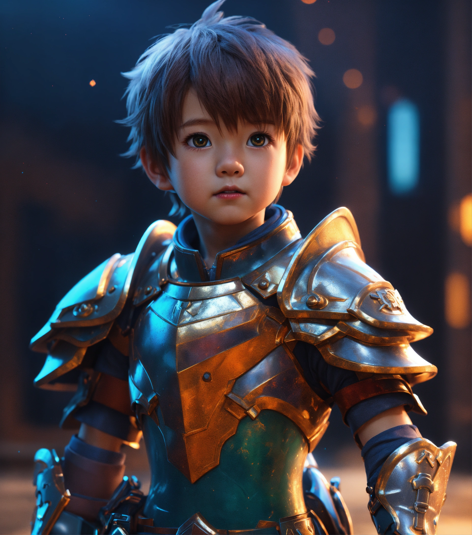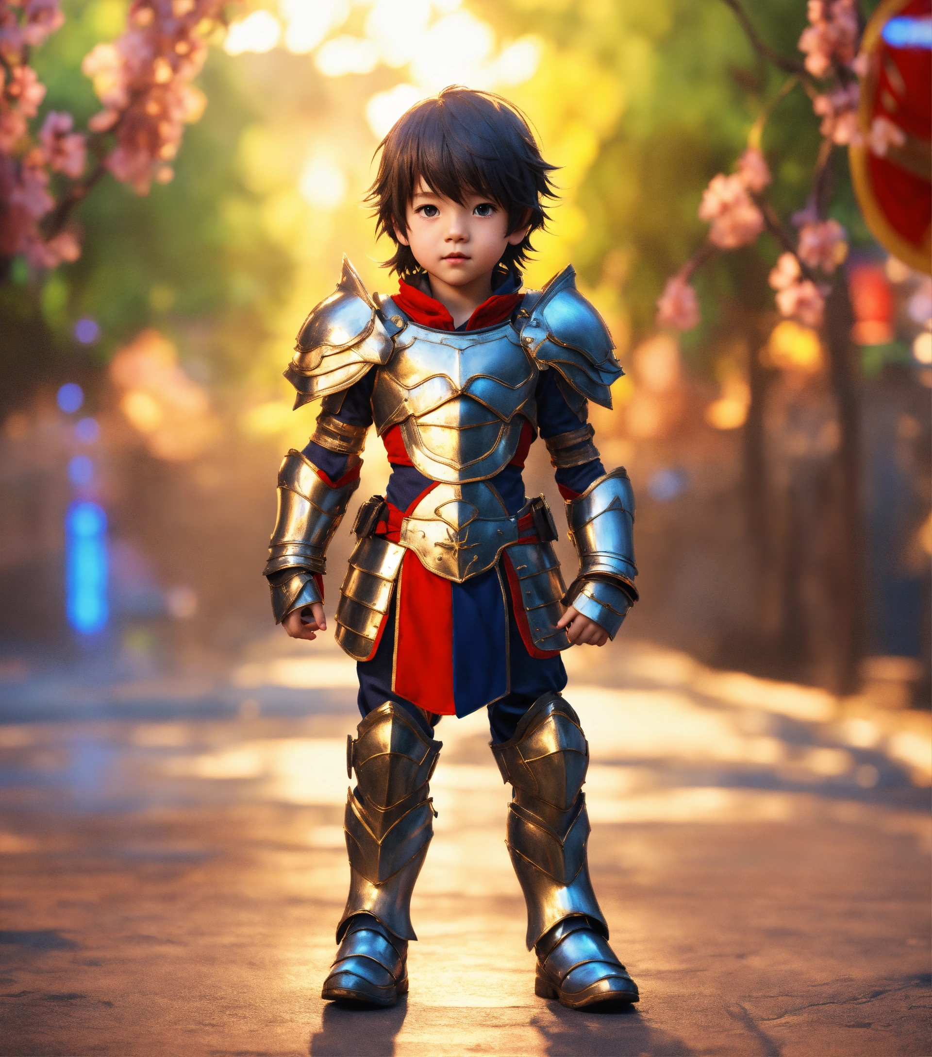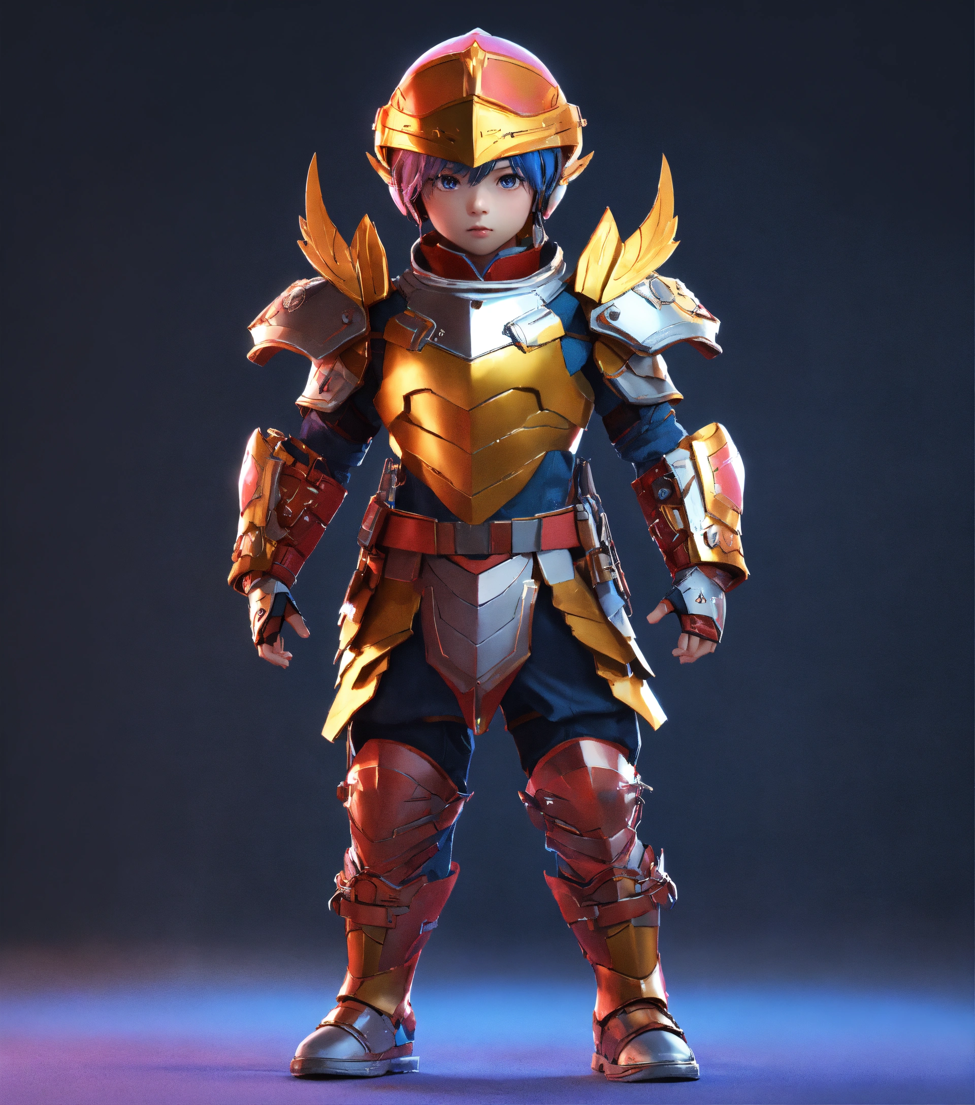 4d photographic image of full body image of a cute little anime boy wearing armor realistic, vivid colors octane render trending on artstation, artistic photography, photorealistic concept art, soft natural volumetric cinematic perfect light, uhd no background