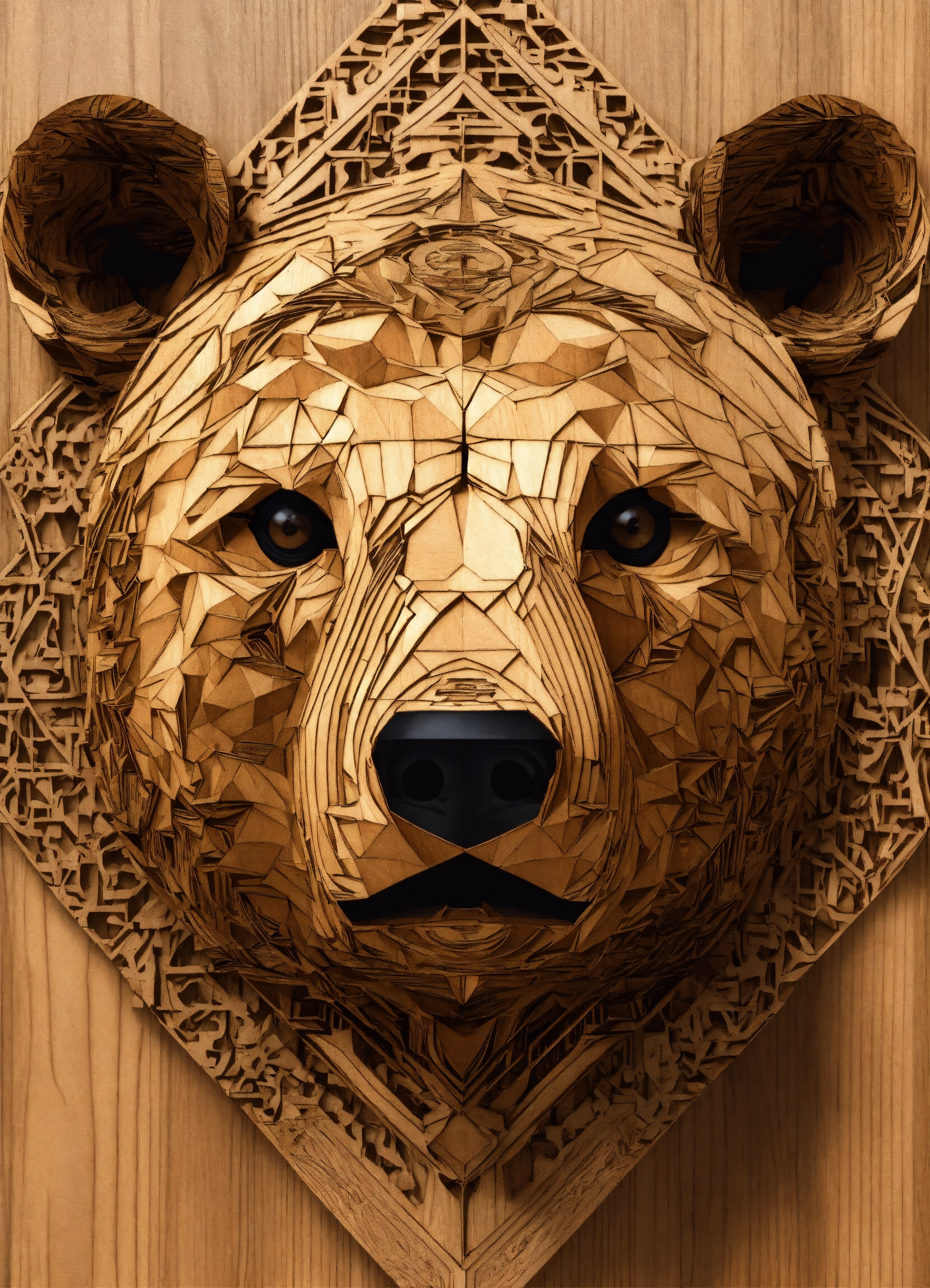 3d laser burn png | | | |laser-ready engraving design | high-res 300dpi digital file geometric patterns fractal engraved in wood 4k detailed bear