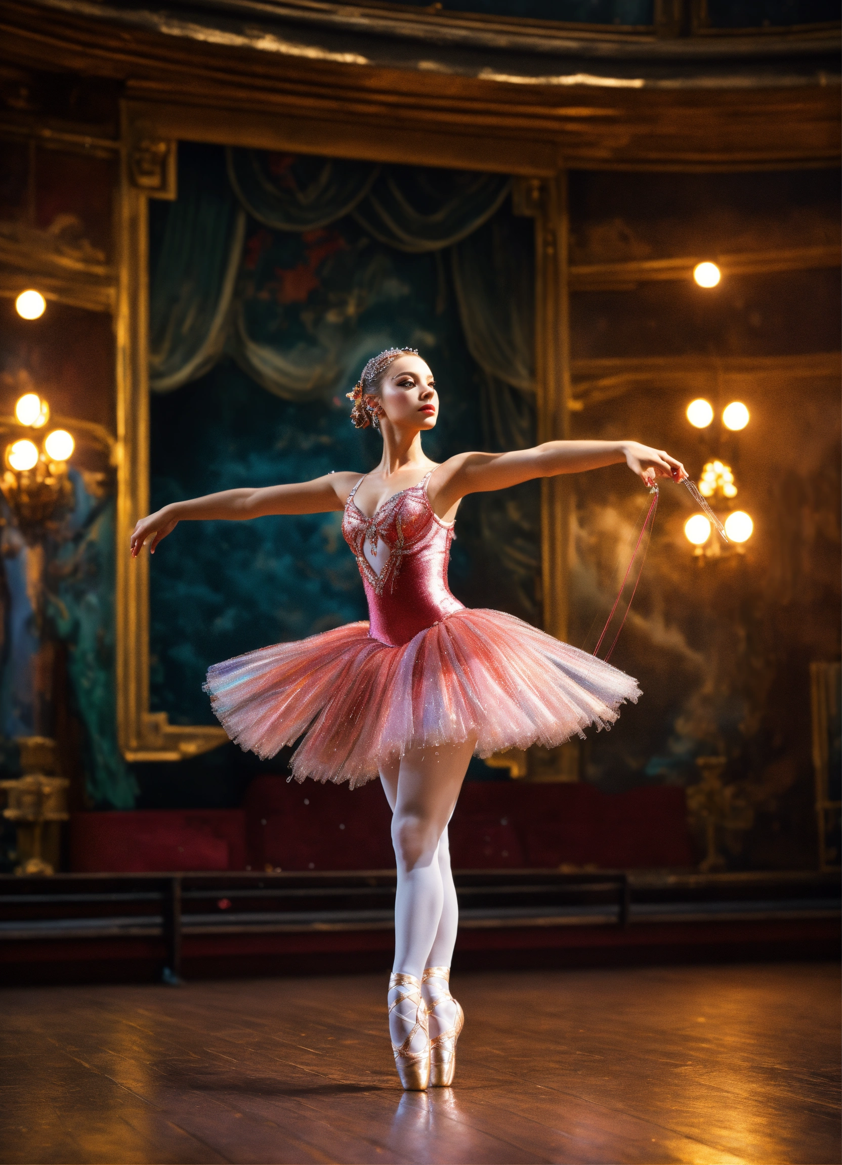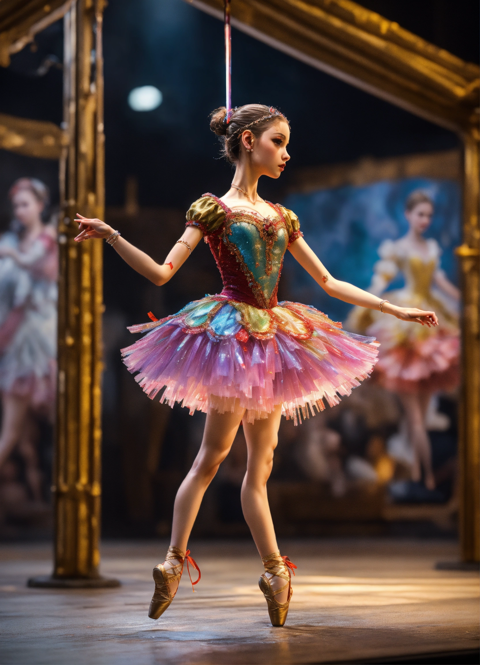 Cute, sparkling female ballerina puppet on strings at a russian theatre.highly detailed, photorealistic, 8k resolution.intricate details, hdr, beautifully shot, hyperrealistic, sharp focus, 64 megapixels, perfect composition, high contrast, cinematic, moody. graffiti art, splash art, street art, spray paint, oil gouache melting, acrylic, high contrast, colorful polychromatic, ultra detailed, ultra quality, cgsociety