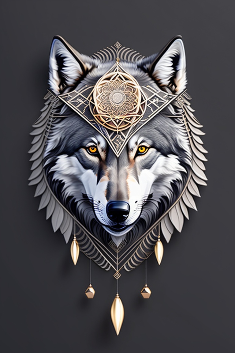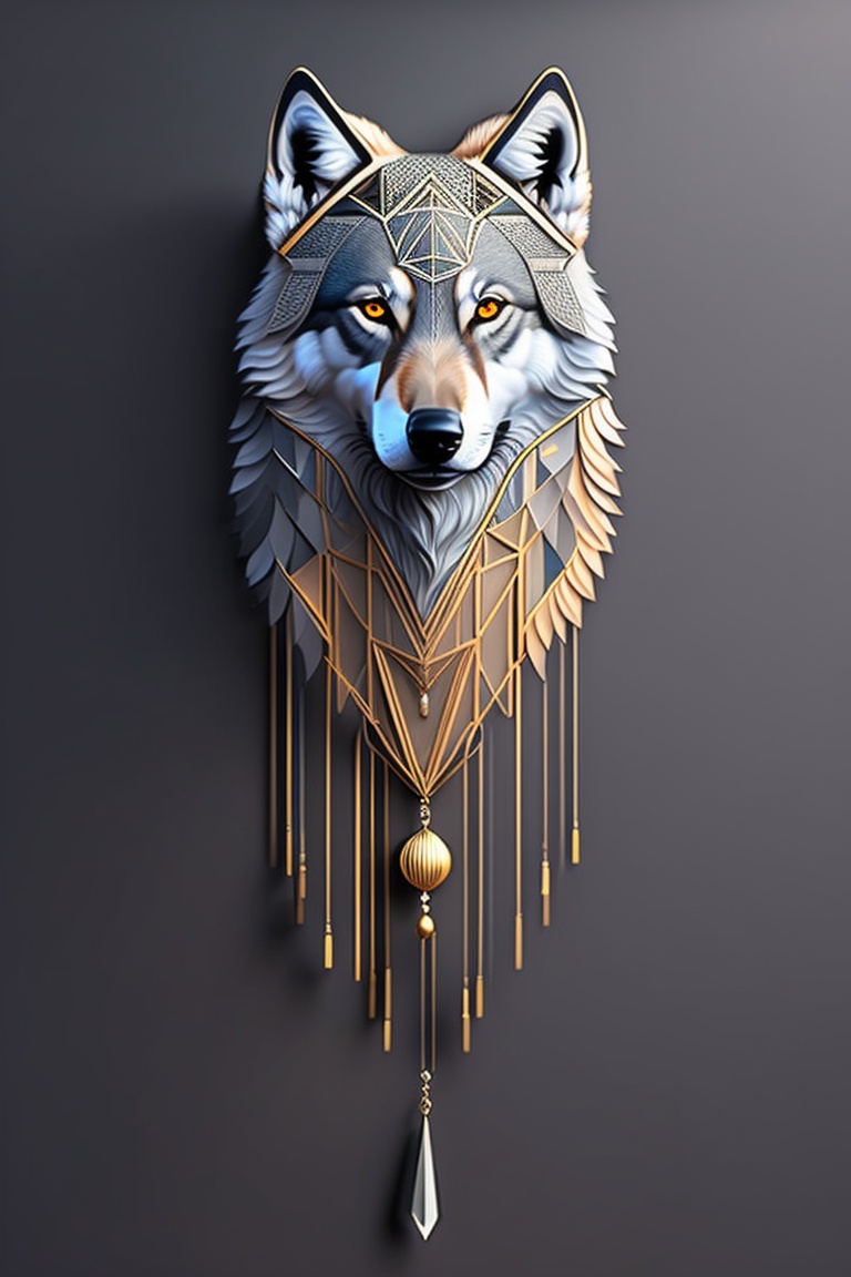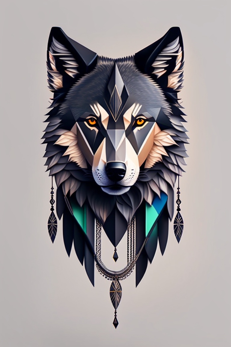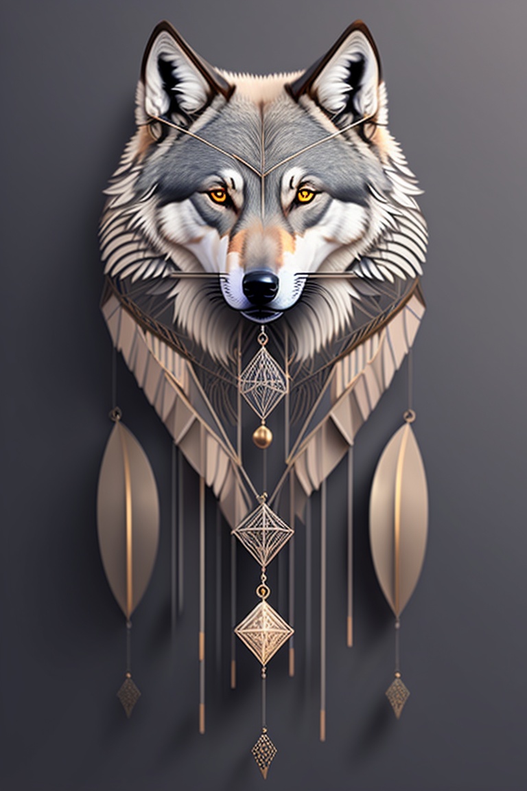 A geometric minimalist wolf forming a strings of dream catcher tattoo