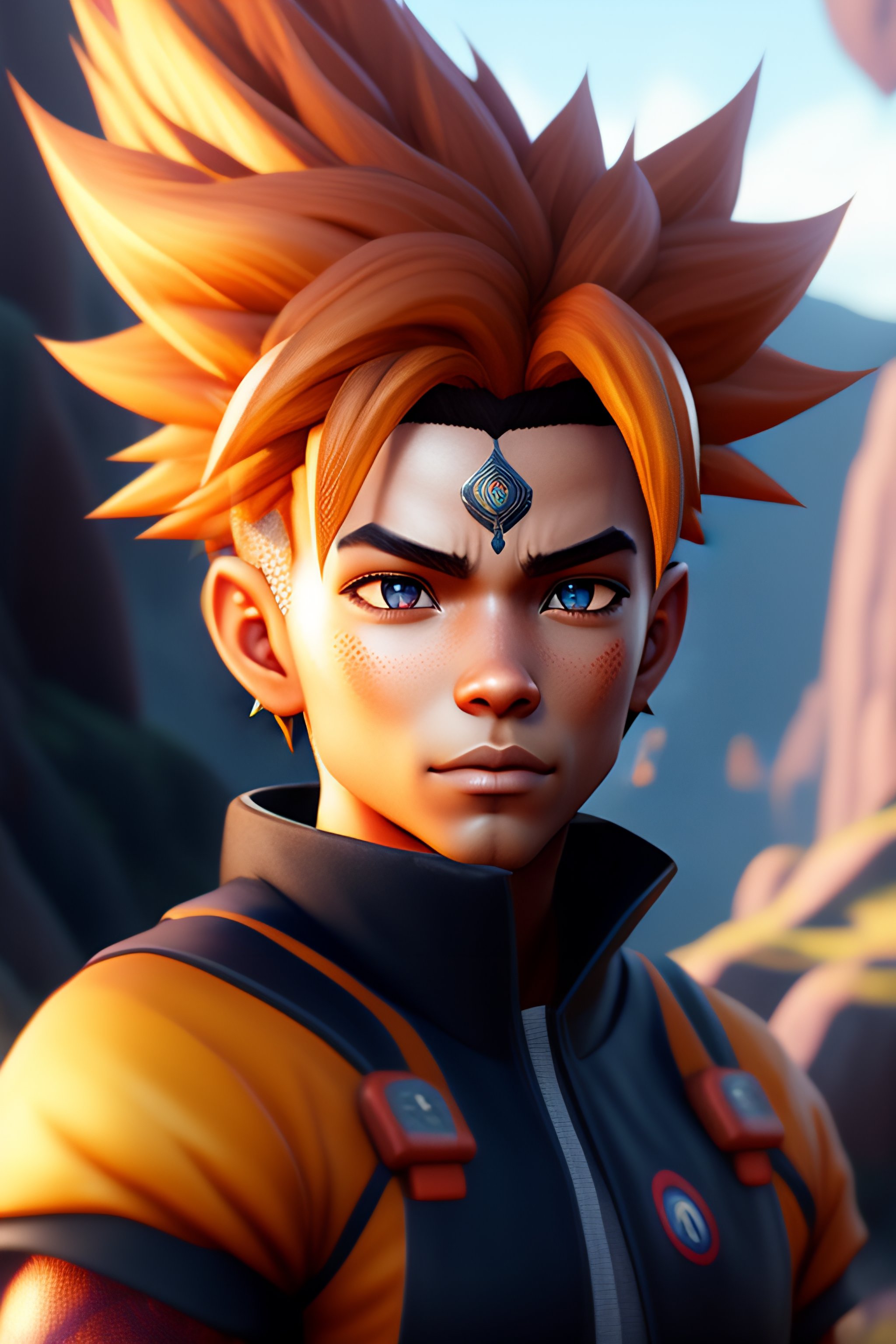 Highly detailed hyperrealistic portrait of a mix between goku and naruto, stephen bliss, unreal engine, fantasy art by greg rutkowski, loish, rhads, ferdinand knab, makoto shinkai and lois van baarle, ilya kuvshinov, rossdraws, tom bagshaw, alphonse mucha, global illumination, radiant light, detailed and intricate environment