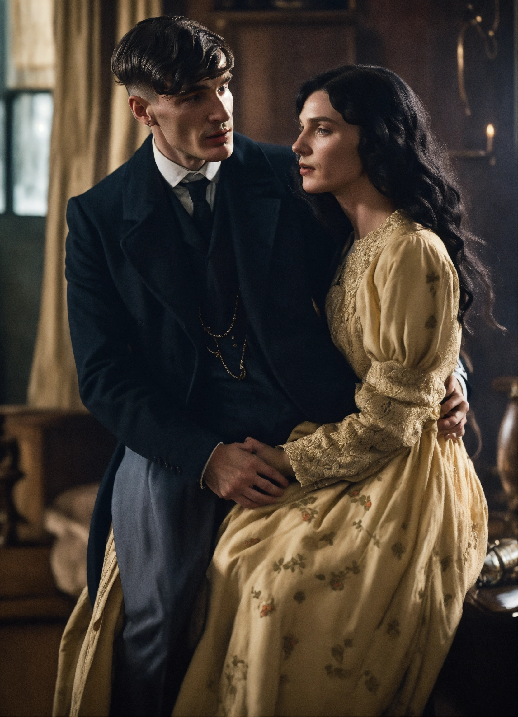 Thomas shelby kilian murphy hugs a beautiful girl with black wavy hair