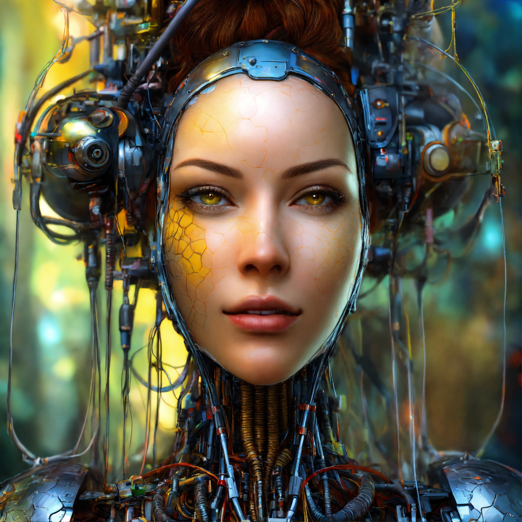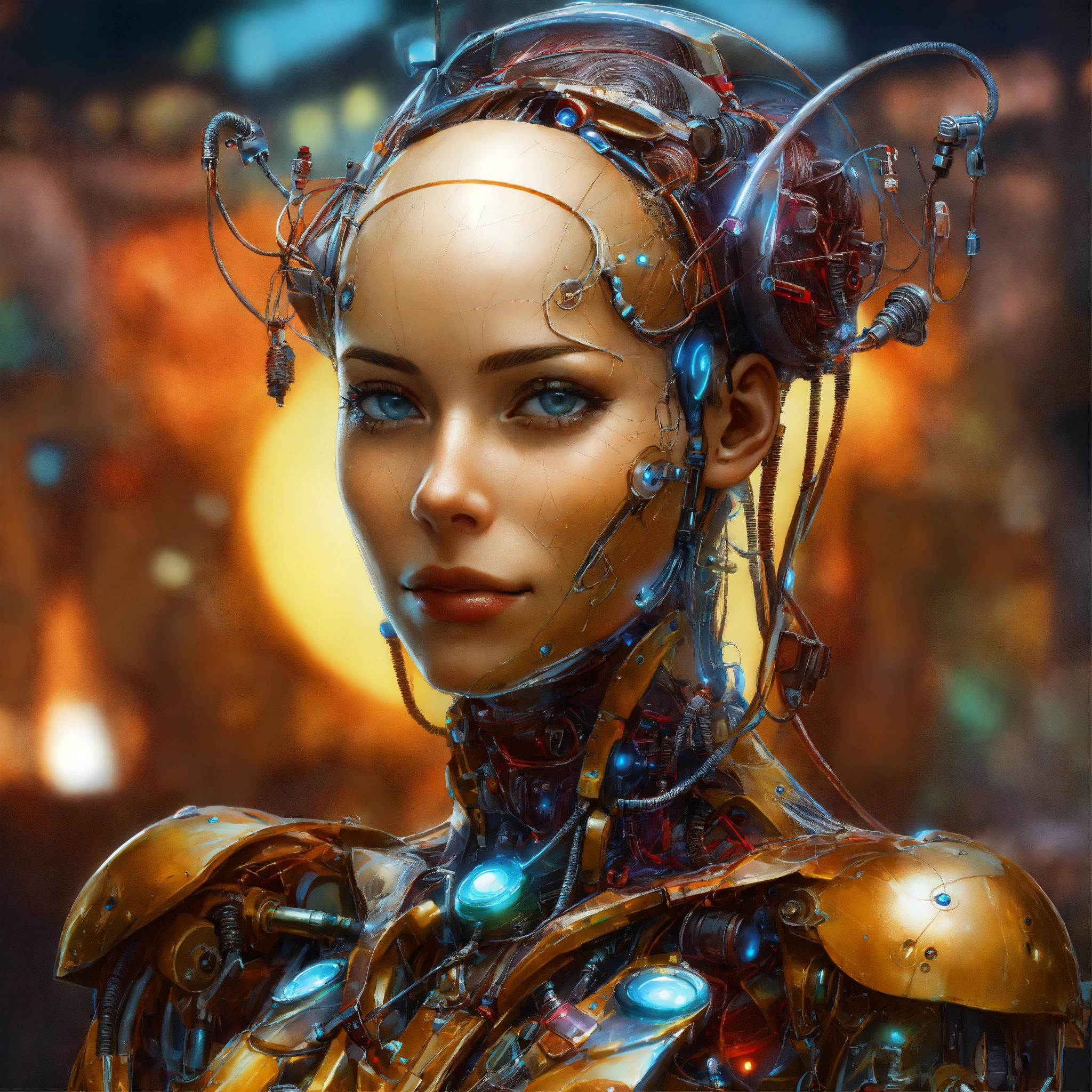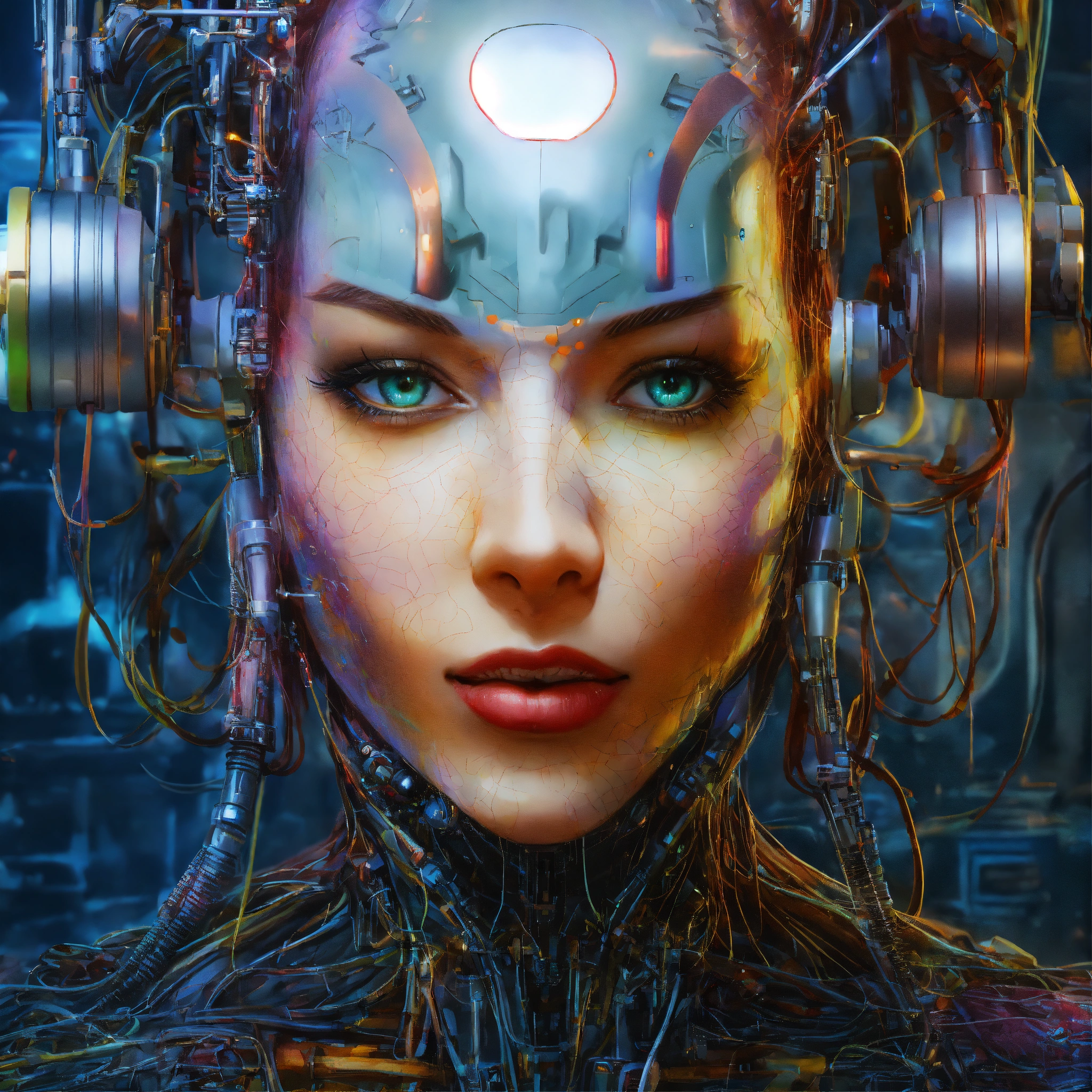 The tricky cyborg lady neural network smiles and winks, very beautiful, 8k, very coherent, surrealism, airbrush, realistic detailed image of a mark brooks, in the style of francis bacon