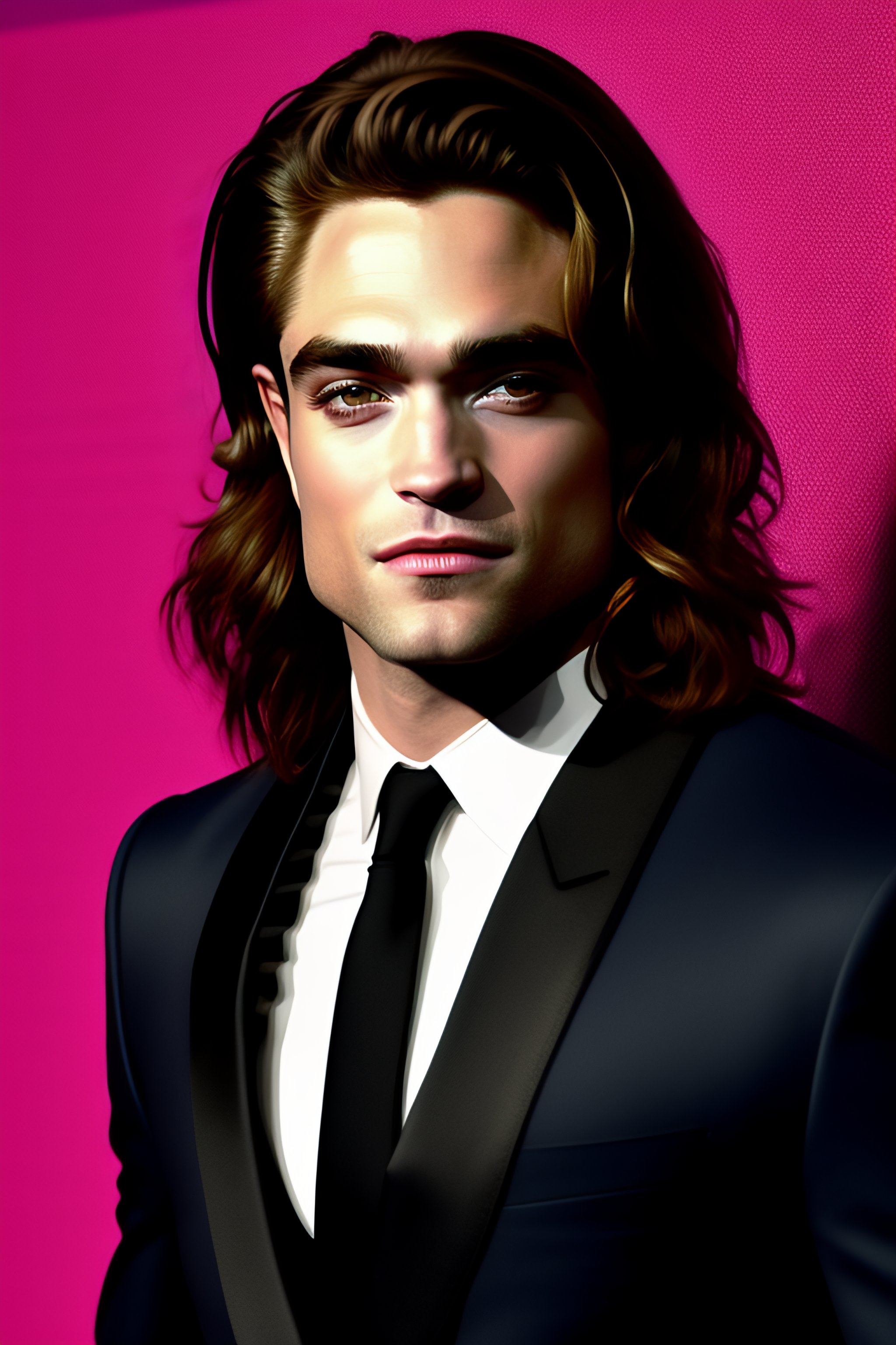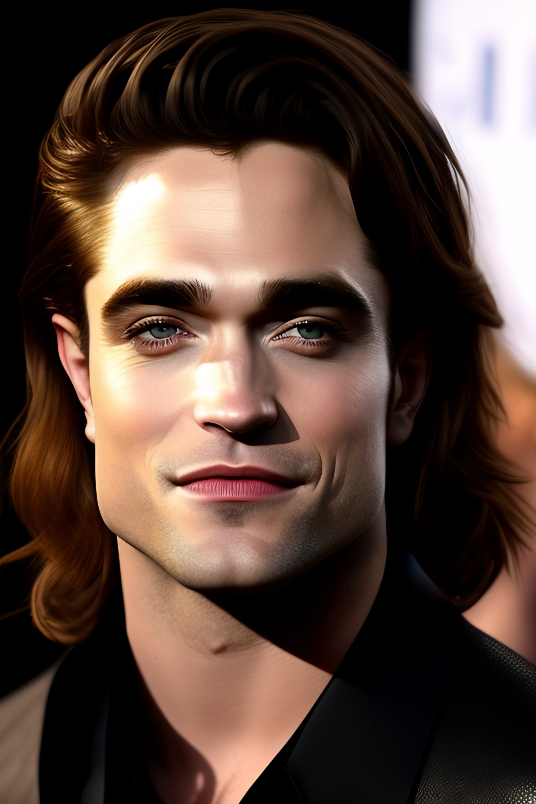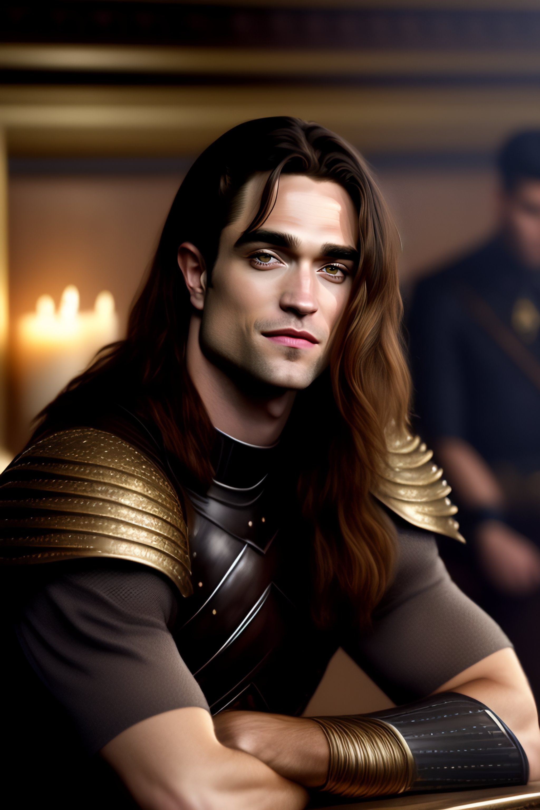 Thin robert pattinson with long hair and in the black armour