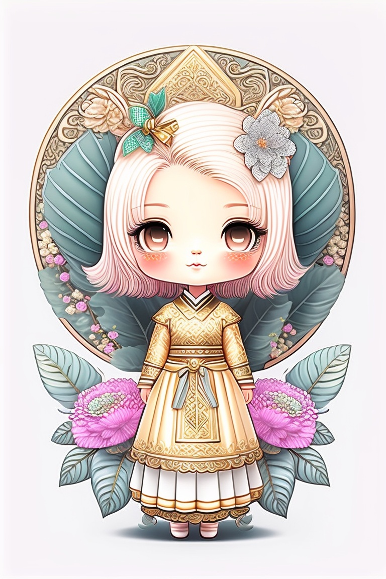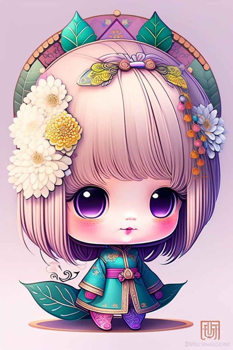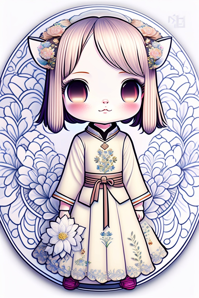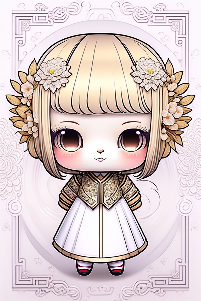 Cute monster girl, chinese astrology, line drawing, clean clear lines, coloring book style, matte, intricate details, asian style art, chrysanthemums