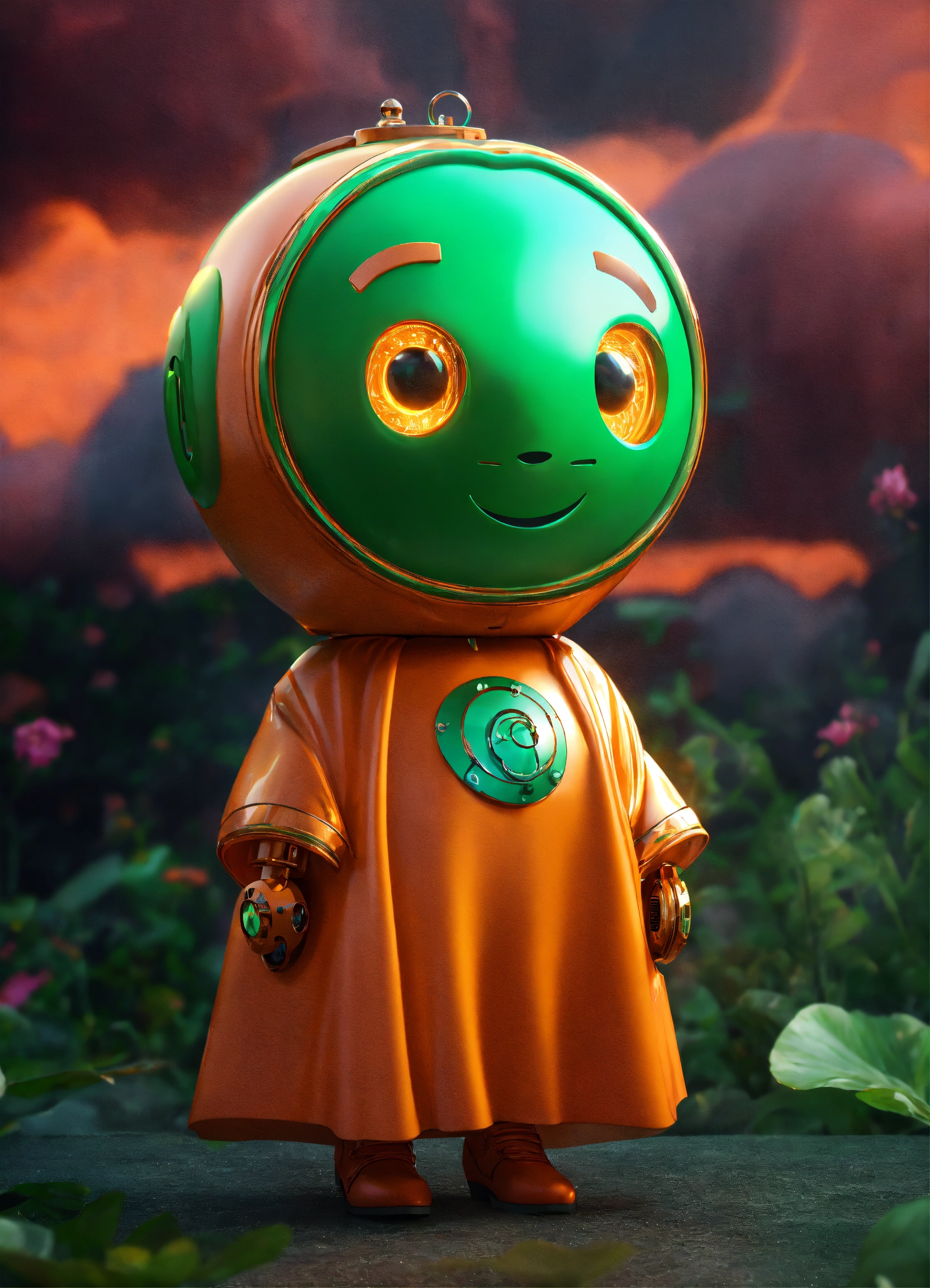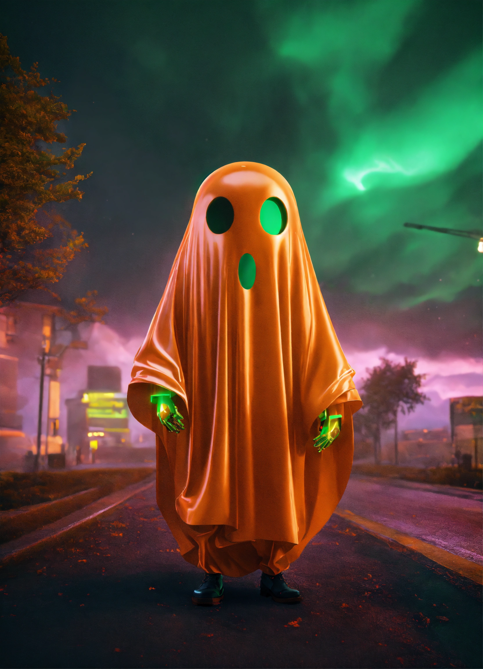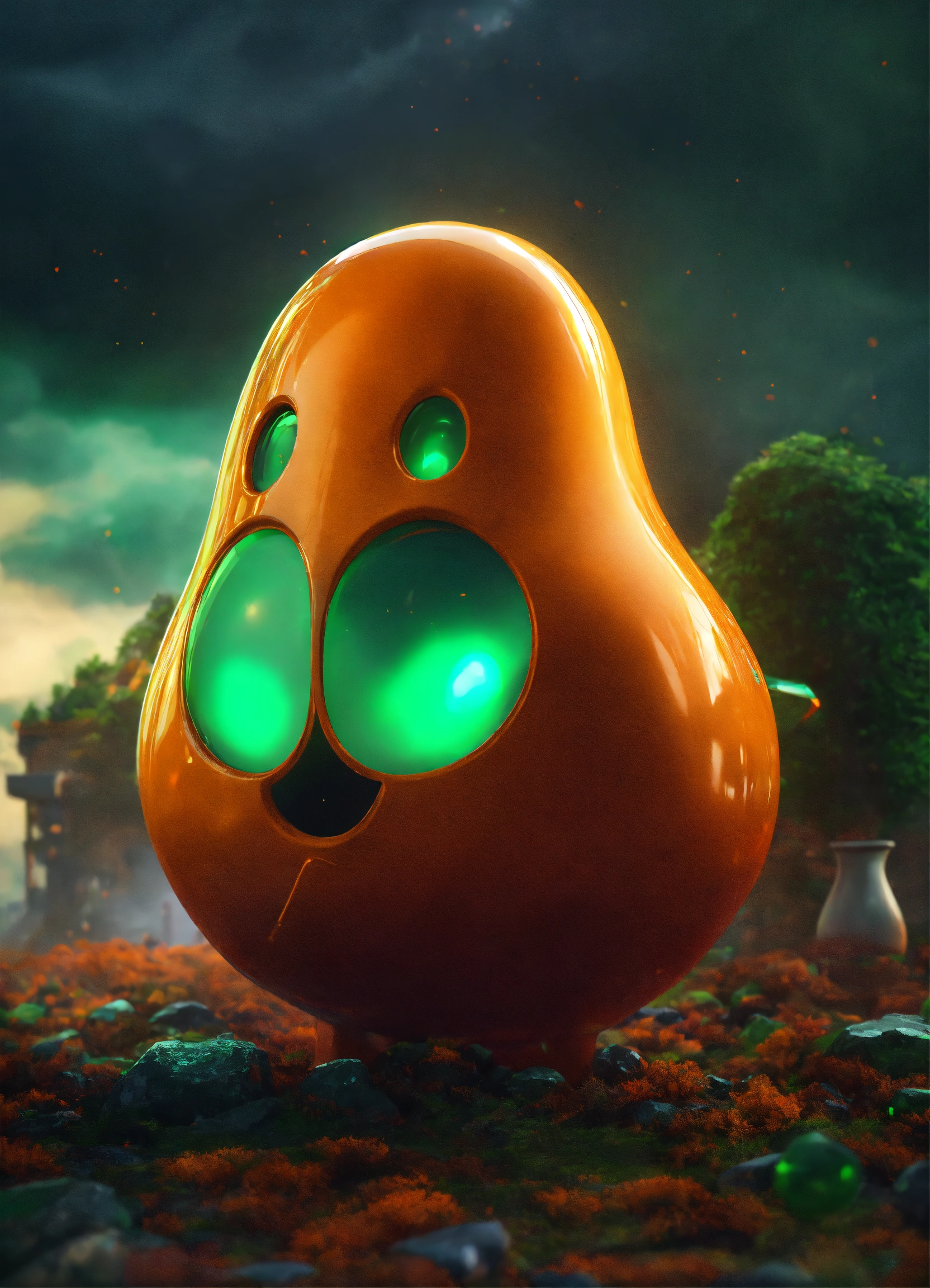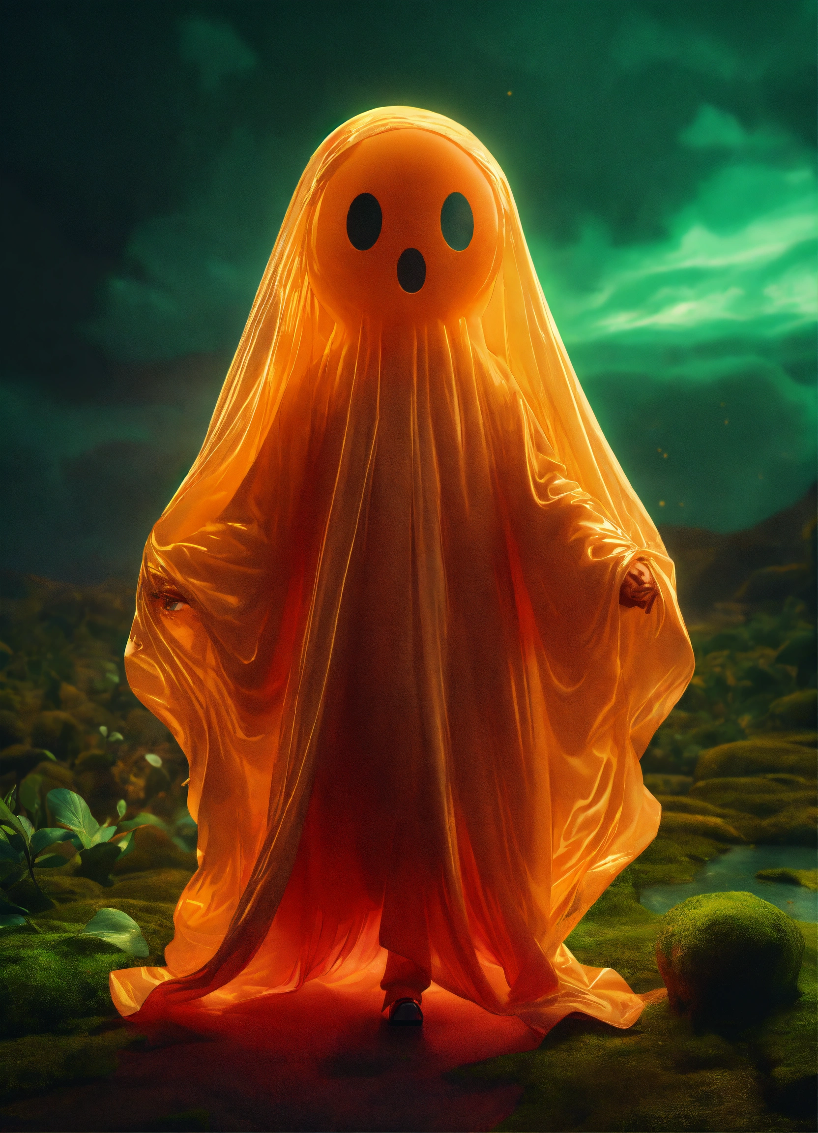 Orange ruby casper the friendly ghost concept, made out of green dark clouds, luxury, futurist, stunning unreal engine render, product photography, 8k, hyper-realistic. surrealism