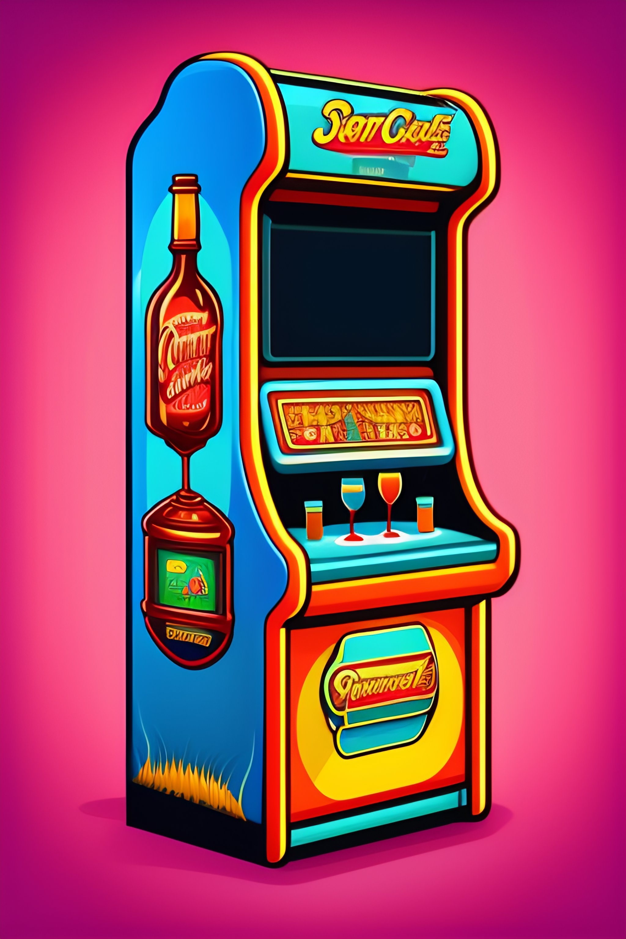 Arcade machine with soda cartoon vector icon illustration, recreation technology icon concept isolated premium vector, flat cartoon style