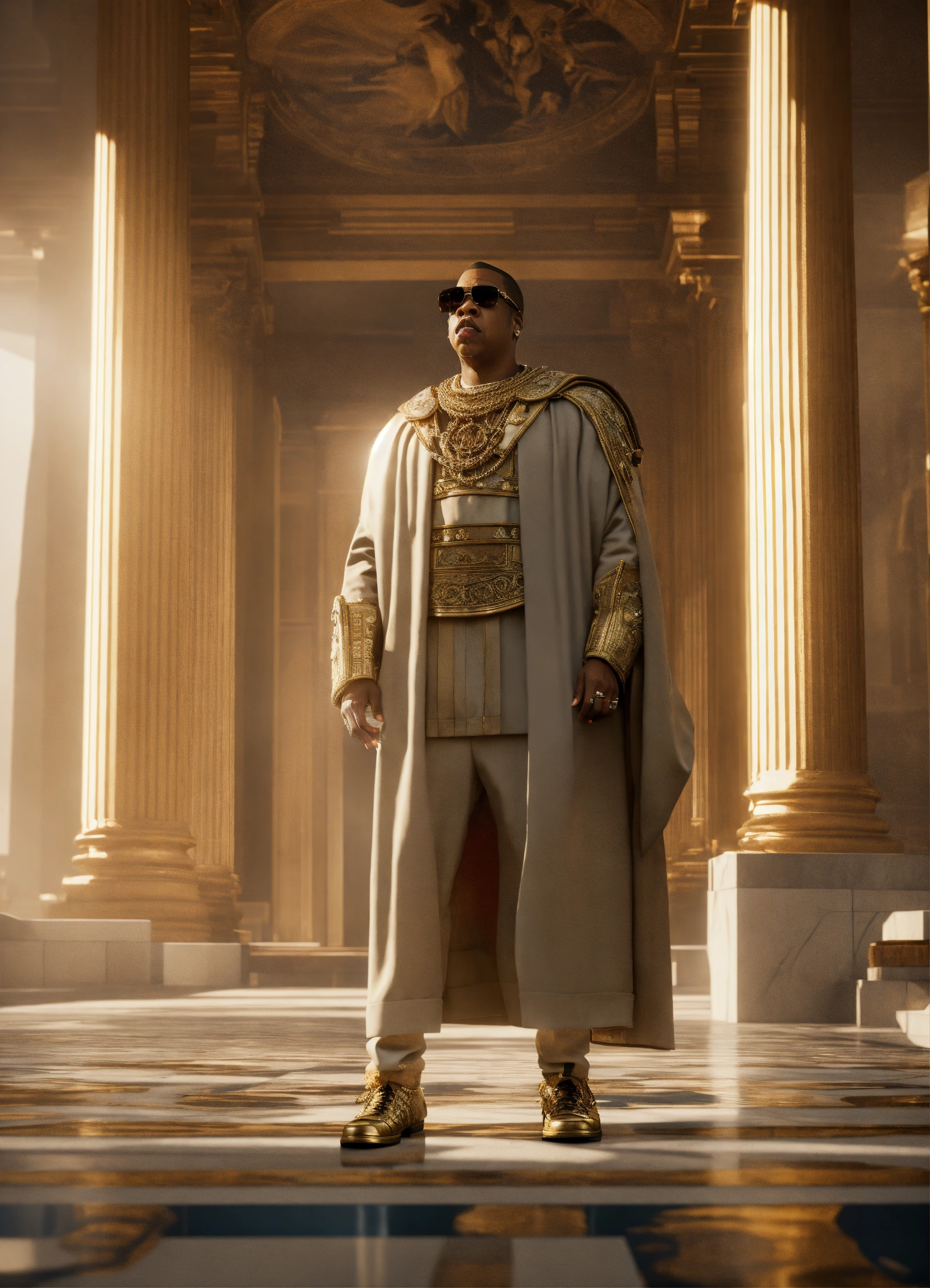 Jay z as roman senator cicero 8k unreal engine render, surrealism, surreal, hip hop, hardcore, technology background futuristic