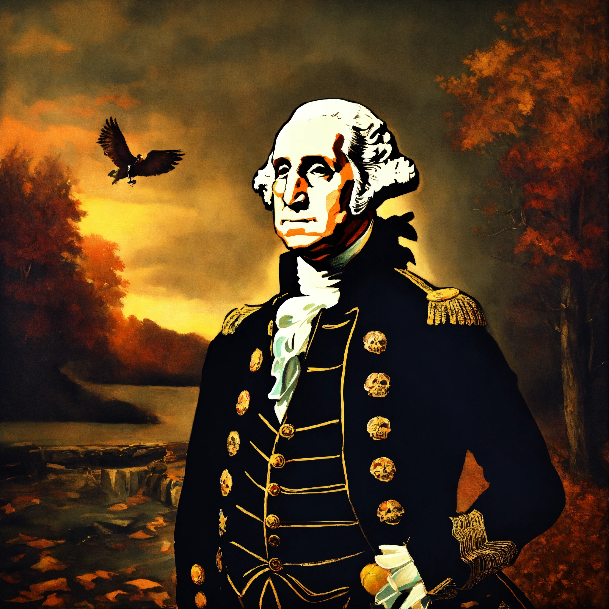 A painting of george washington dressed. halloween, spooky, scary, haunted, dark room, skeleton autumn, eerie