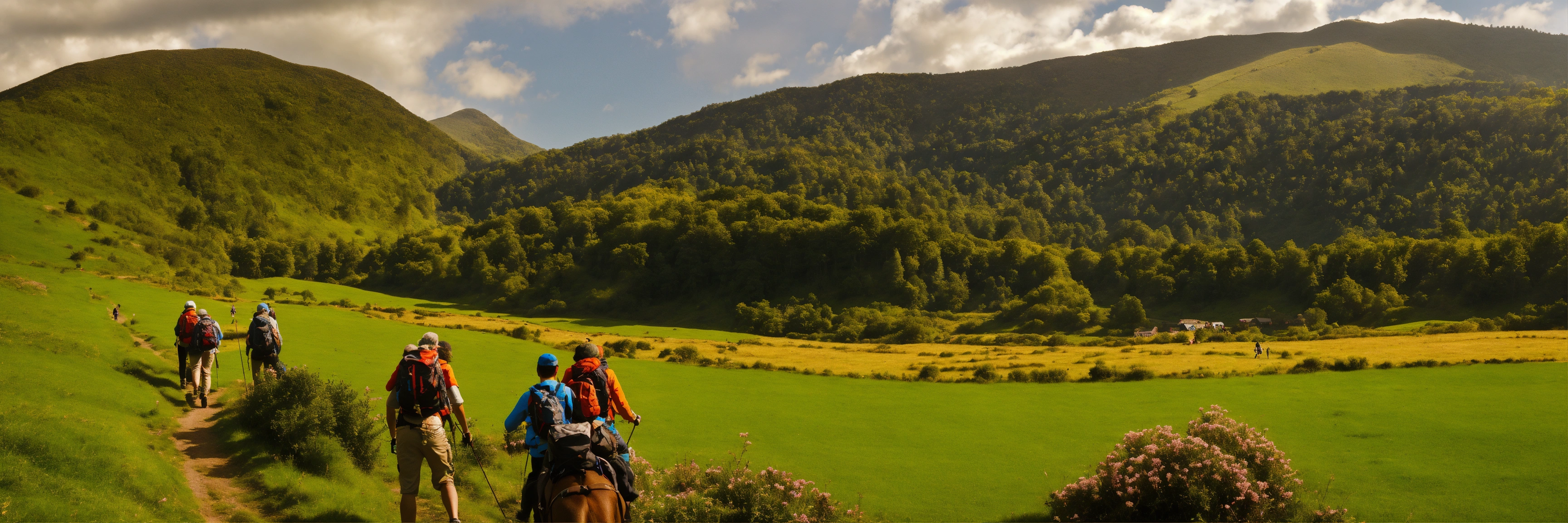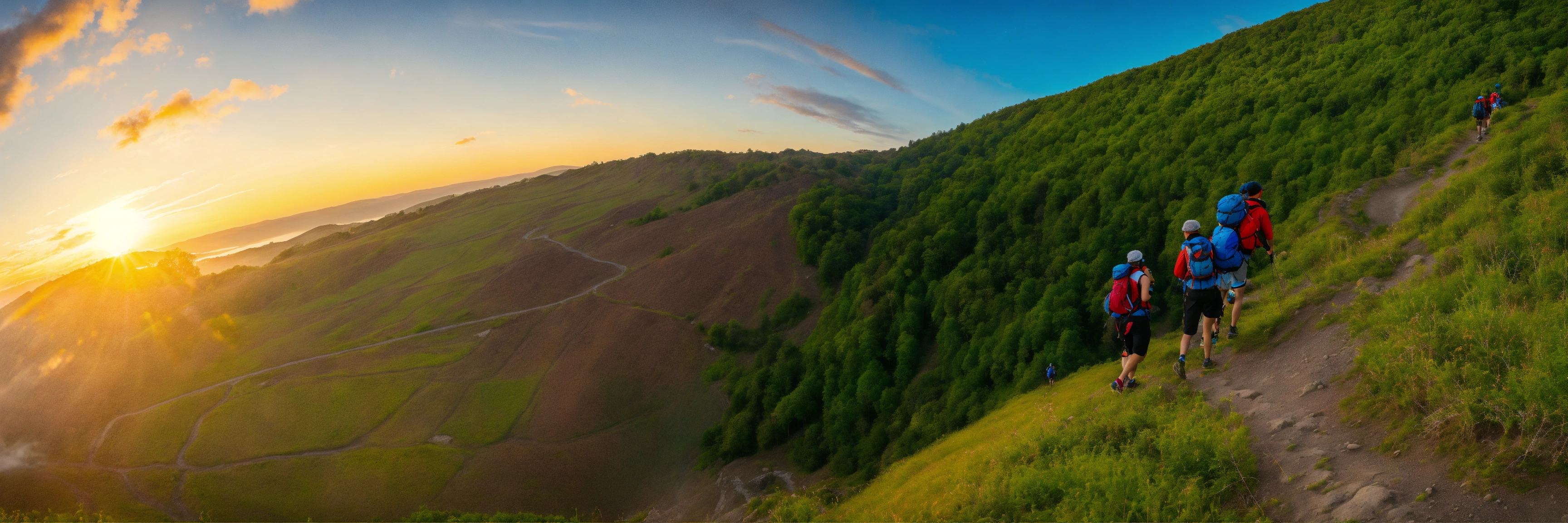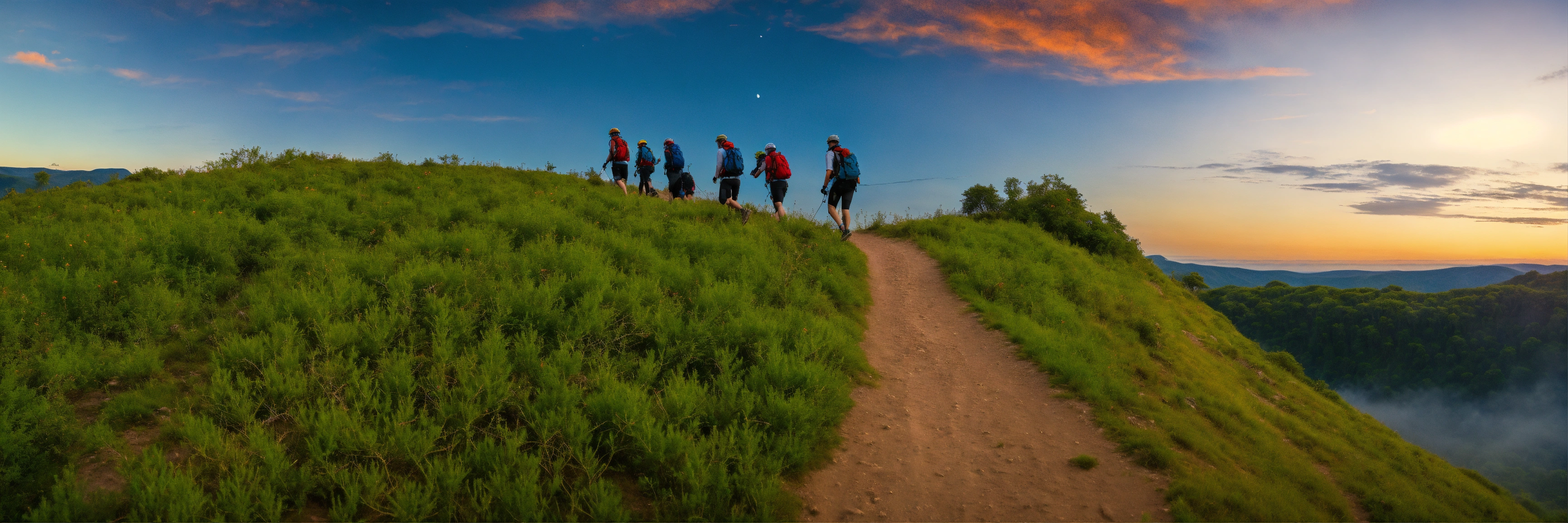A group of people navigating together in nature towards a milestonte that is at some height